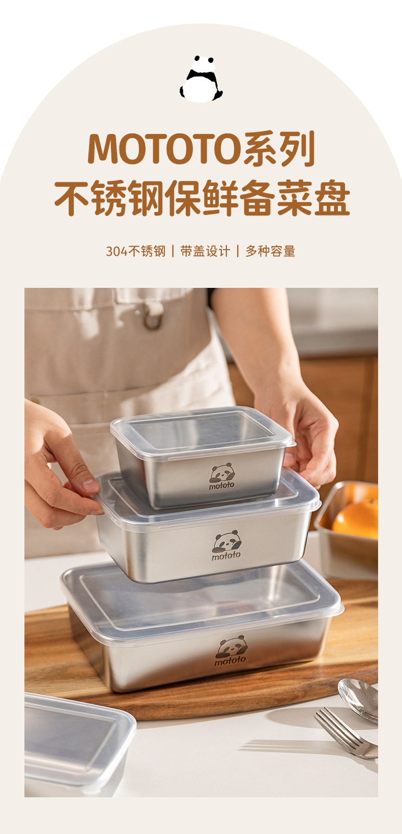 摩登主妇mototo备菜盘子家用不锈钢餐具火锅配菜盘料理大盆保鲜盒