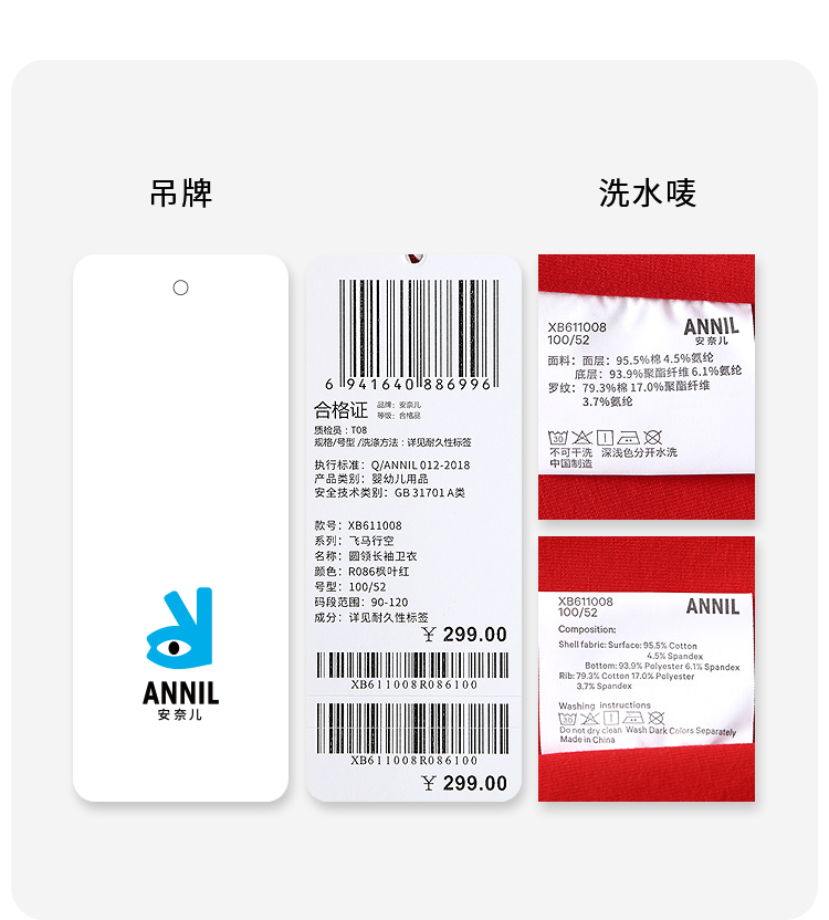 【实体店同款】男童圆领长袖卫衣春季新款安奈儿童装XB611008