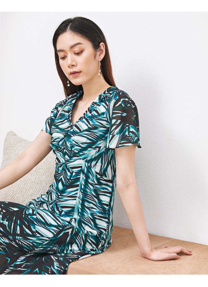 EITIE爱特爱女装夏季新品V领七分荷叶袖简约纯色衫上衣薄5713435