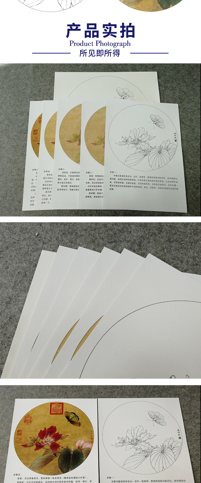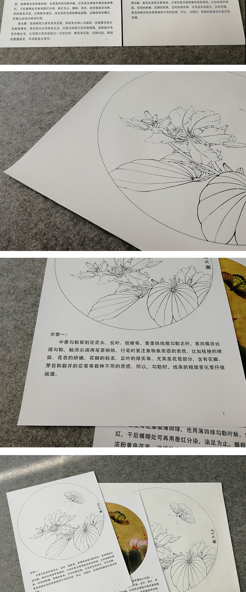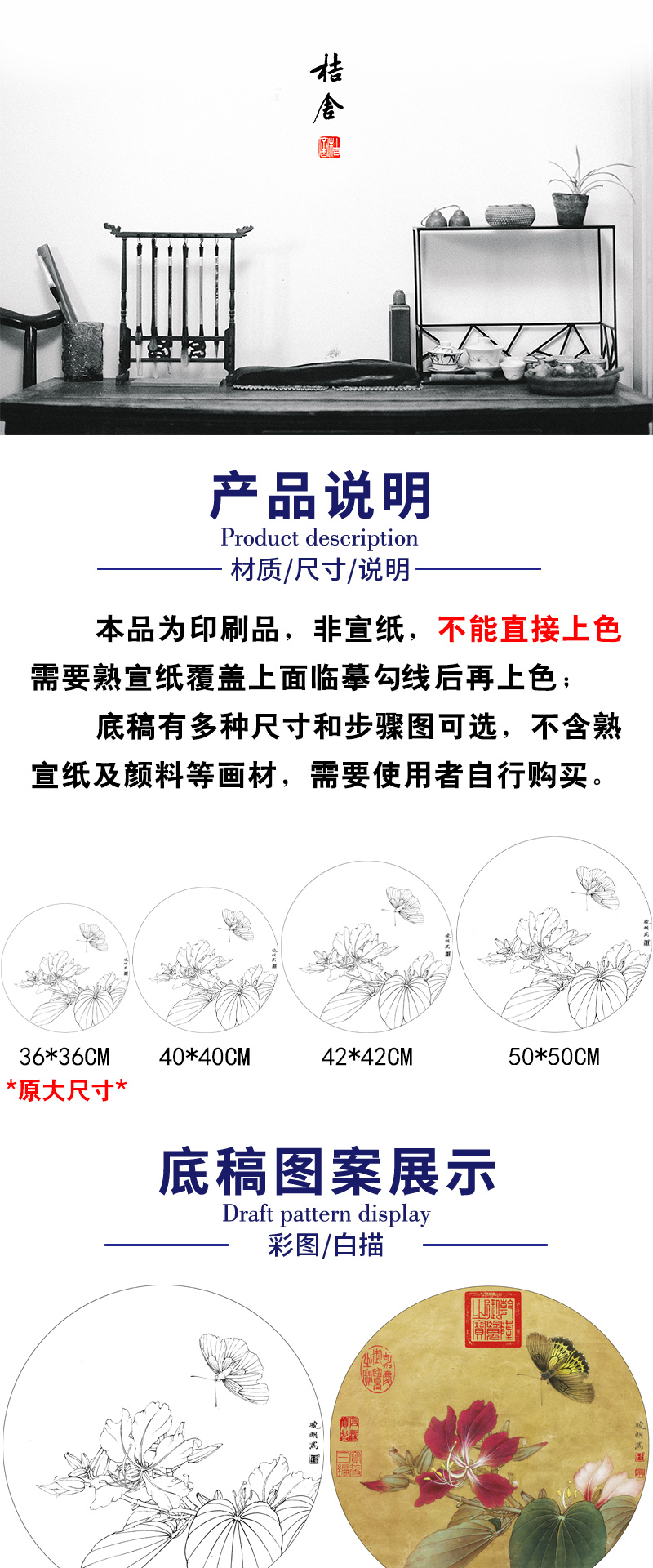 【有步骤、大彩图】李晓明工笔画白描稿圆形小品《紫荆裳凤蝶》蝴蝶初学者临摹勾线花鸟线稿KB07
