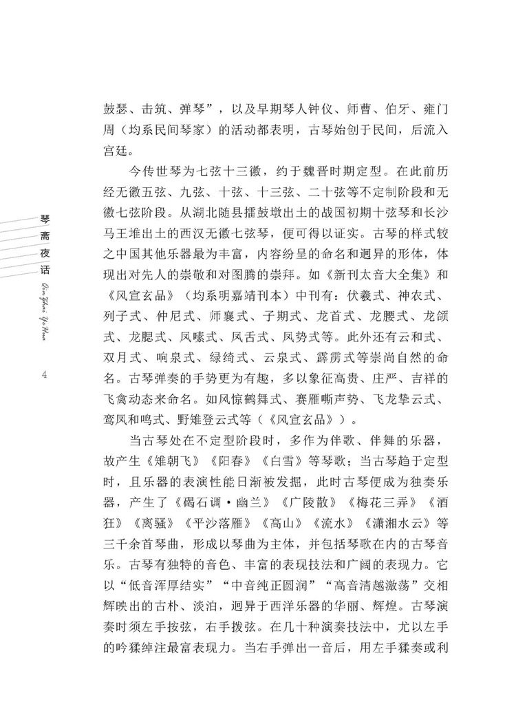 古琴是中国汉族传统拨弦乐器,距今已有三千多年的历史,具有丰富而深刻的文化内涵。在漫长的历史长河中,古琴的发展也历经坎坷。如今,爱琴、习琴之人,老中青少皆有,授琴呈专业化趋势。在此大好形势下,有必要对琴学做纵深的梳理与研究。该书稿是作者近年来所撰写的、大多未正式公开发表之文整理而成的。其构成主要包含以下内容:从文化、儒道思想角度考察之《中国古琴文化》;从风格流派角度考察之《古琴流派考辨》;从琴曲音乐本体考察之《传统琴曲之体裁》;对白居易《废琴》诗之误读、《五知斋琴谱》是否广陵派、淮阳派、九嶷派之辨识;以及对现代琴人、琴著、琴事、演奏等从学术角度进行评。用音乐学思维梳理研究琴学,并对琴坛中之误读、讹传给予历史的、严谨的评说。从全面到局部,从理论到实践,力求从学术中深入浅出。