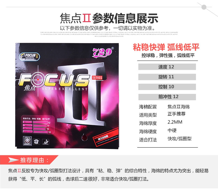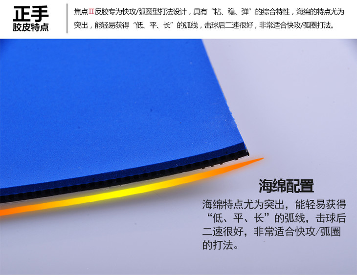 焦点Ⅱ:速度快,弹性足,适合正手快弧打法。