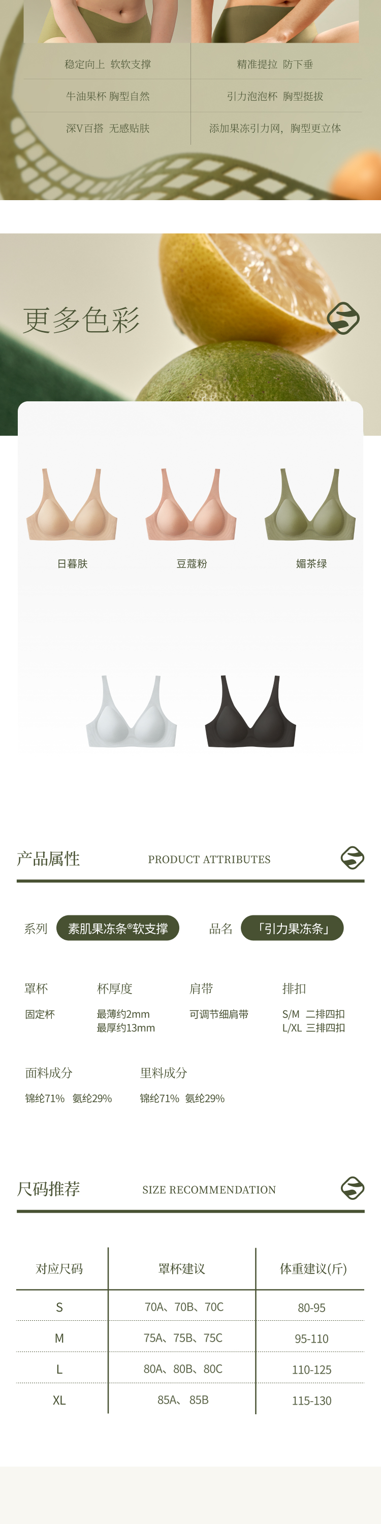 退换货规则:1.7天无理由退换货规则:品牌产品为贴身私密性衣物,务必保证所退产品吊牌水洗标齐全,无人为因素导致的破损、污渍、异味等影响二次销售的状况,否则,品牌有权不予退货退款,退货请将赠品一同寄回。内裤不支持7天无理由退换。换货差价将遵循多退少补的原则。