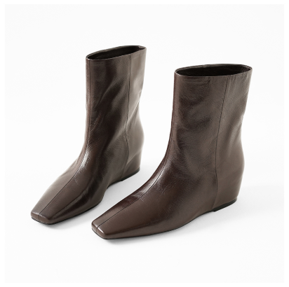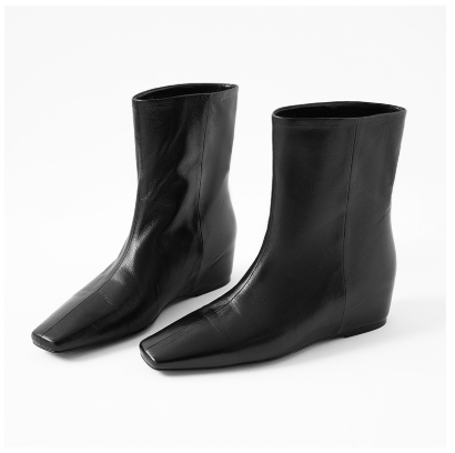 【慕尼黑夜】小羊皮轻松时髦法式方头真皮骑士中筒靴25349021
