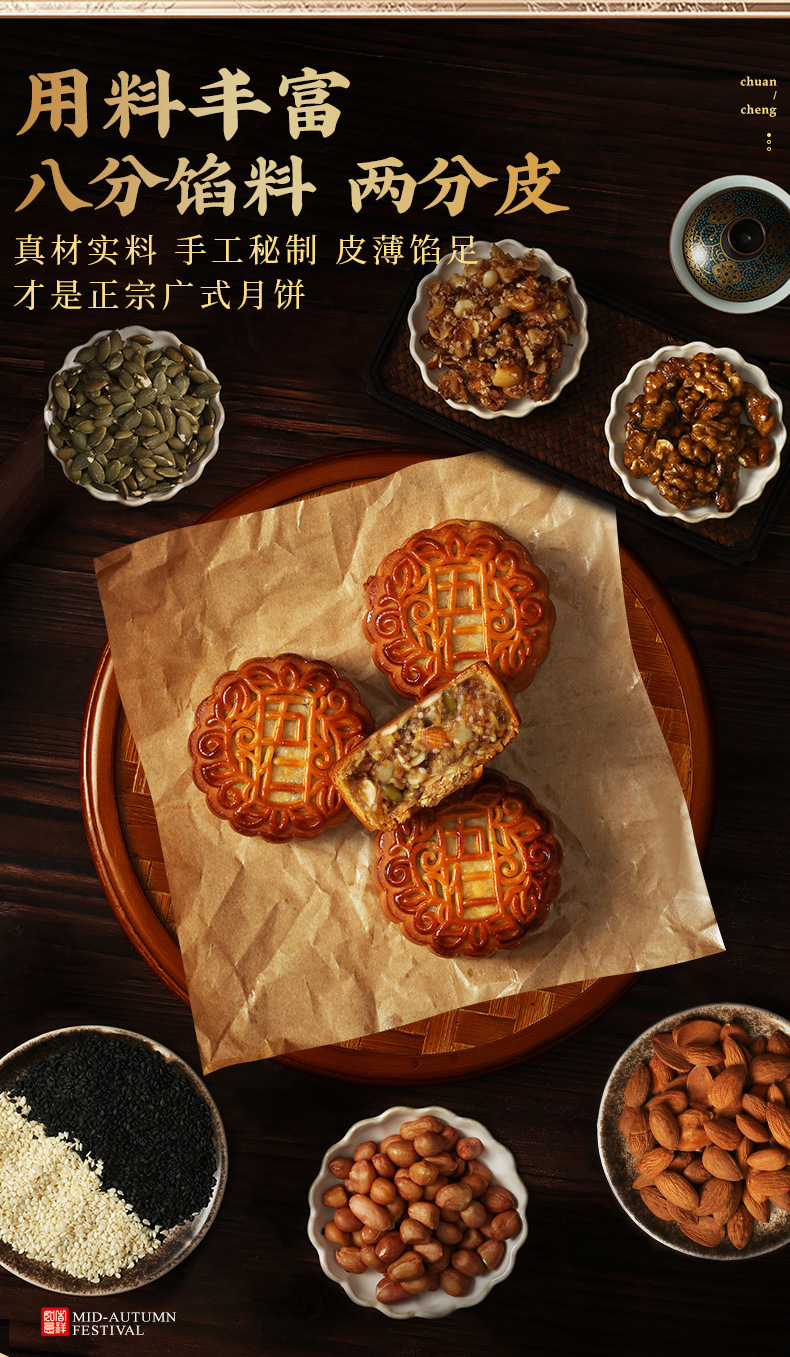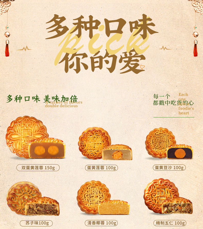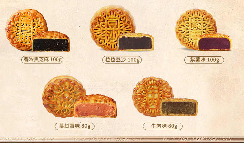 5只装【广式中秋节月饼】莲蓉五仁蛋黄豆沙水果味 散装多种口味桃山皮广式月饼