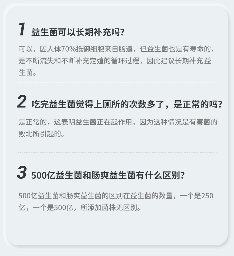 当然,益生菌还能改善肠道黏膜,帮助减轻肠道的炎症和刺激,还能产生一些有益的代谢产物去维持肠道的健康。