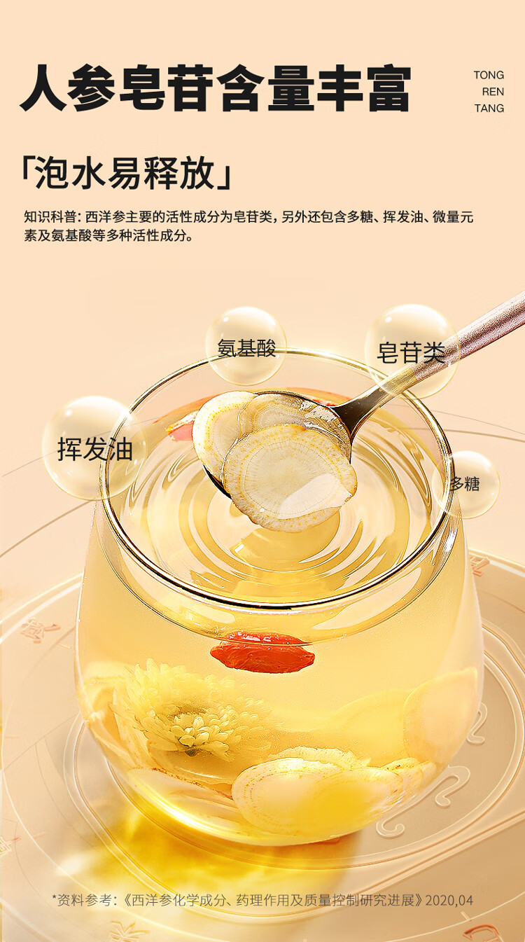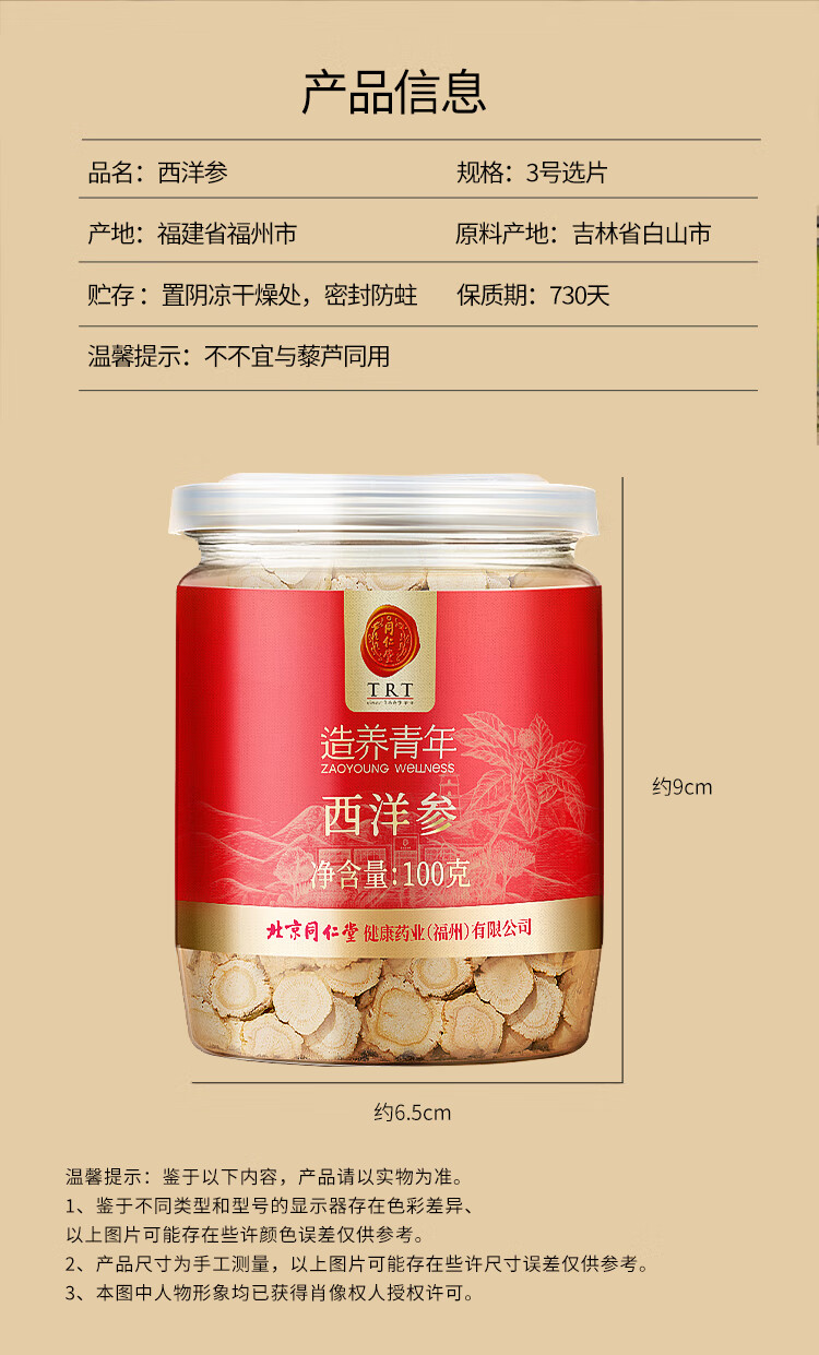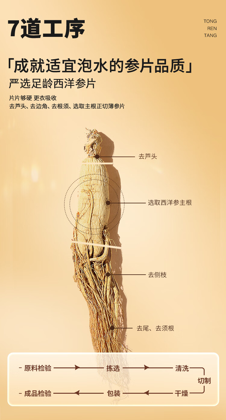 【正宗同仁堂品牌】北京同仁堂 国产西洋参 3号选片 100克 长白山西洋参片 花旗参片SY