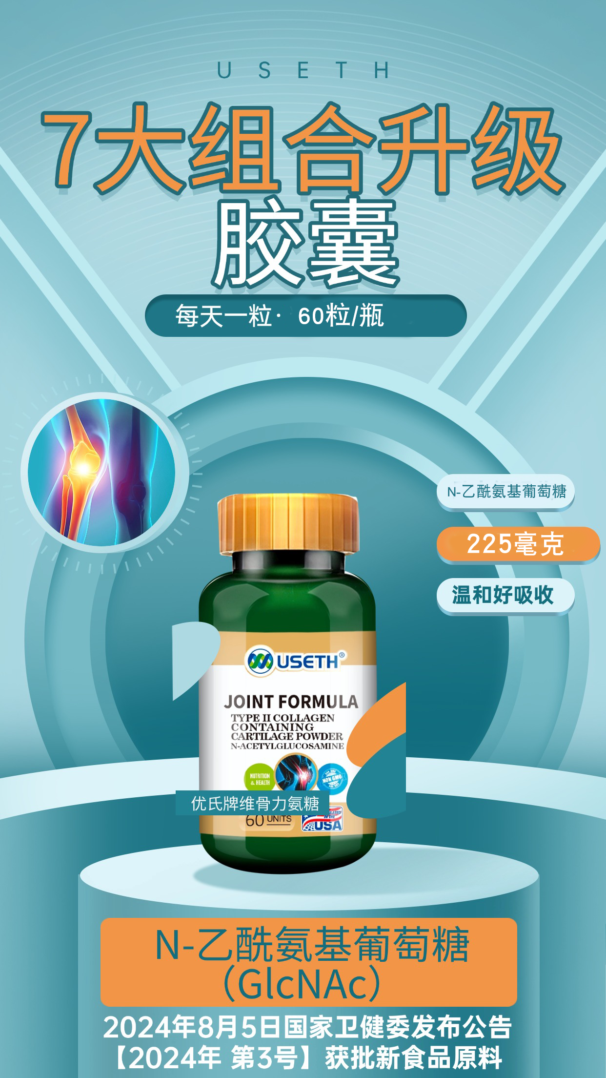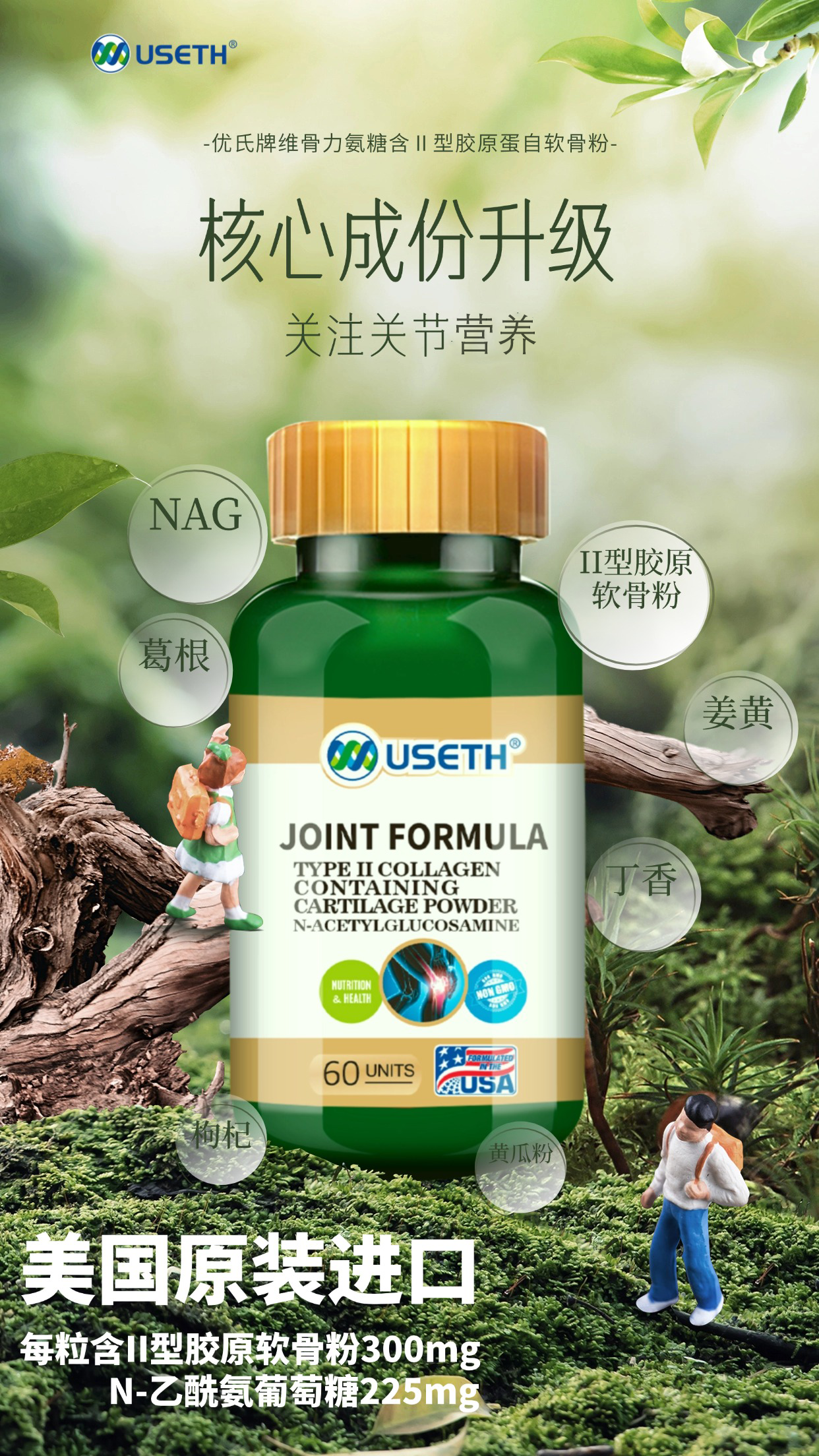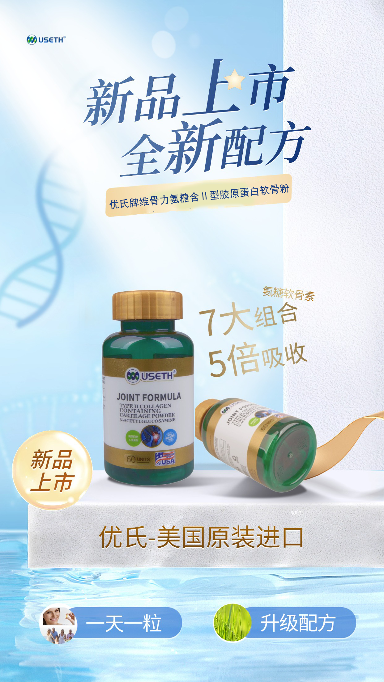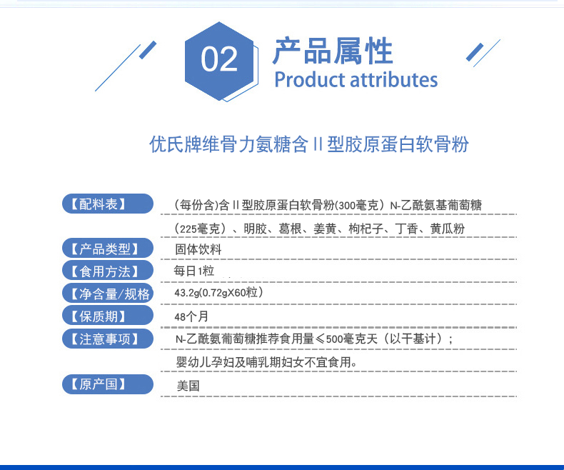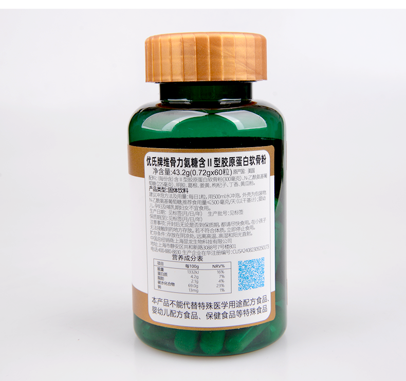 【粉丝特惠】优氏维骨力氨糖含II型胶原蛋白软骨素粉 5倍吸收 关注关节营养 美国原装进口