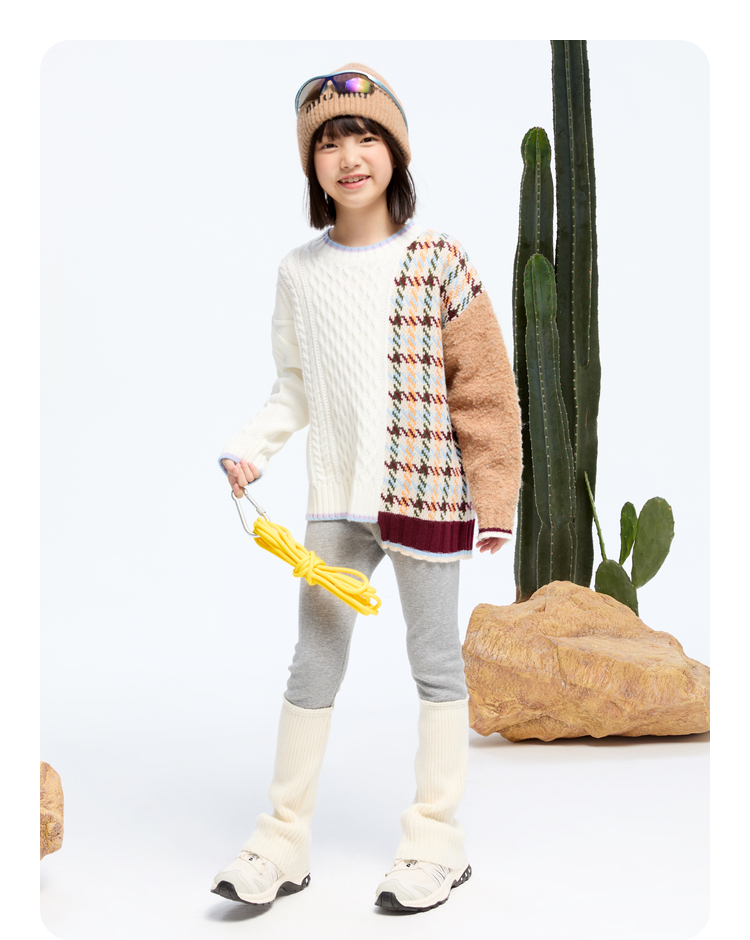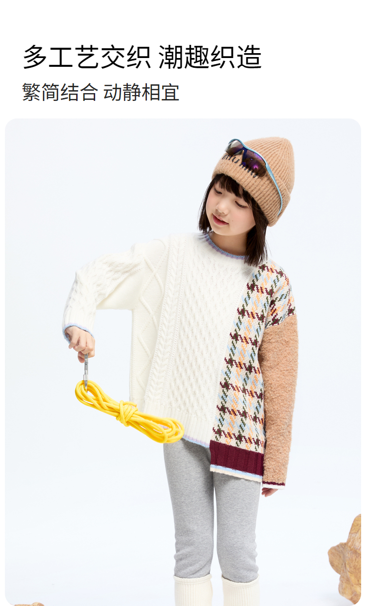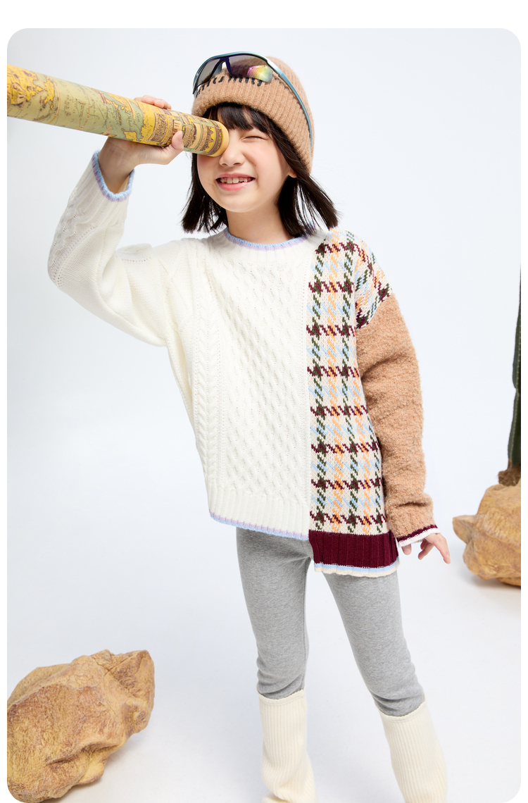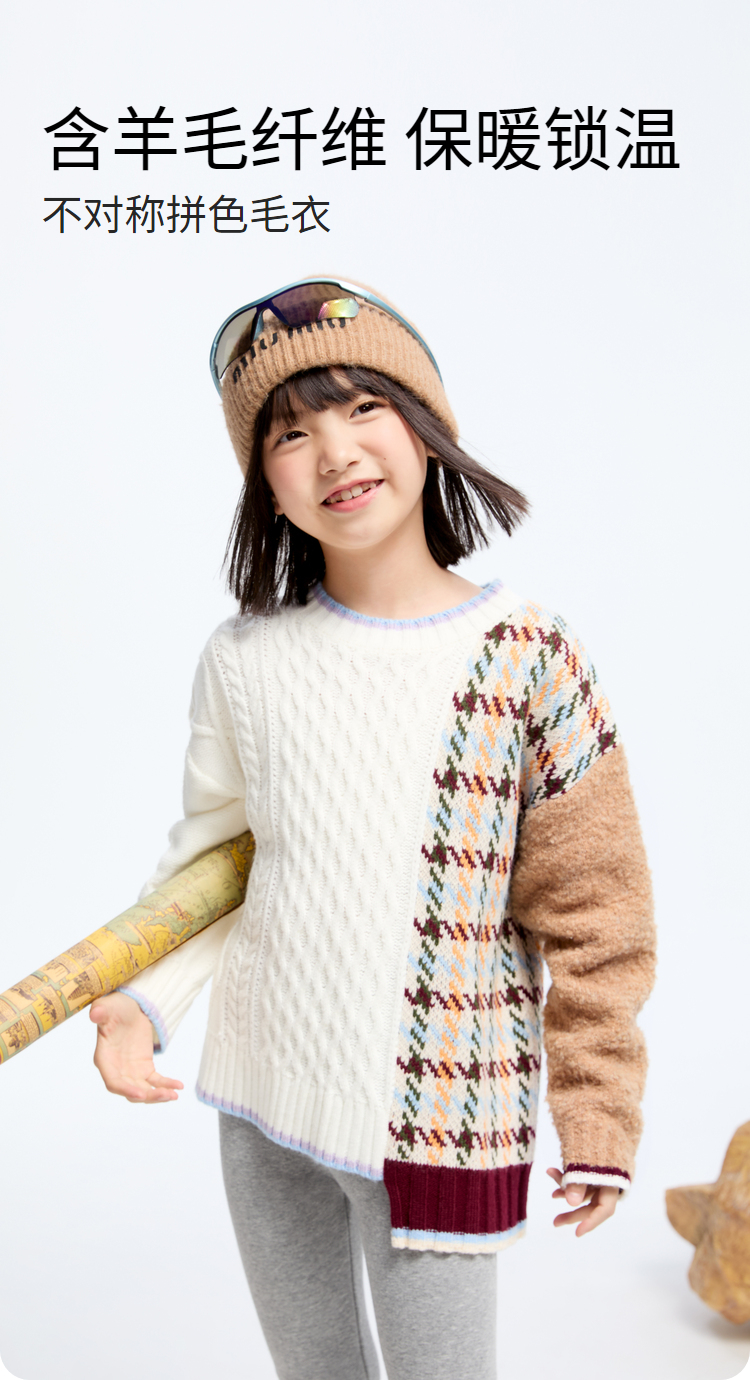 女童不对称拼色毛衣冬季新款安奈儿童装实体店同款AG444617