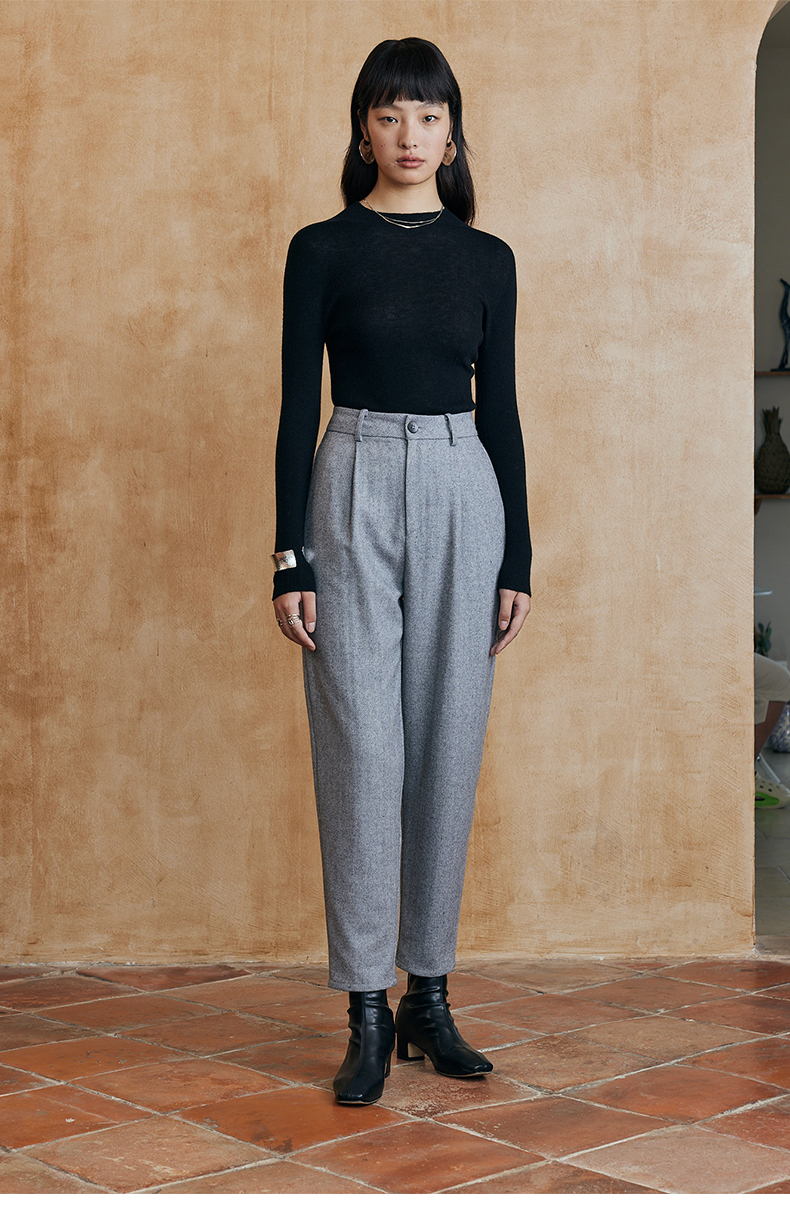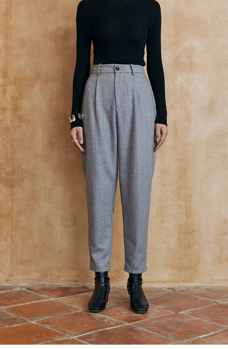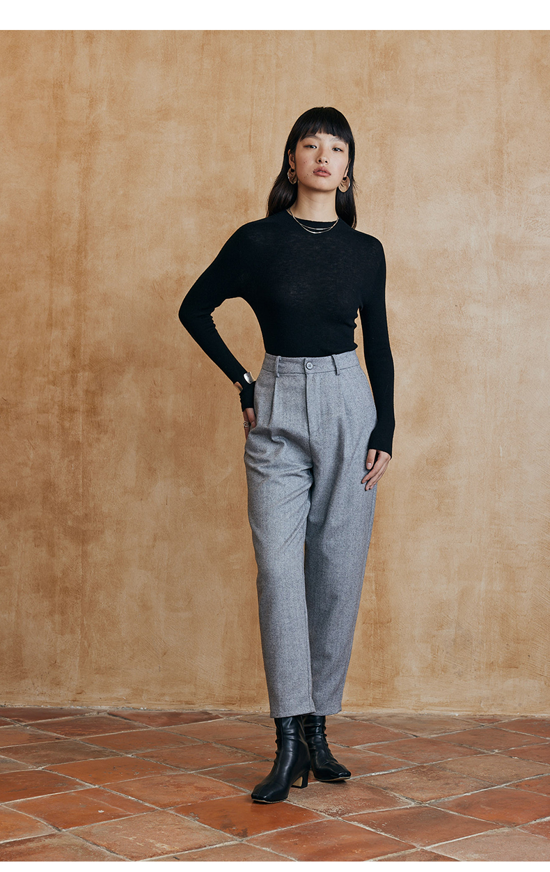 IN AND ON羊毛人字纹显瘦锥形裤女时尚保暖百搭通勤休闲长裤22749