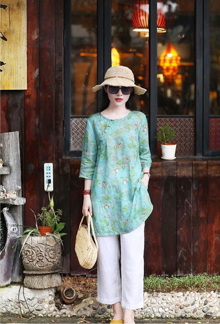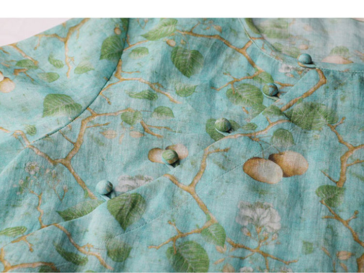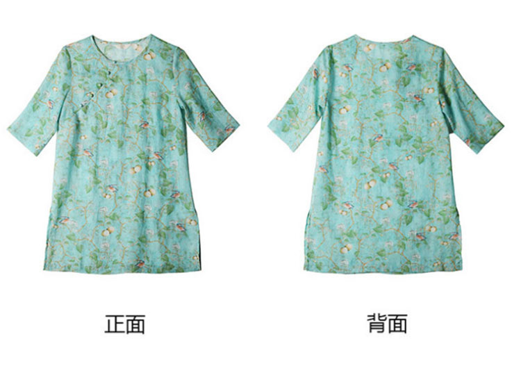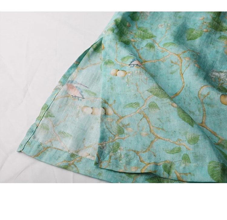 丁摩 新款旅行文艺苎麻印花五分袖套装19-128-132DB399240531