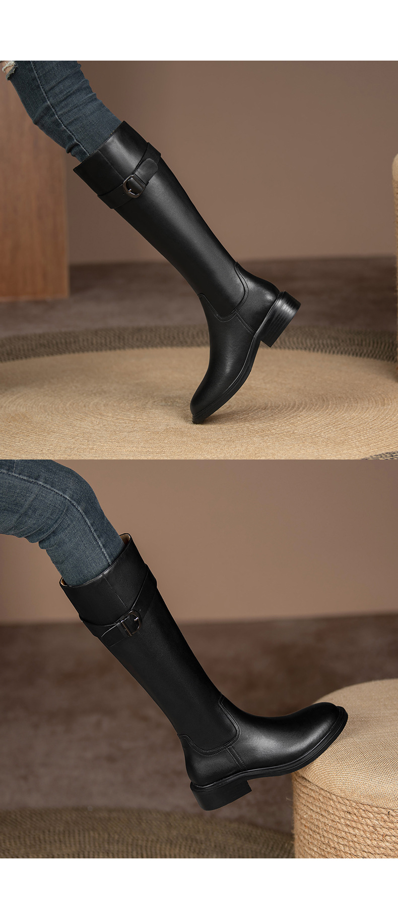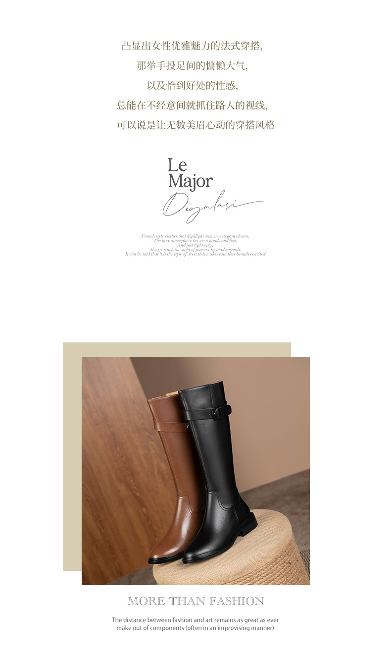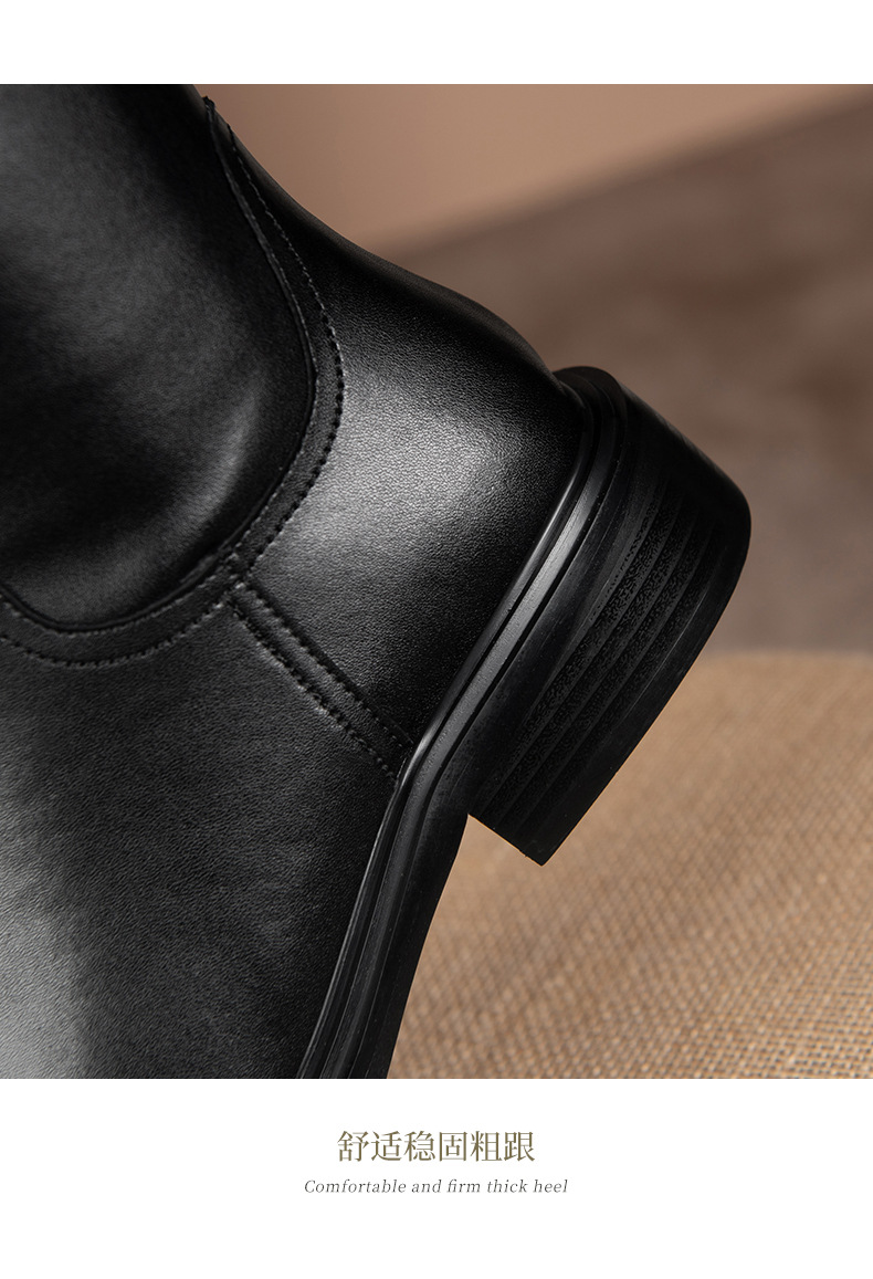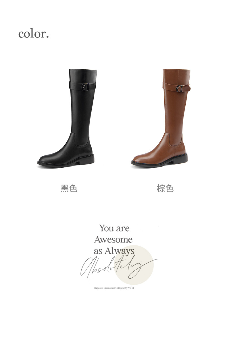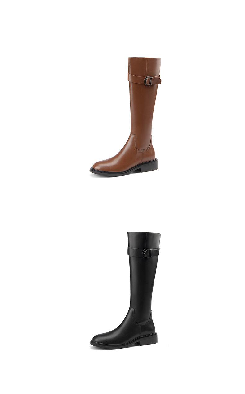 英伦风高筒骑士靴,显瘦皮带扣粗跟长靴HB-121-1