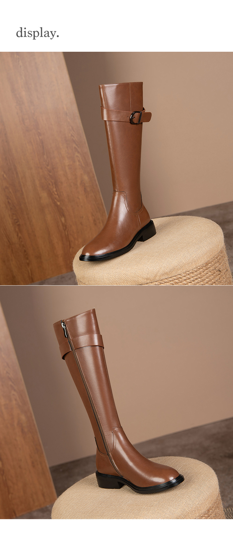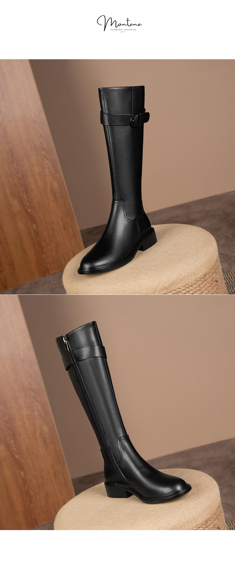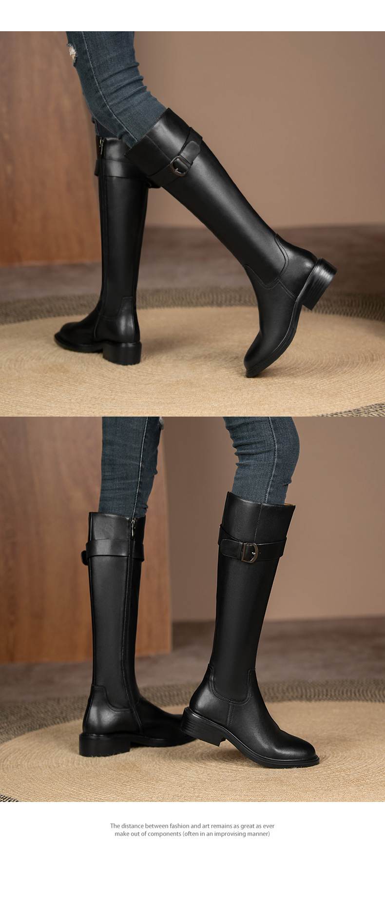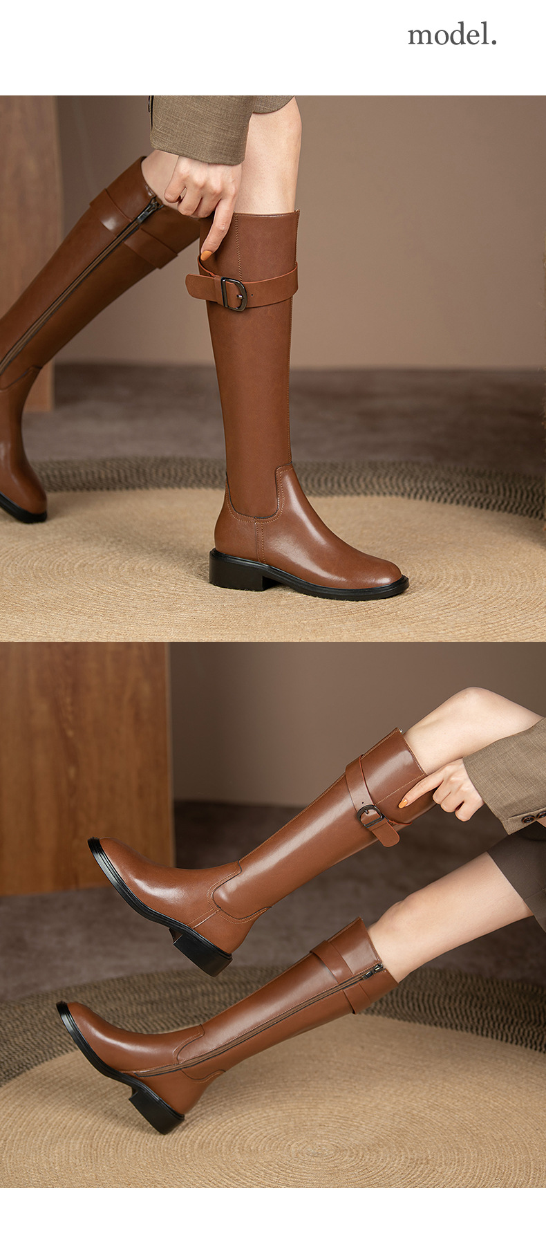 英伦风高筒骑士靴,显瘦皮带扣粗跟长靴HB-121-1