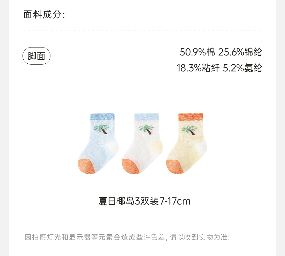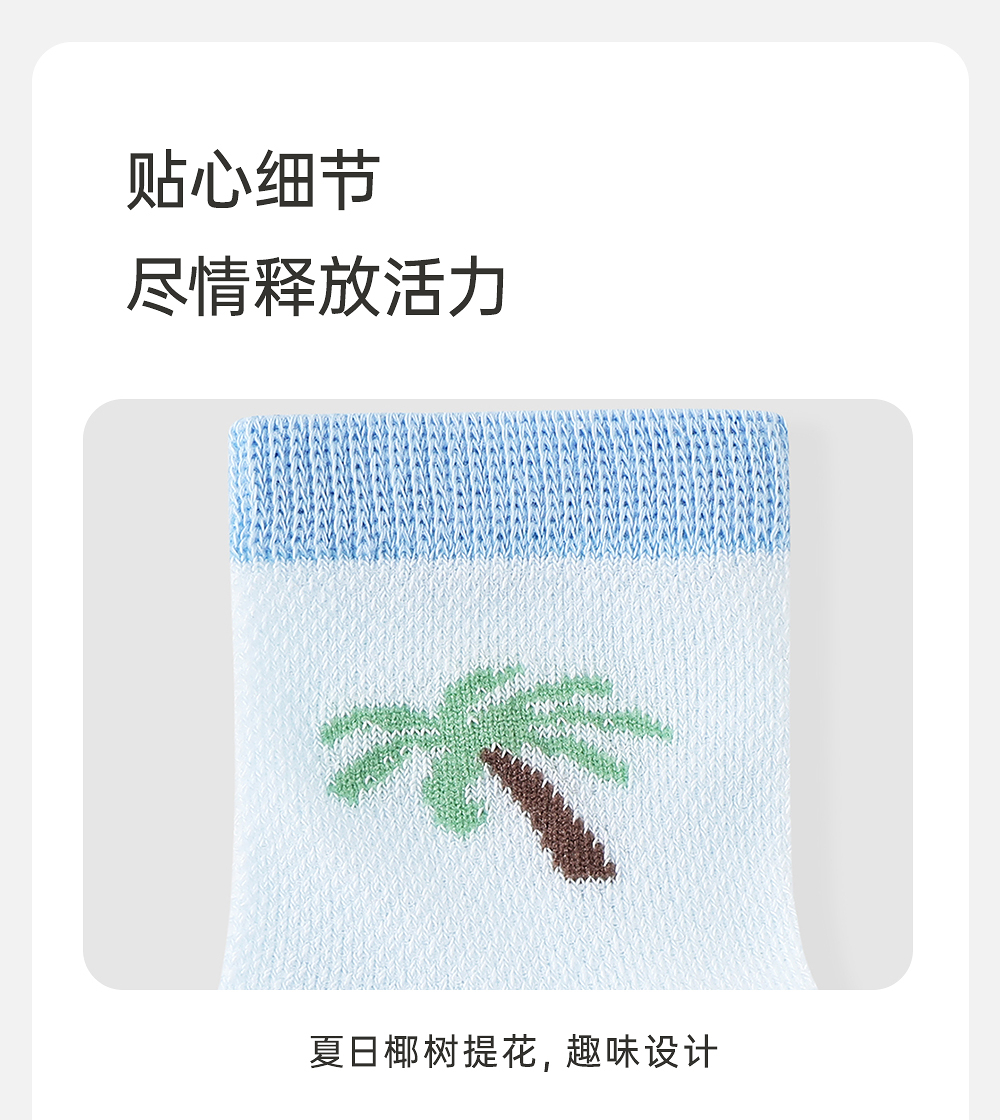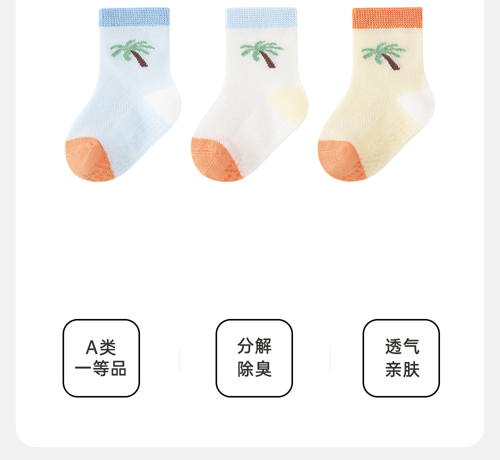 【商场同款】英氏儿童袜子夏季防臭透气婴儿薄袜男宝短袜三双装