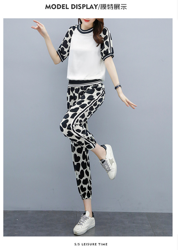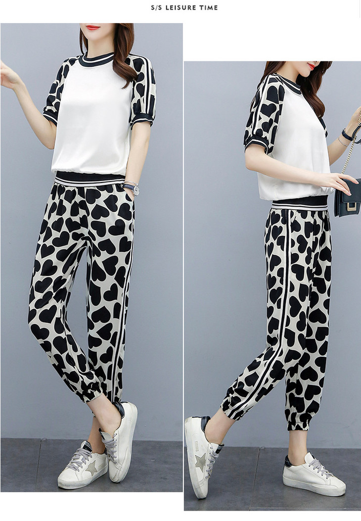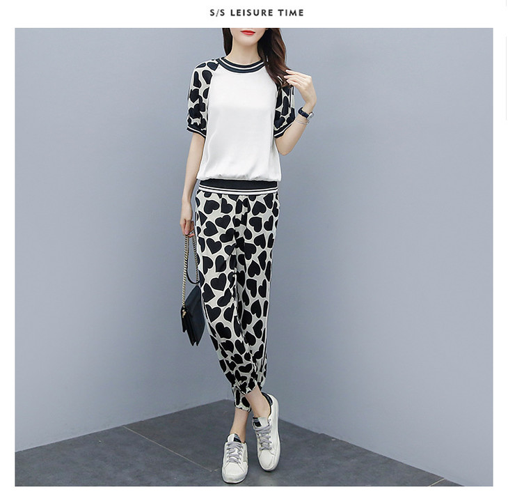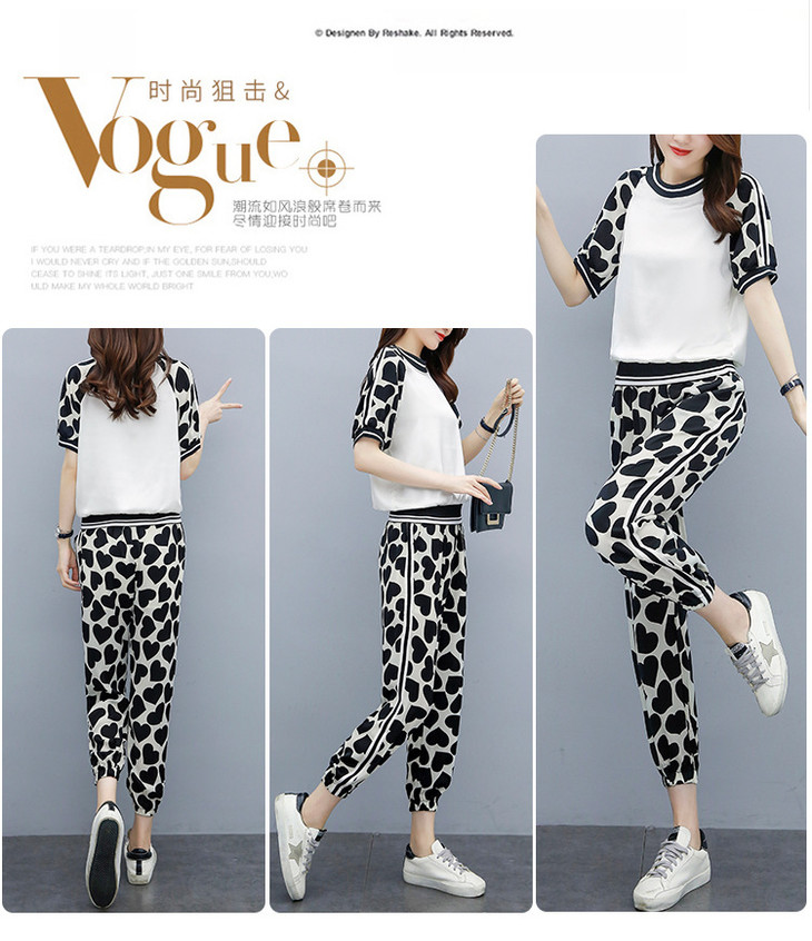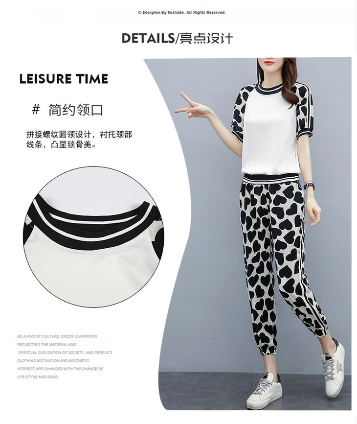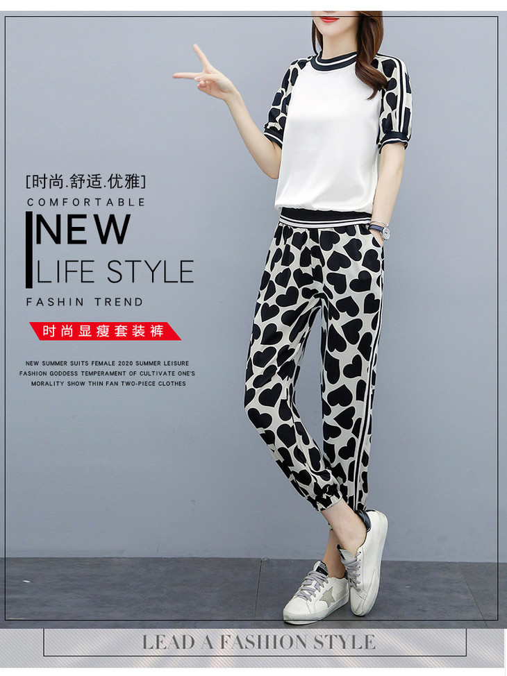 AHM-aqy120新款大码格子衬衫九分裤小脚裤两件套