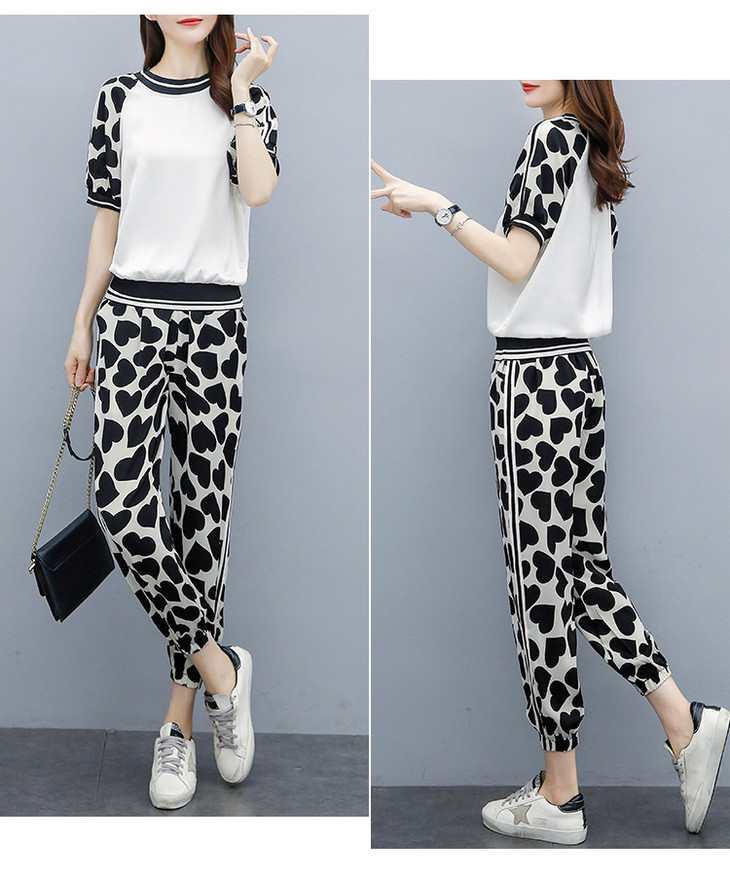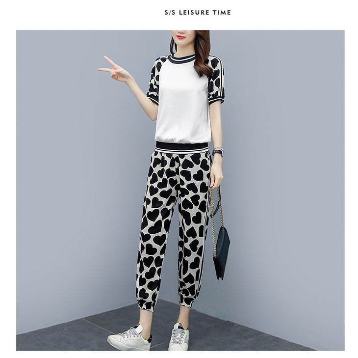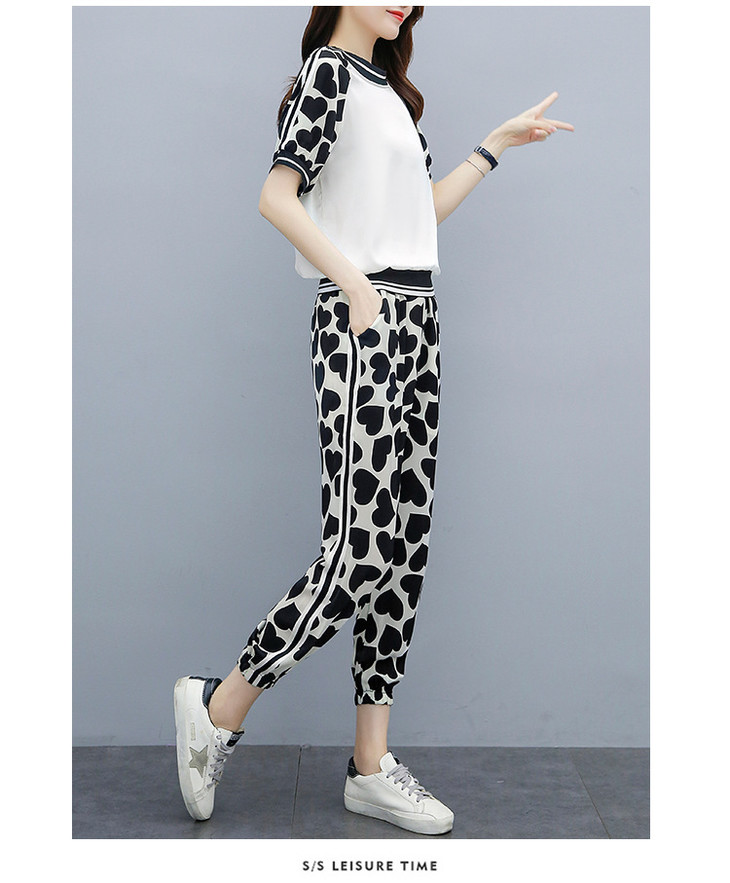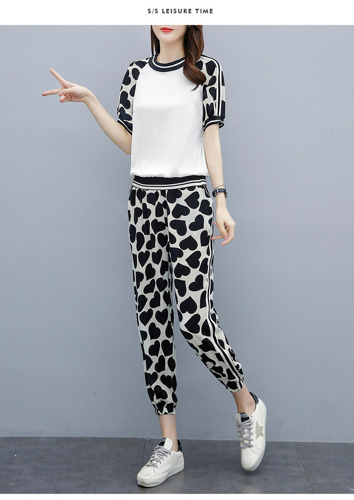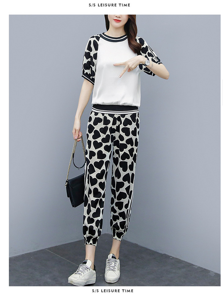 AHM-aqy120新款大码格子衬衫九分裤小脚裤两件套