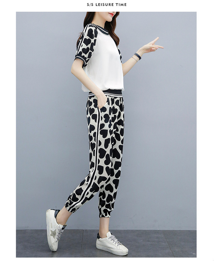 PDD-2020年新款时尚减龄修身显瘦短袖黑白色两件套YY