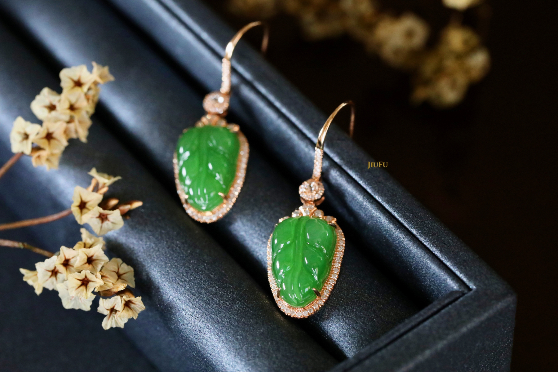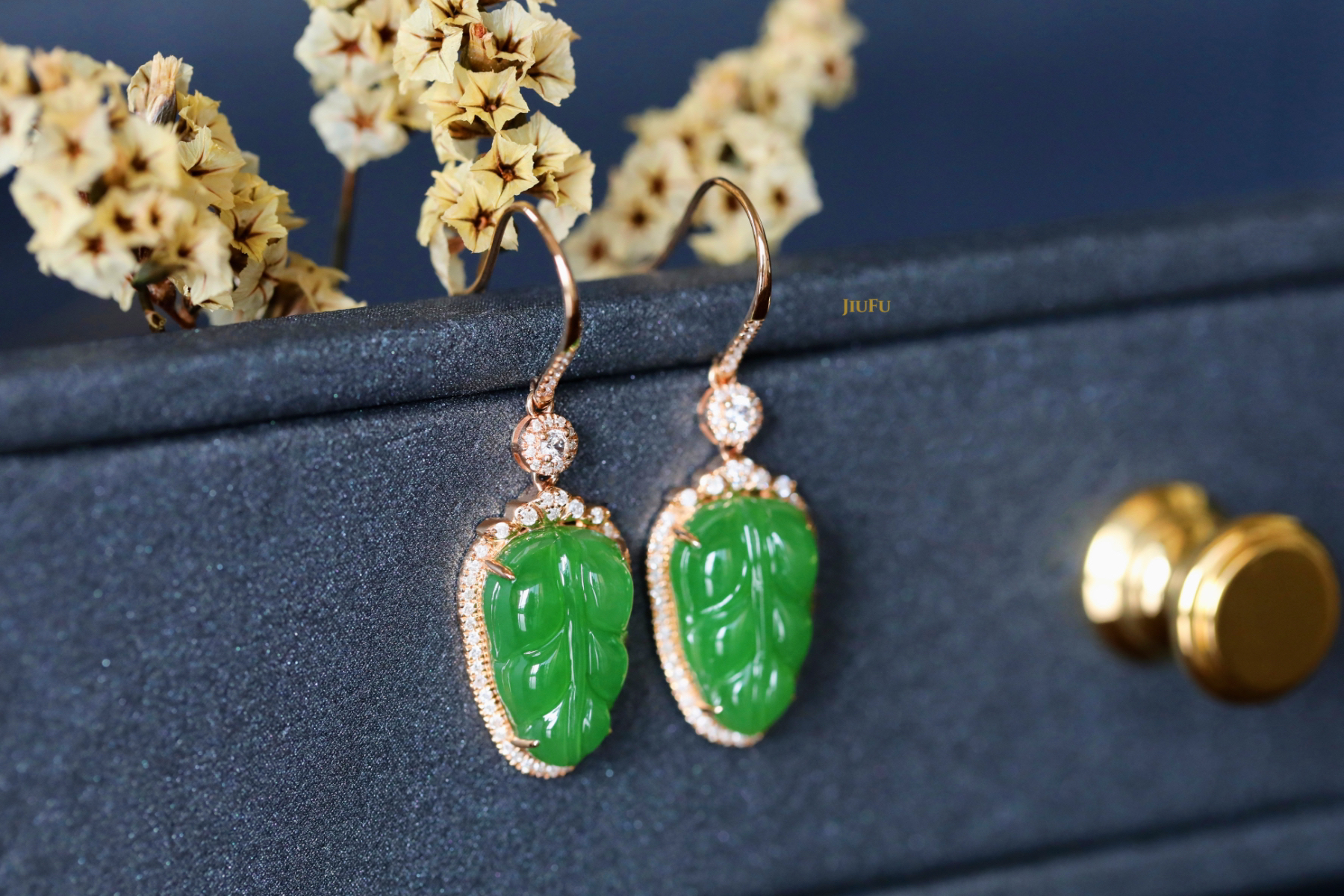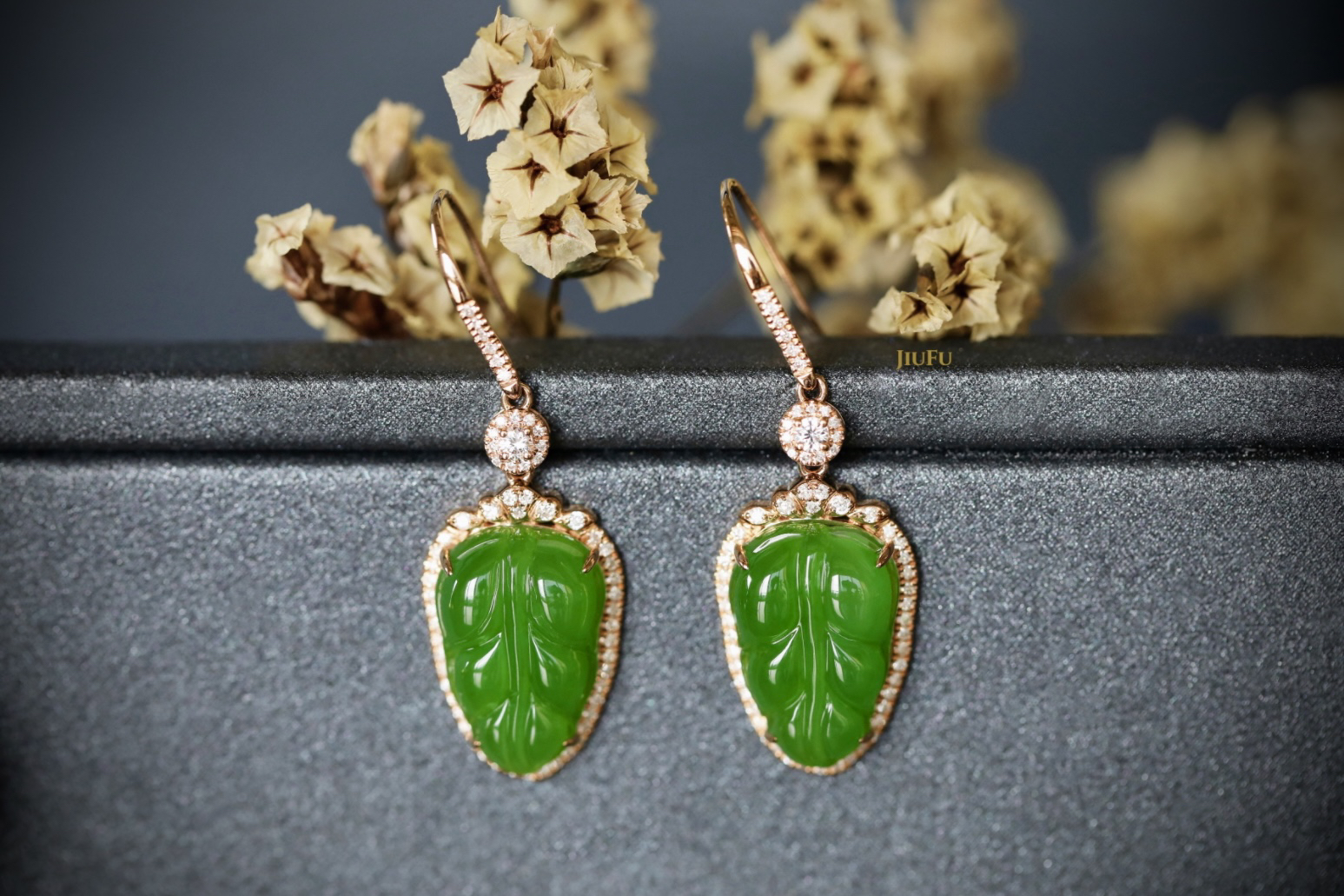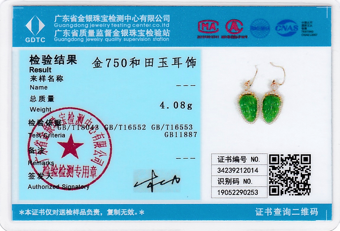 18K玫瑰金和田玉(碧玉)耳饰