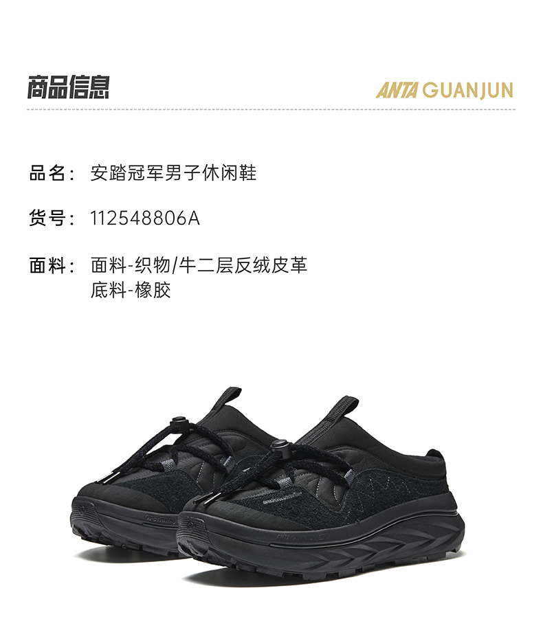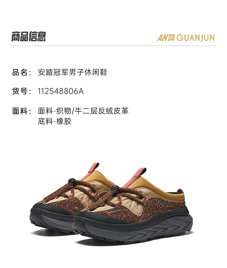安踏冠军开山1Camp 露营鞋男女复古户外厚底半拖休闲鞋112548806A