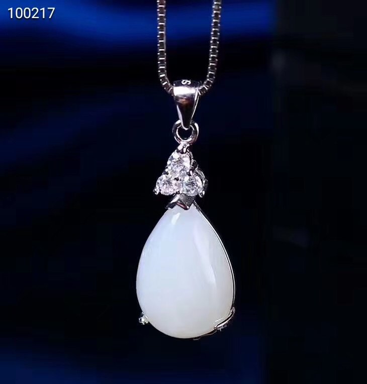 s925银镶和田玉白玉水滴吊坠,料子干净细腻,白度一级,带银链子。