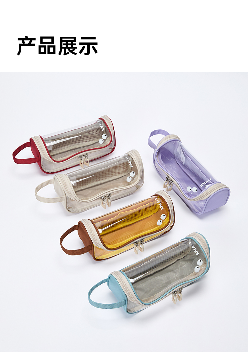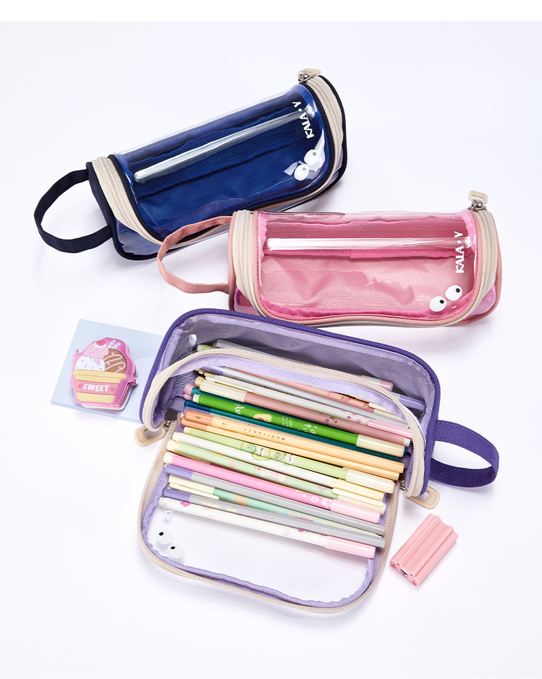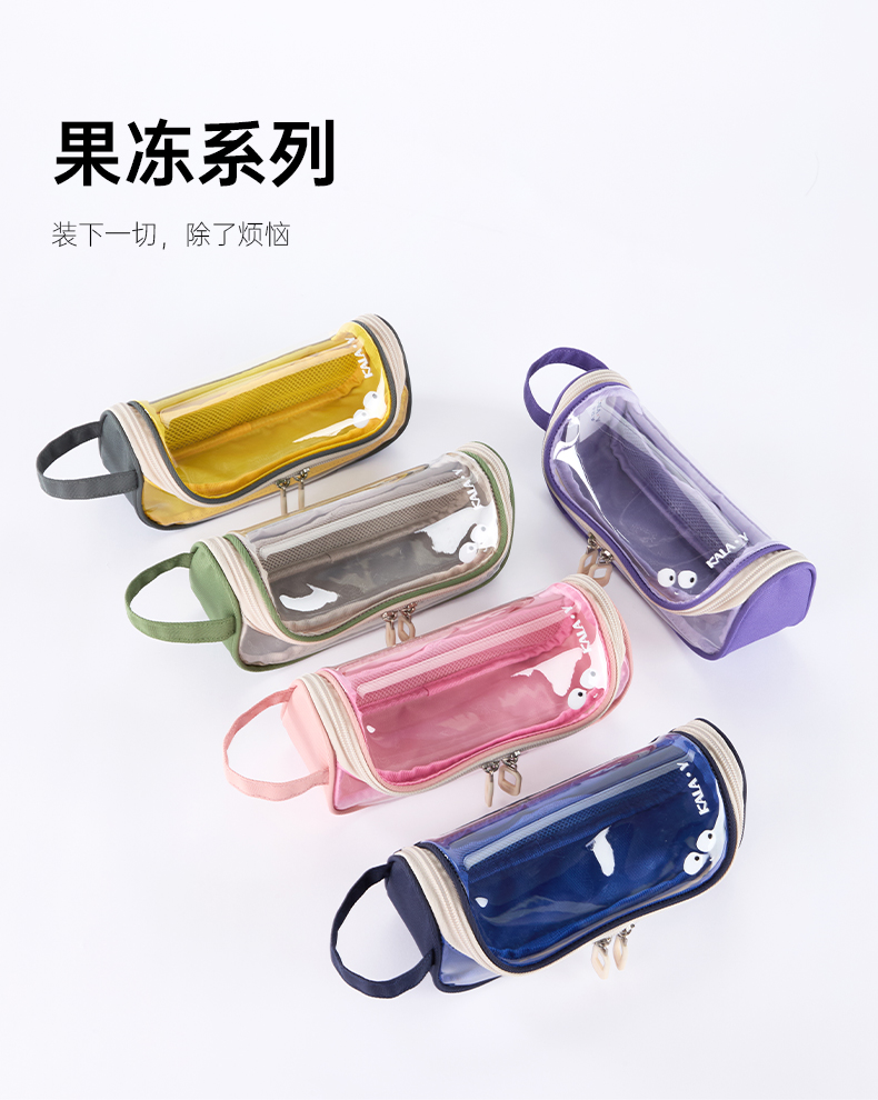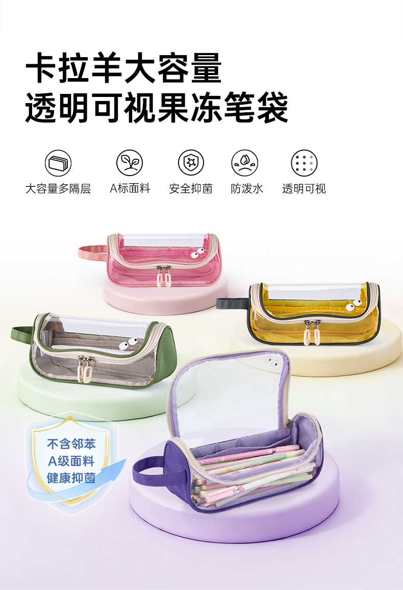 卡拉羊简约透明超大容量学生笔袋学霸必备A类抑菌多层笔袋果冻系列CX0071