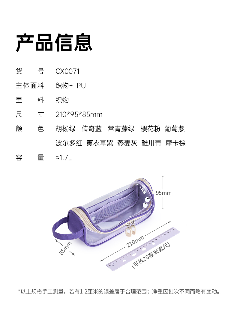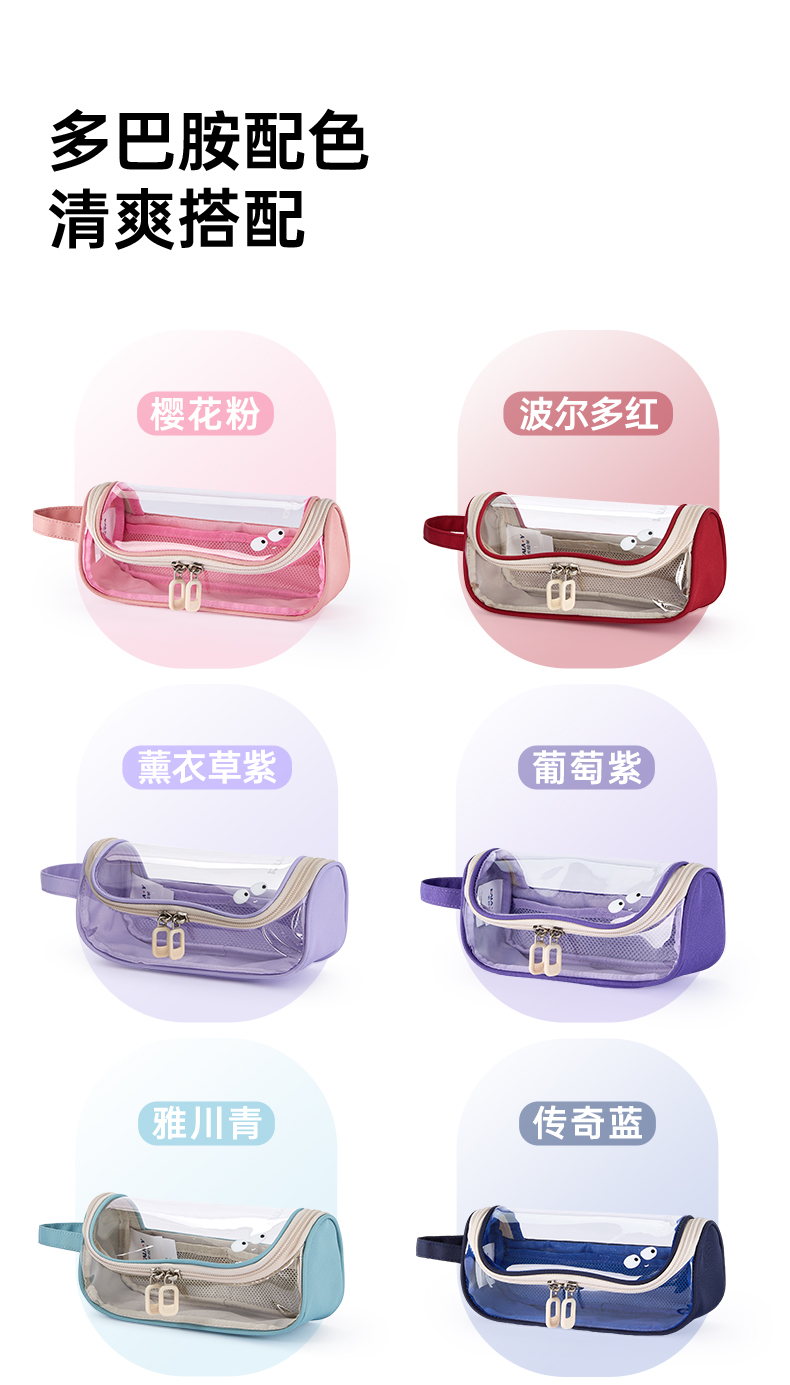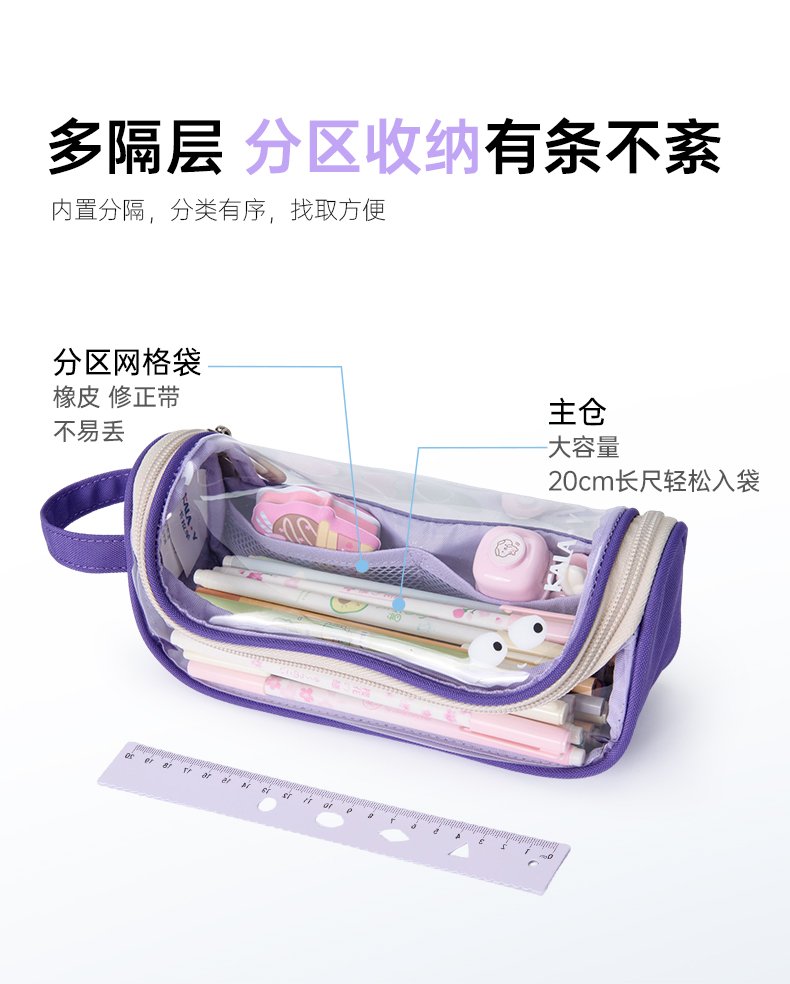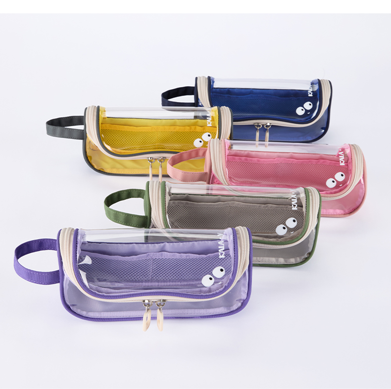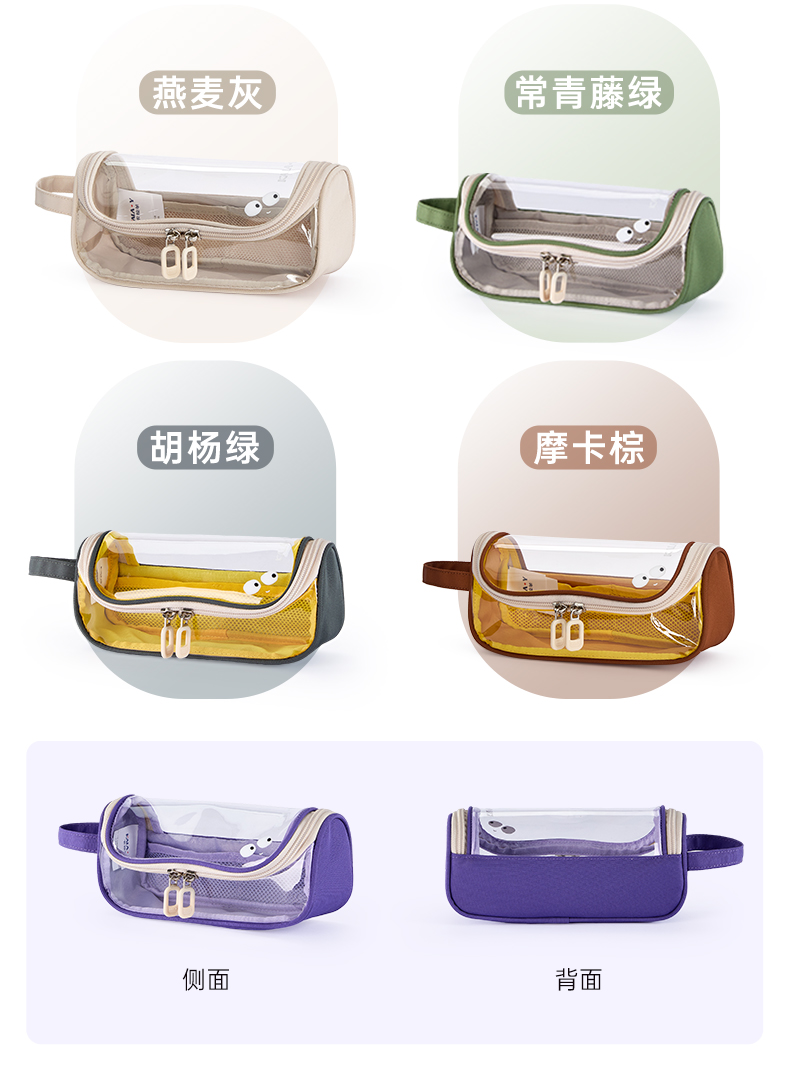 卡拉羊简约透明超大容量学生笔袋学霸必备A类抑菌多层笔袋果冻系列CX0071