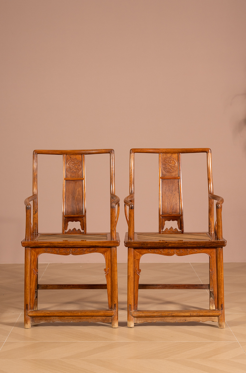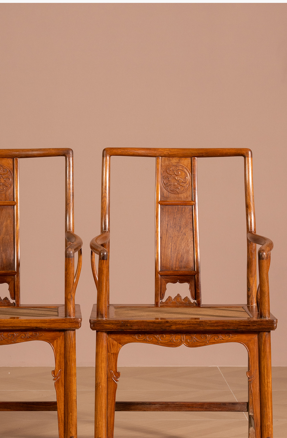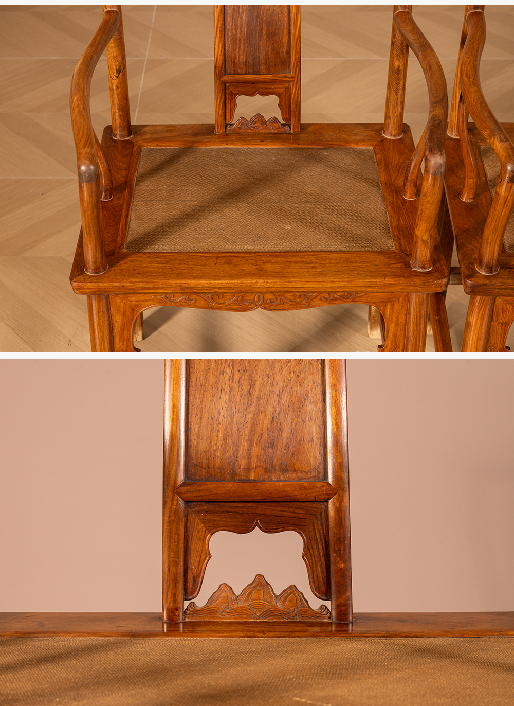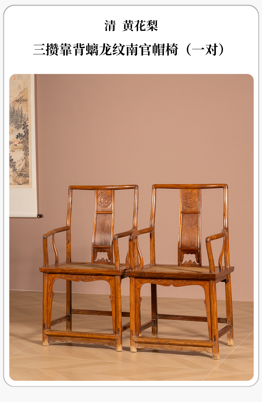 清 黄花梨三攒靠背螭龙纹南官帽椅(一对)