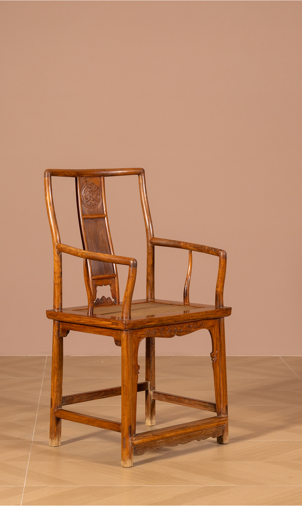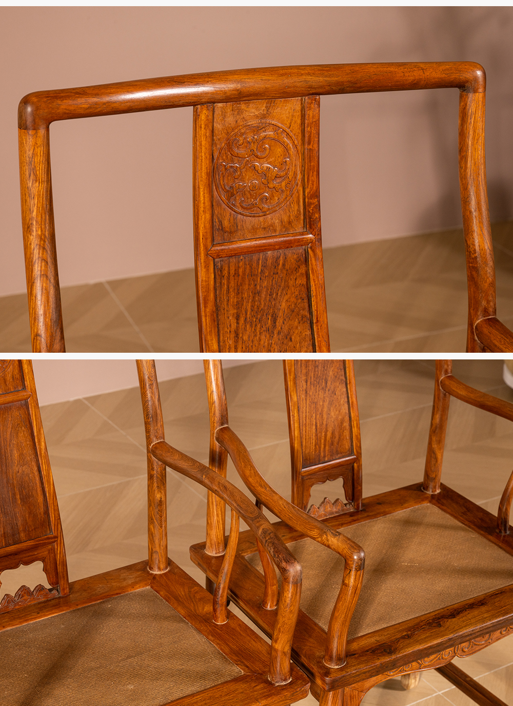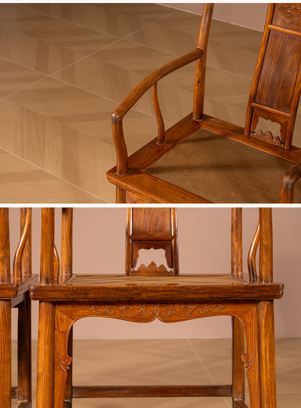 清 黄花梨三攒靠背螭龙纹南官帽椅(一对)