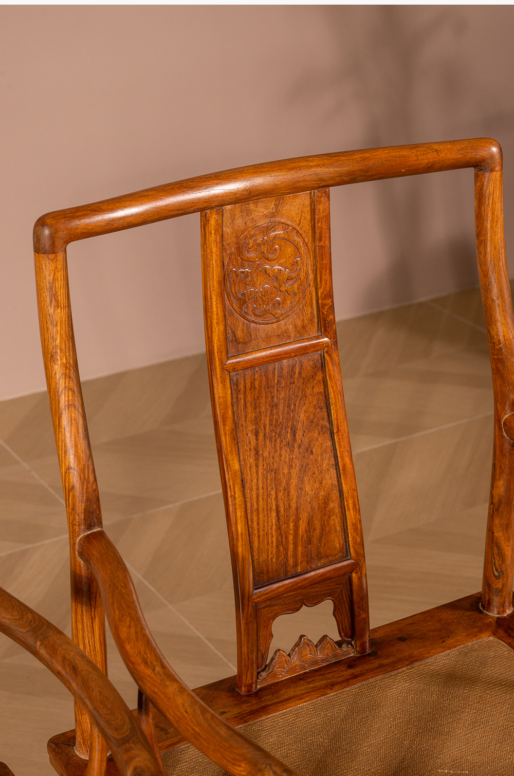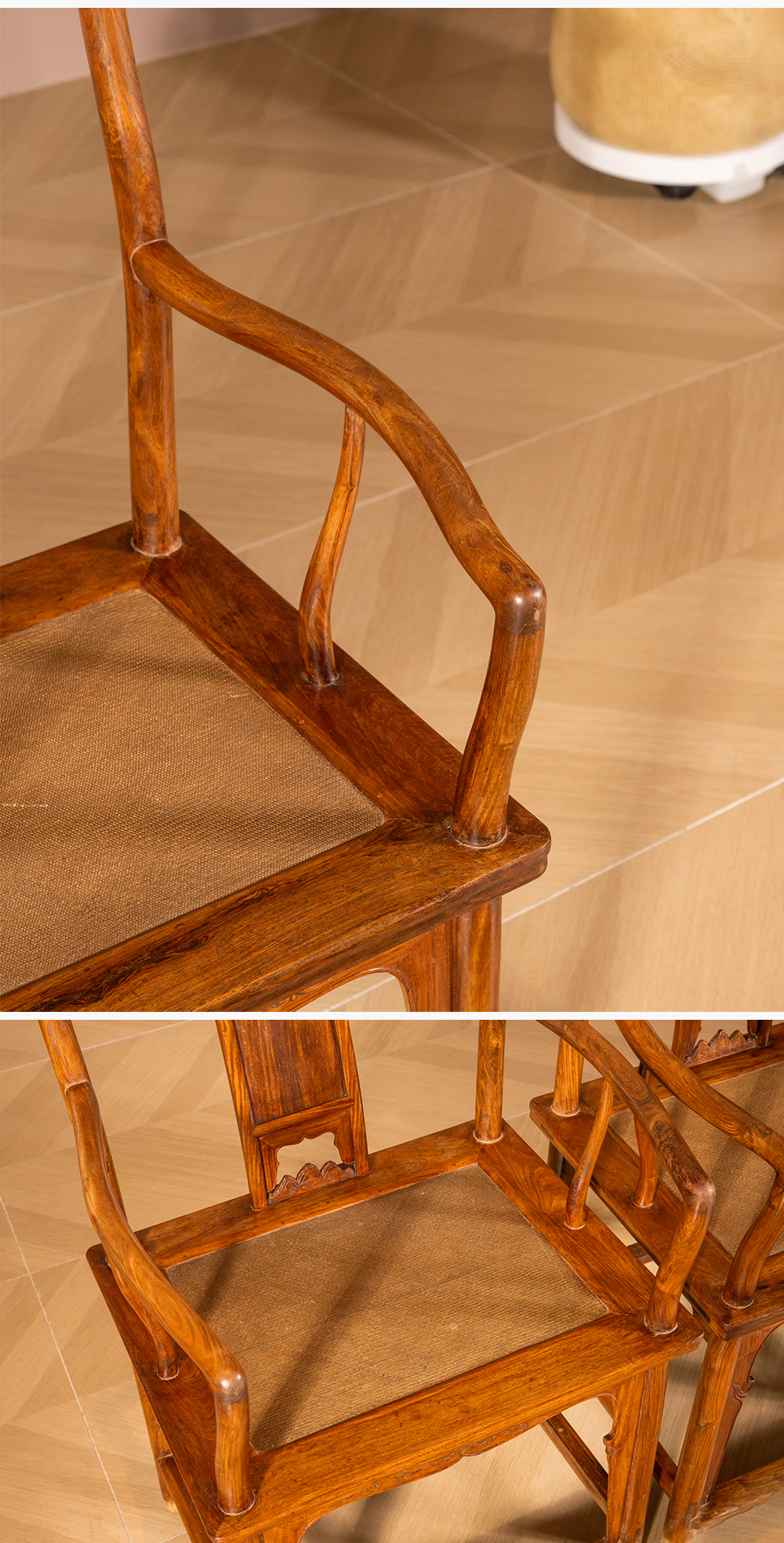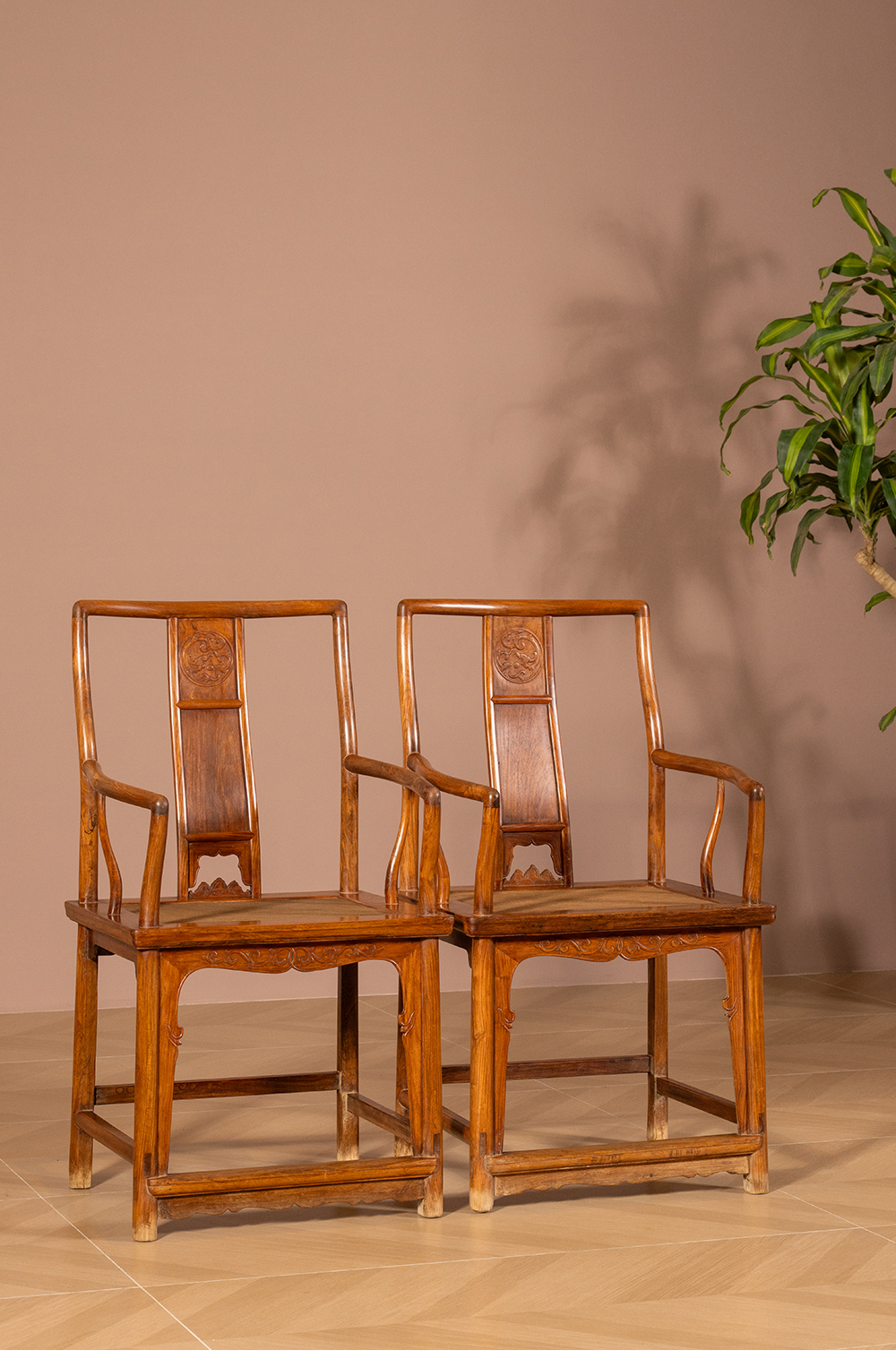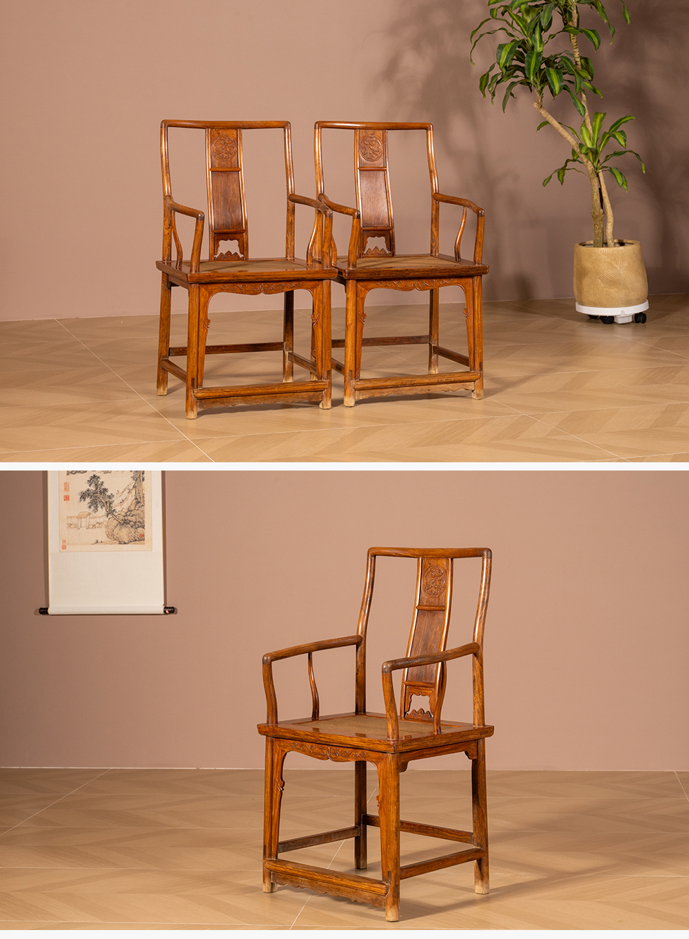 清 黄花梨三攒靠背螭龙纹南官帽椅(一对)