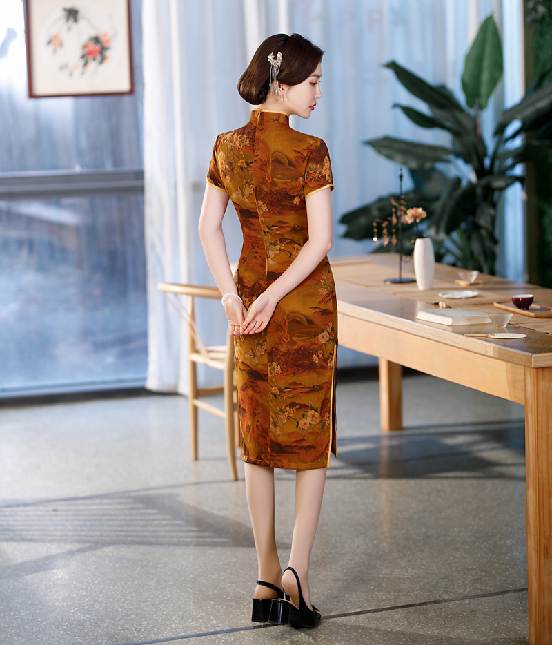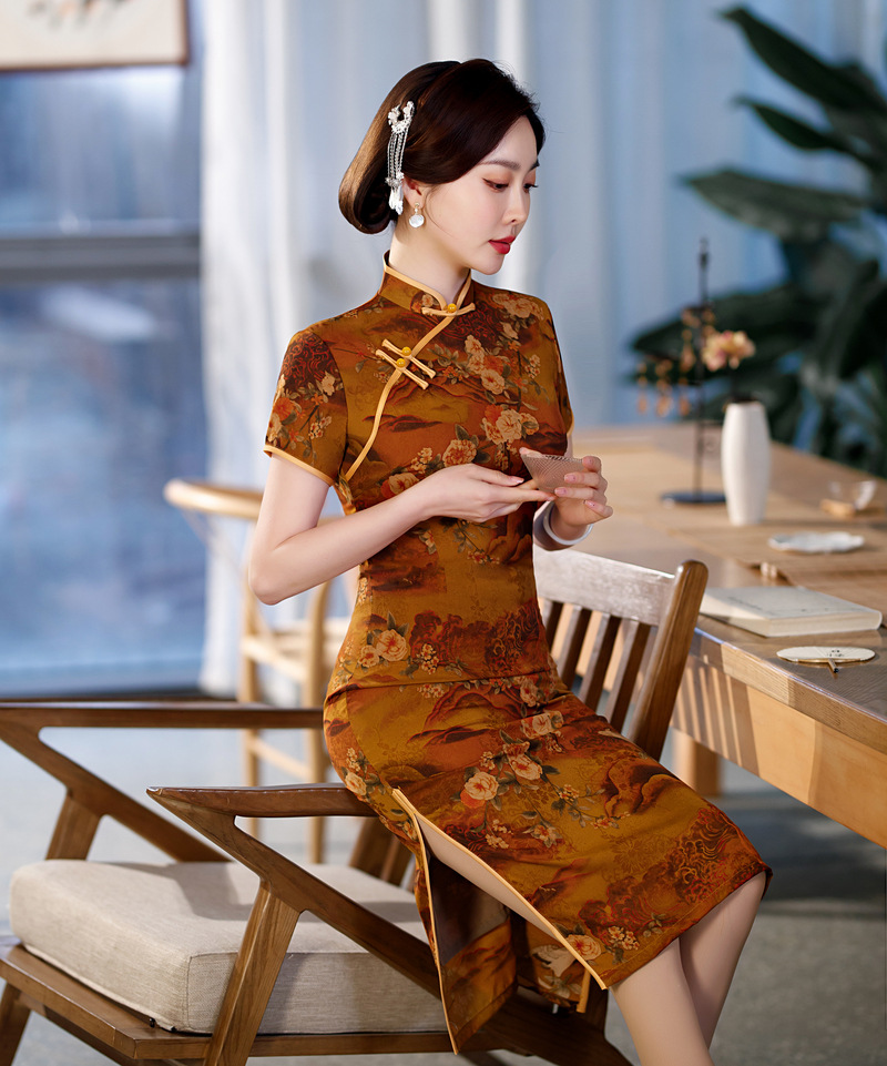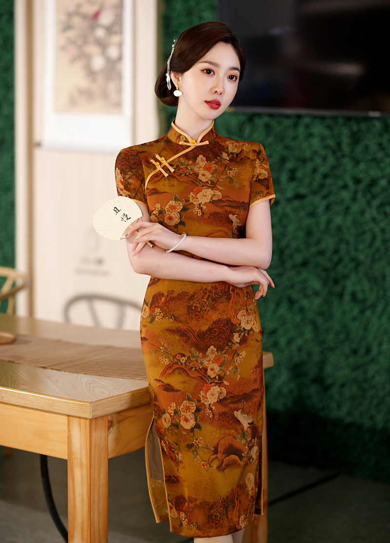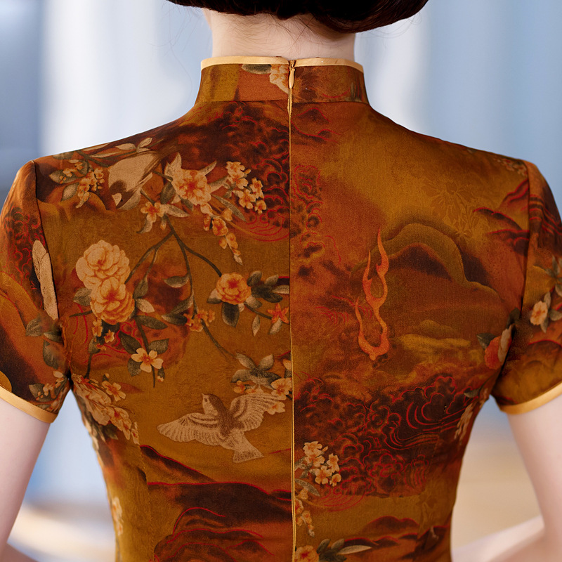 ZAYS2026春夏新品中长花罗香云纱旗袍日常中老年气质立领短袖旗袍