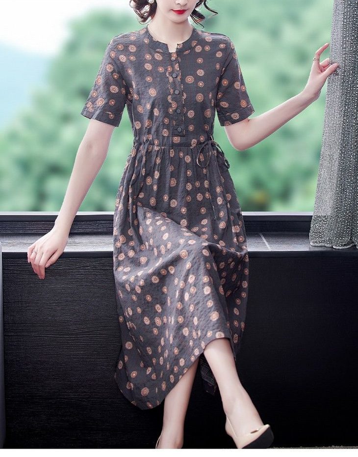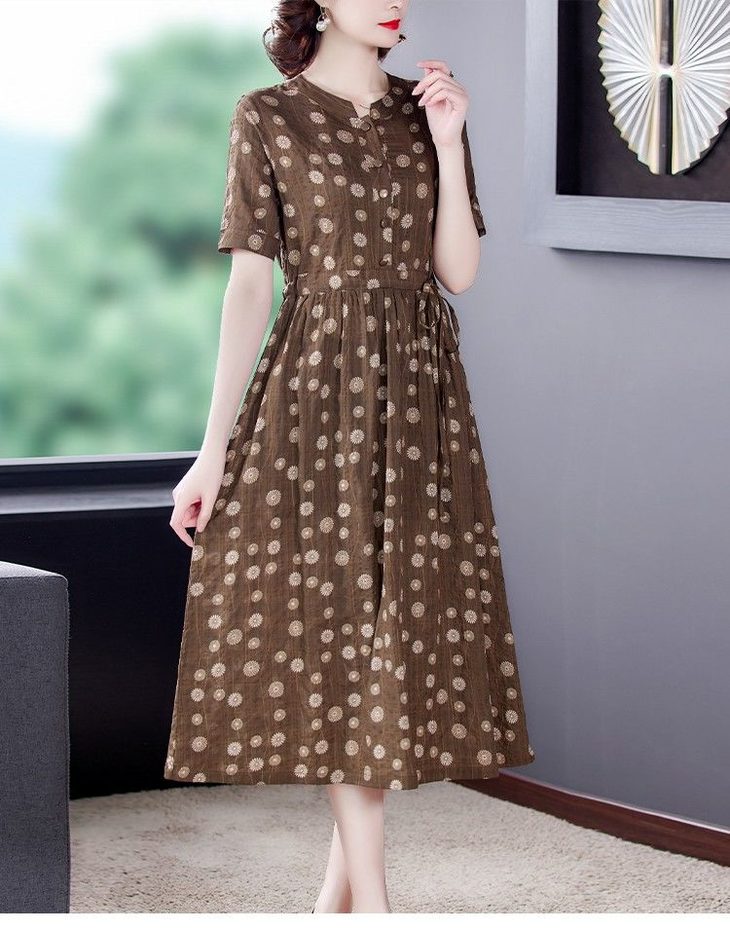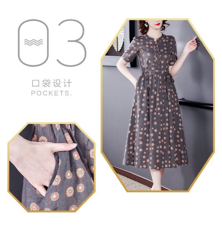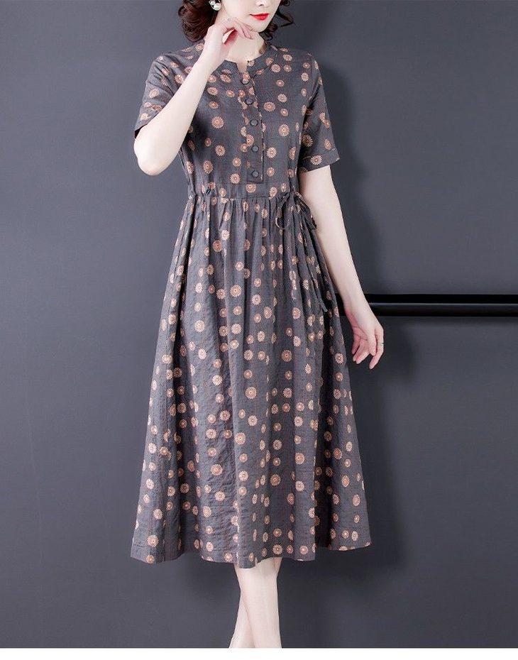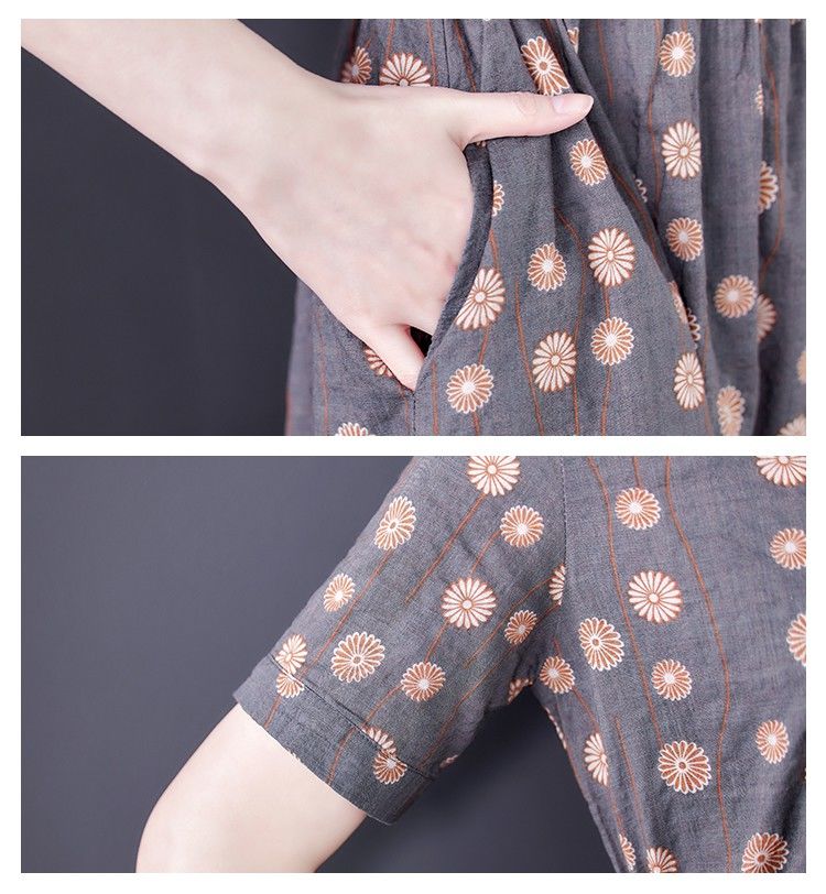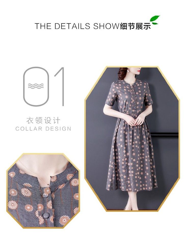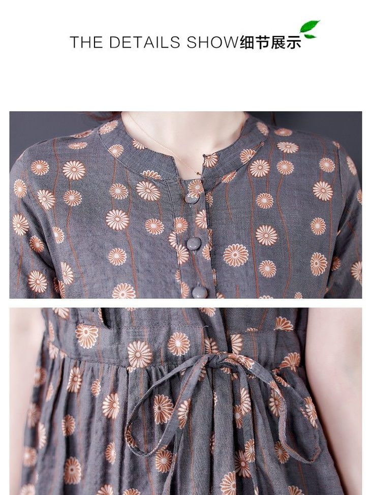 JXG-棉麻连衣裙女装2021年新款夏装宽松洋气减龄收腰显瘦亚麻碎花裙子