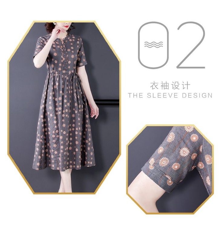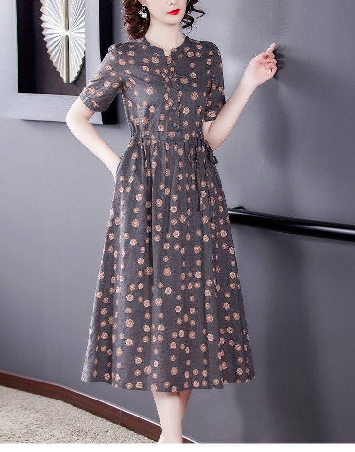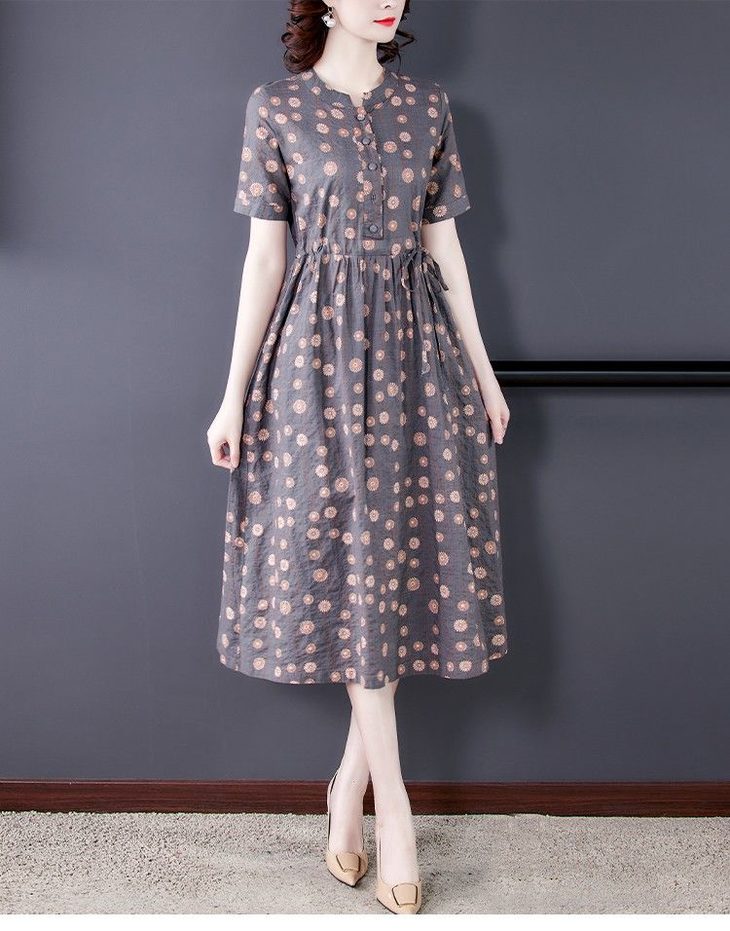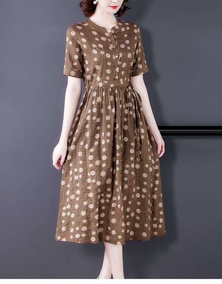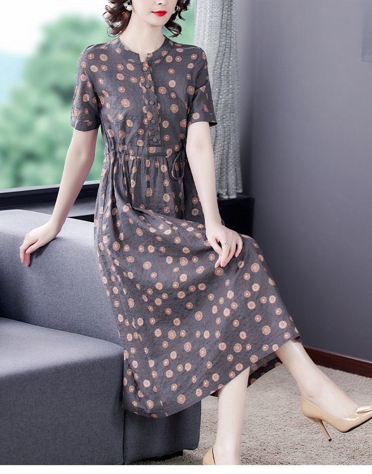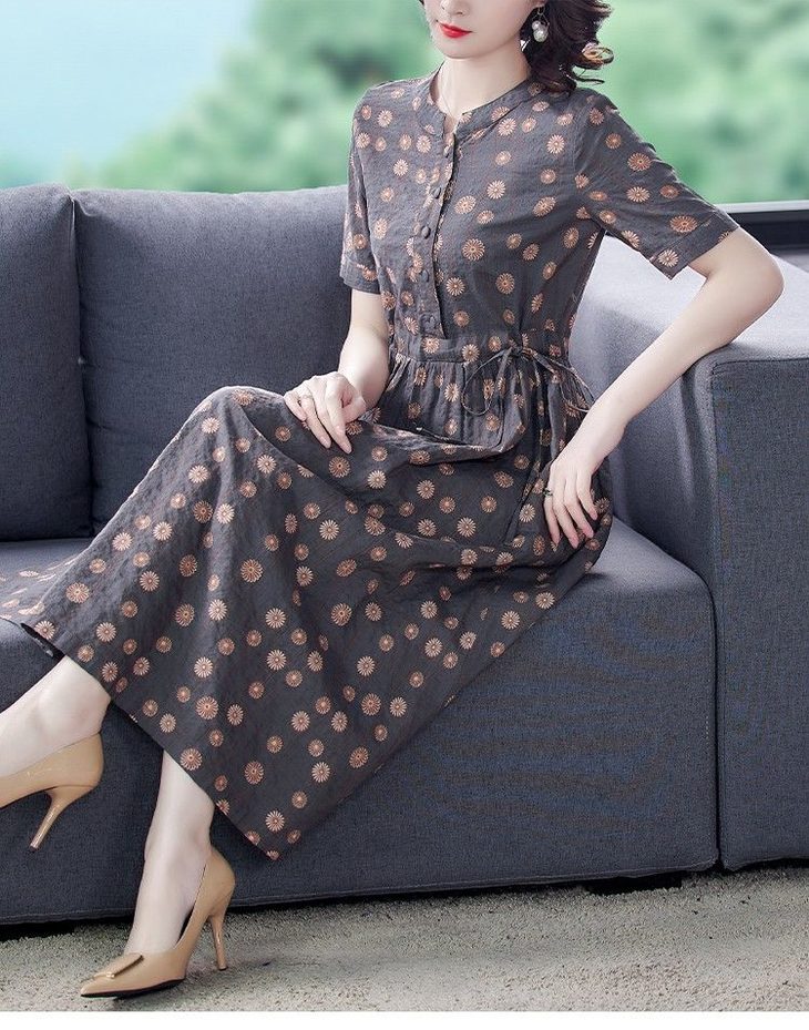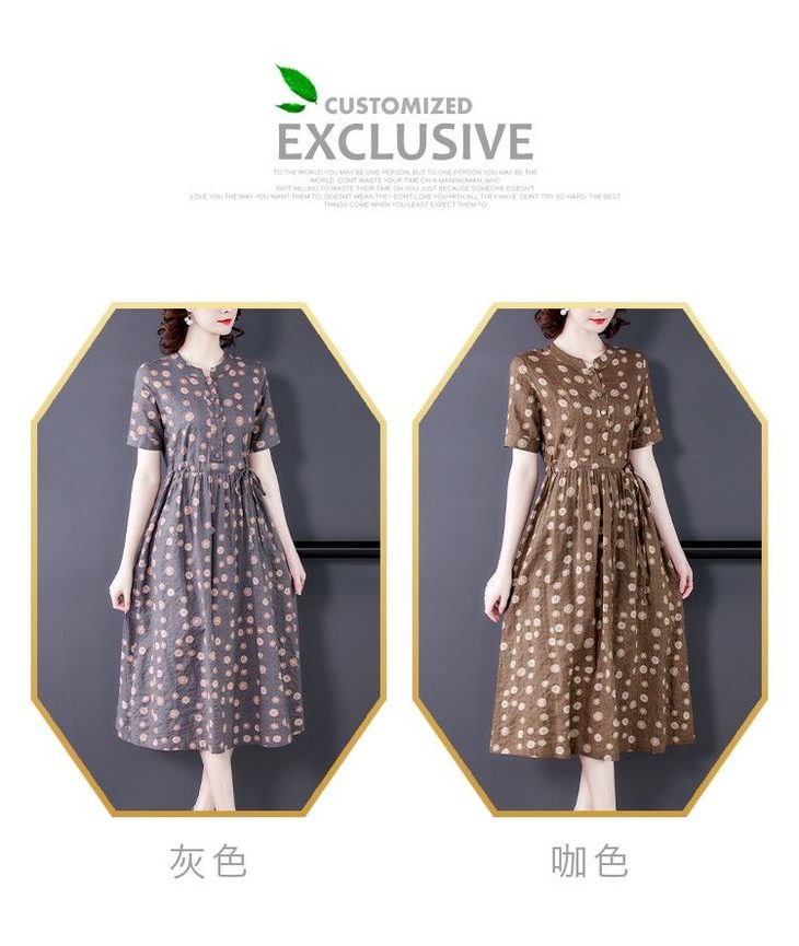JXG-棉麻连衣裙女装2021年新款夏装宽松洋气减龄收腰显瘦亚麻碎花裙子