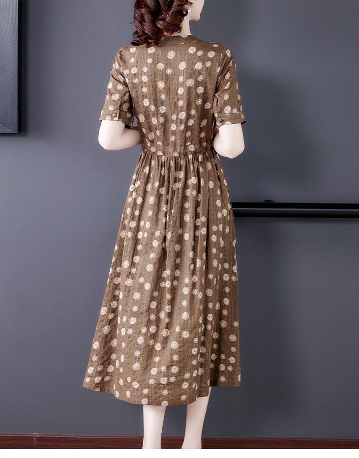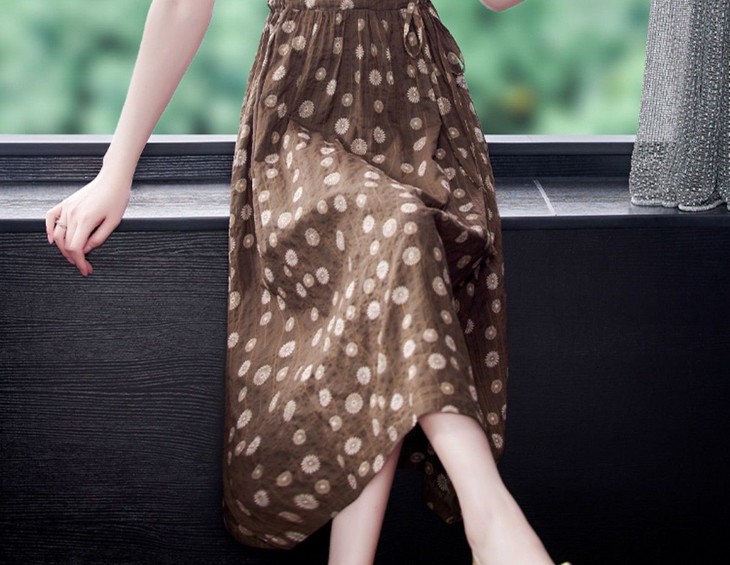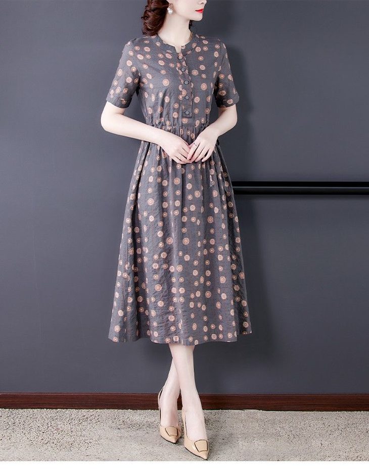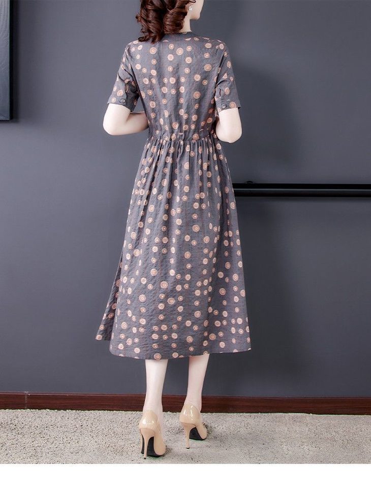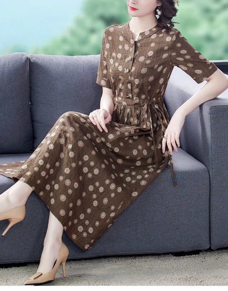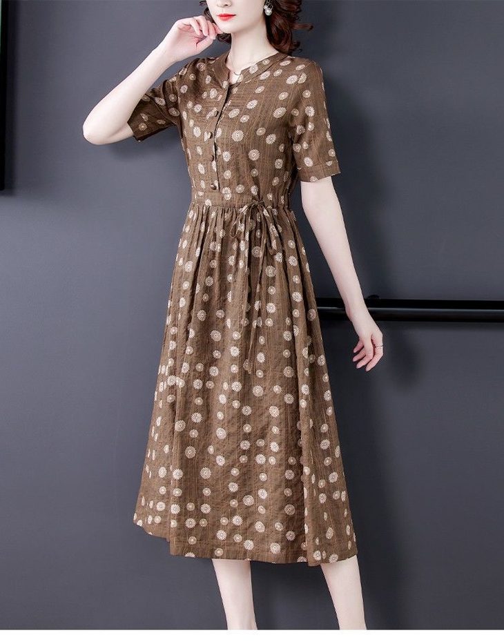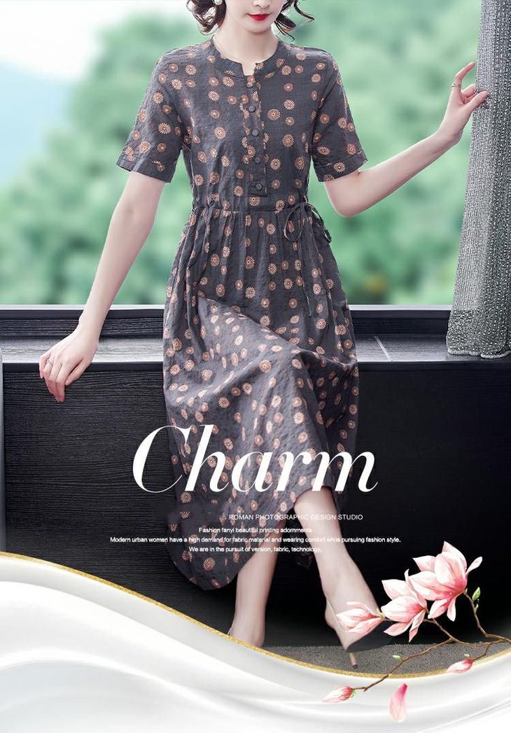JXG-棉麻连衣裙女装2021年新款夏装宽松洋气减龄收腰显瘦亚麻碎花裙子