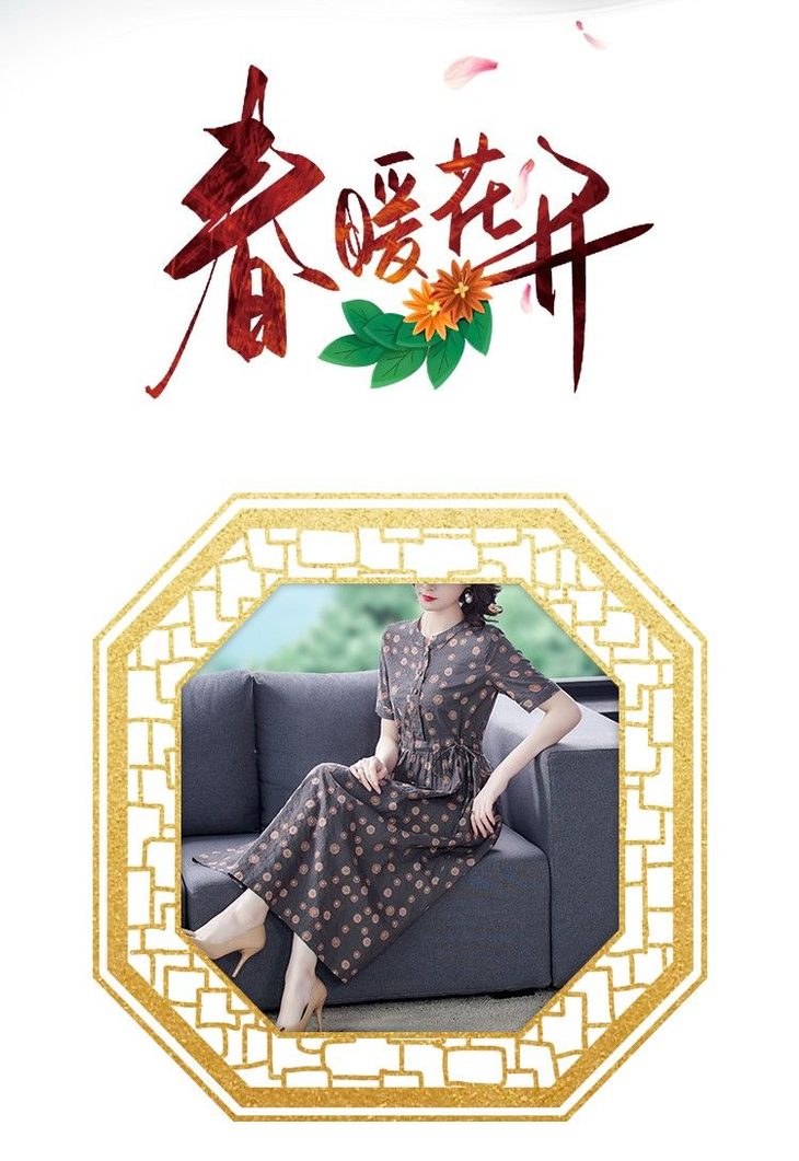 ALXBL1903中长款七分袖拉链2017年春季连衣裙花色V领中腰