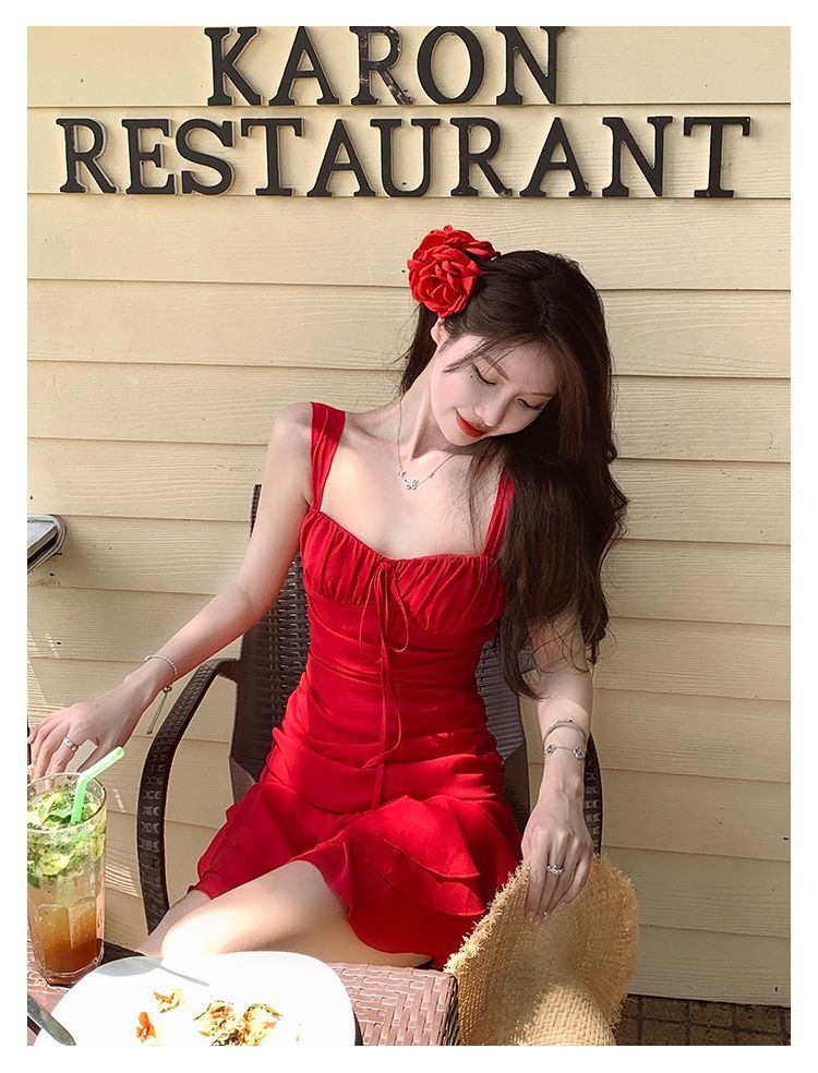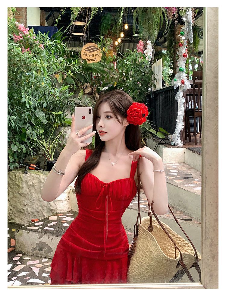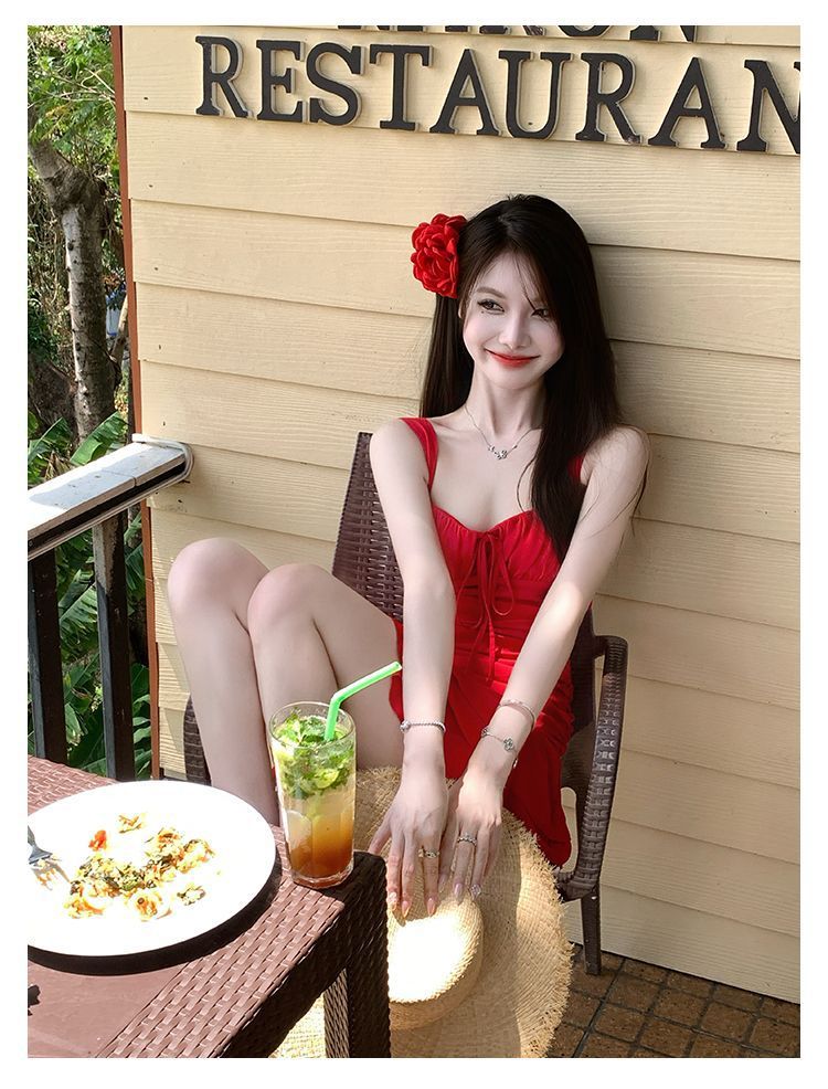 【敲级显白,海边度假必备!】明媚夏日2025新款泳衣女 夏季显白 海边度假小红裙 连衣裙式温泉泳装-QQ