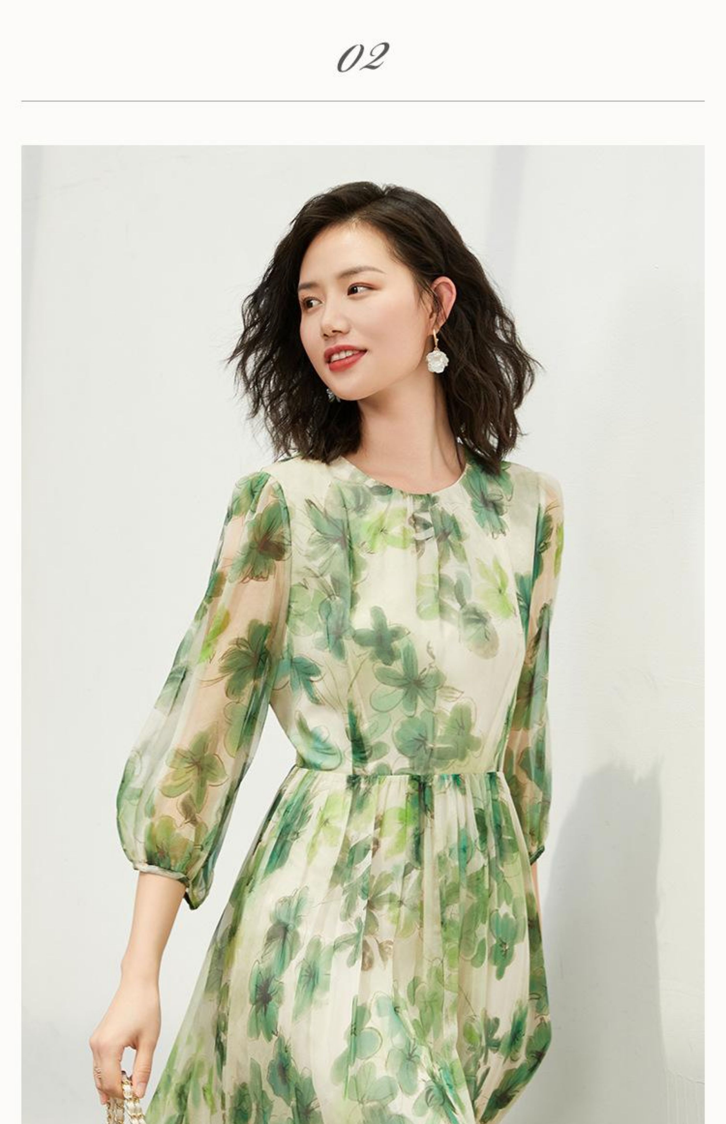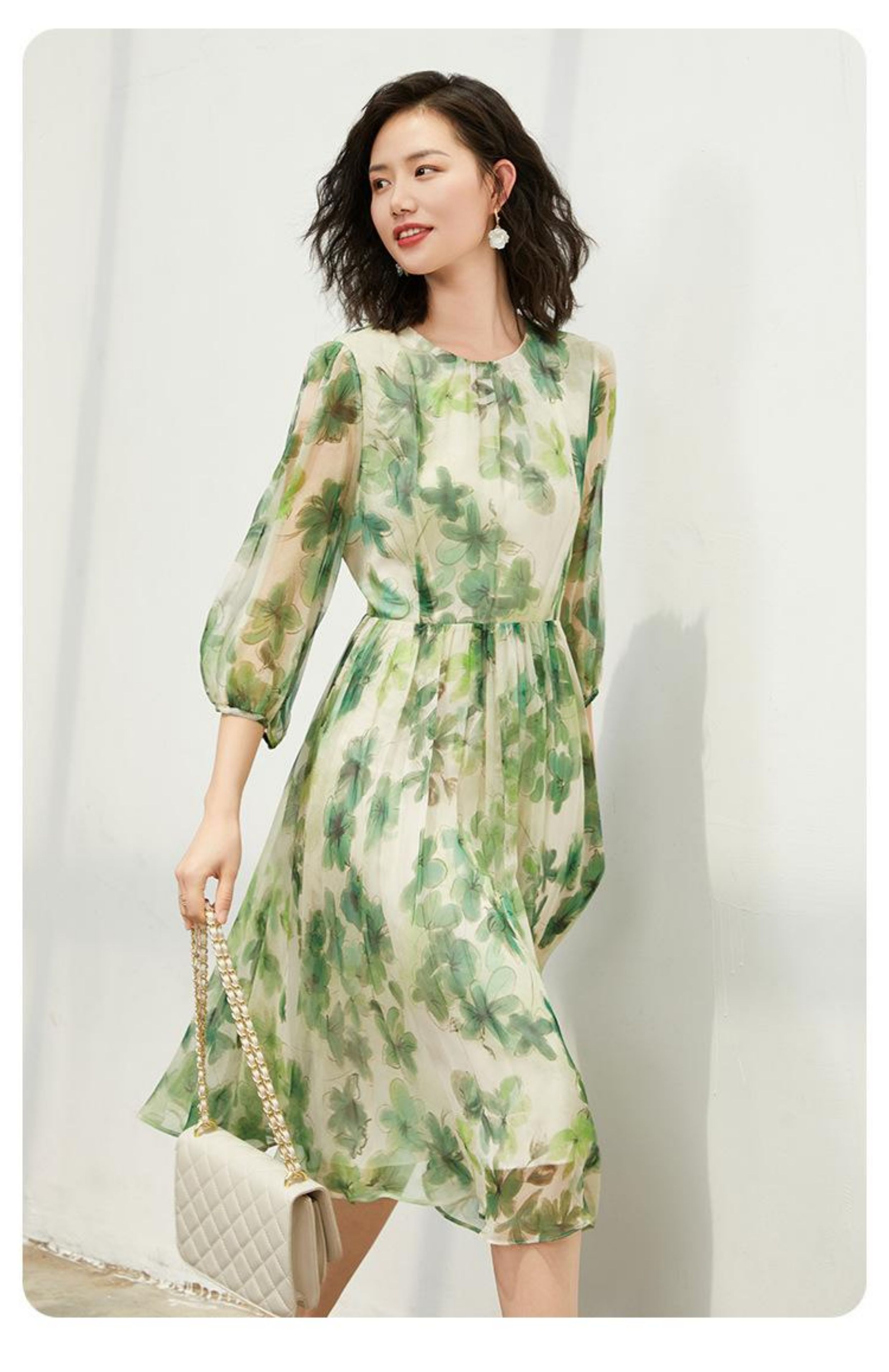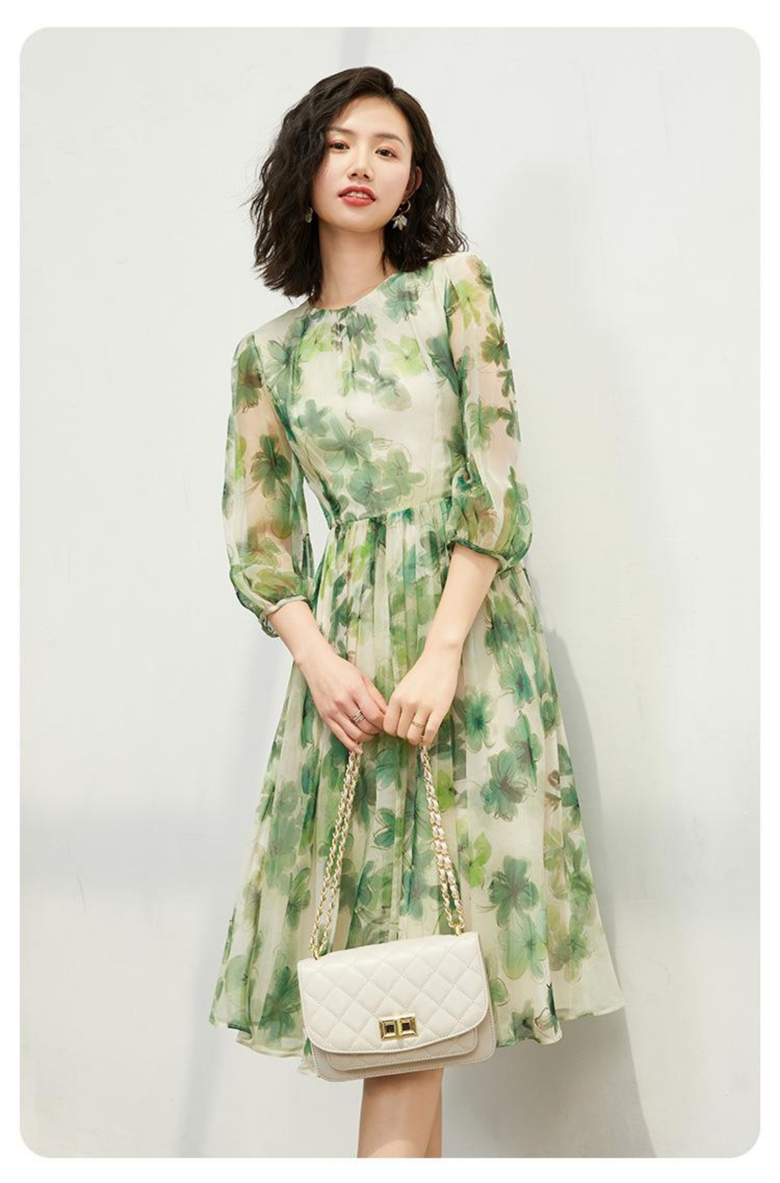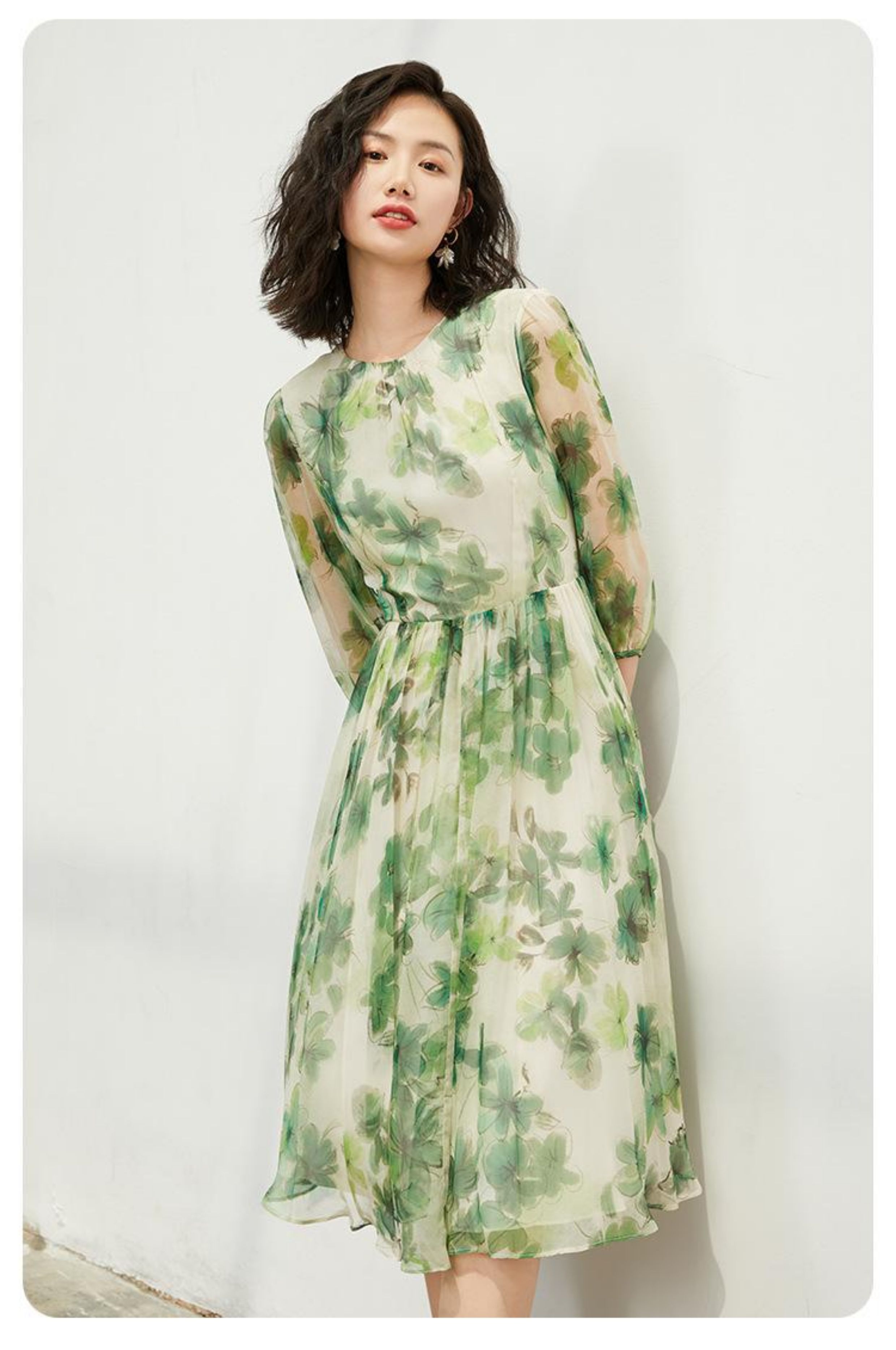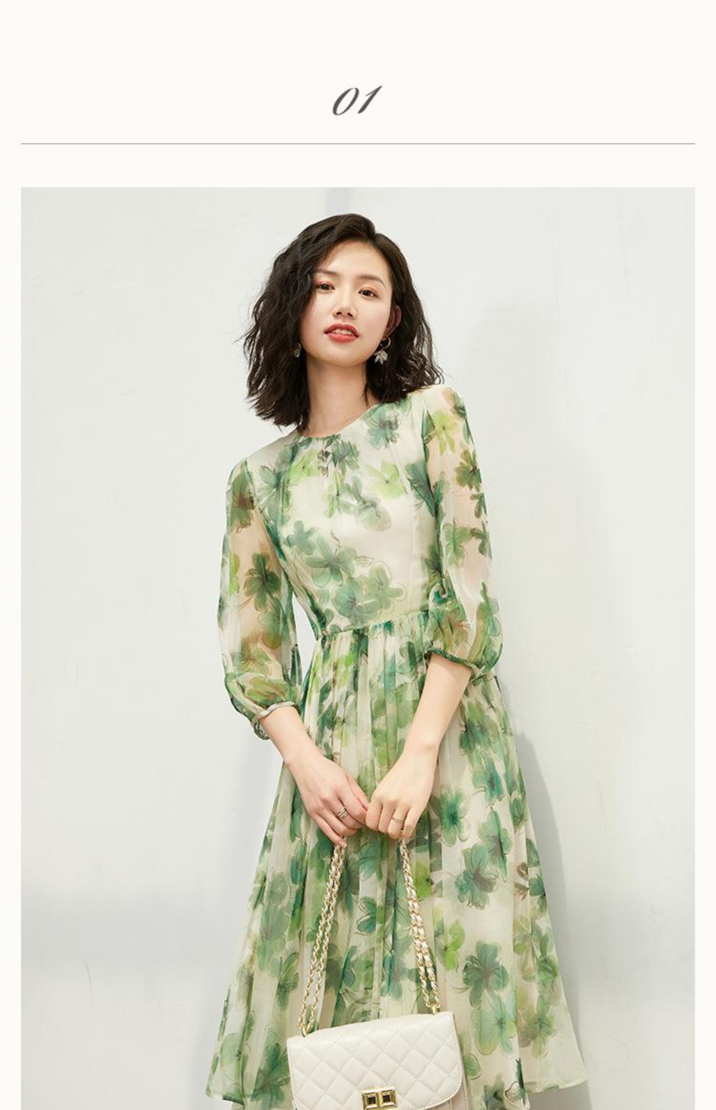 【自】全新升级【铂金会员468/天猫629/差价161】(14310) 洛诗琳新款真丝连衣裙长袖桑蚕丝中长款温柔风高腰a字长裙