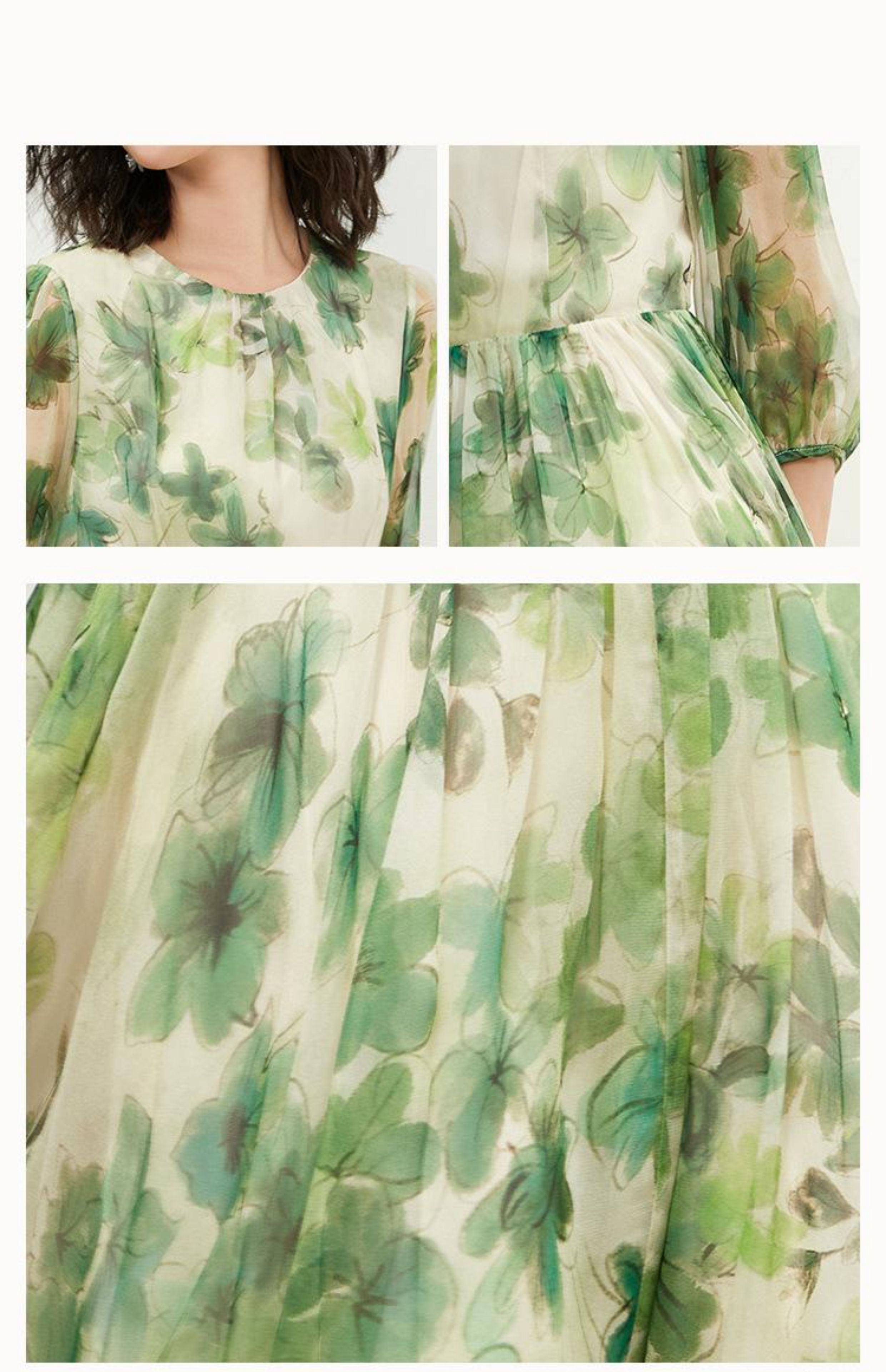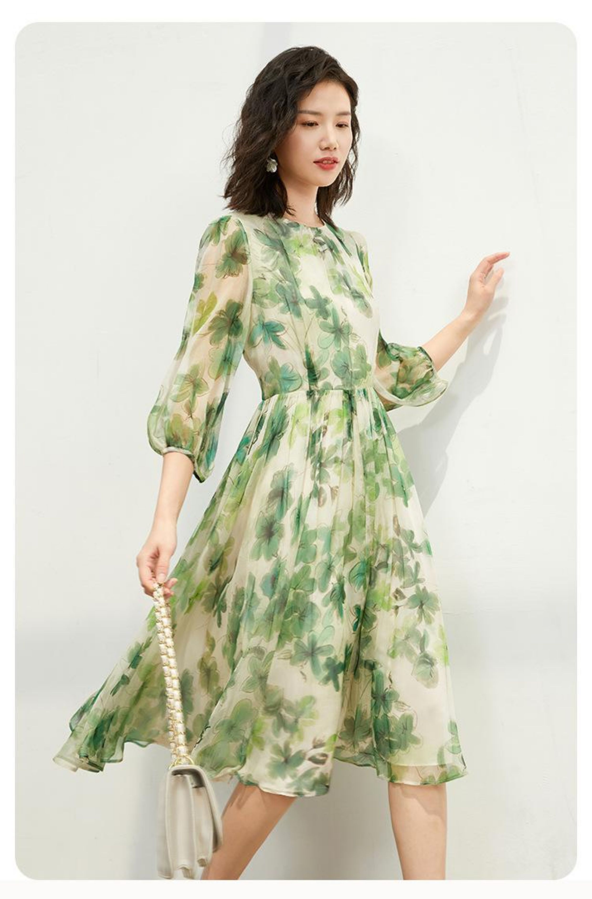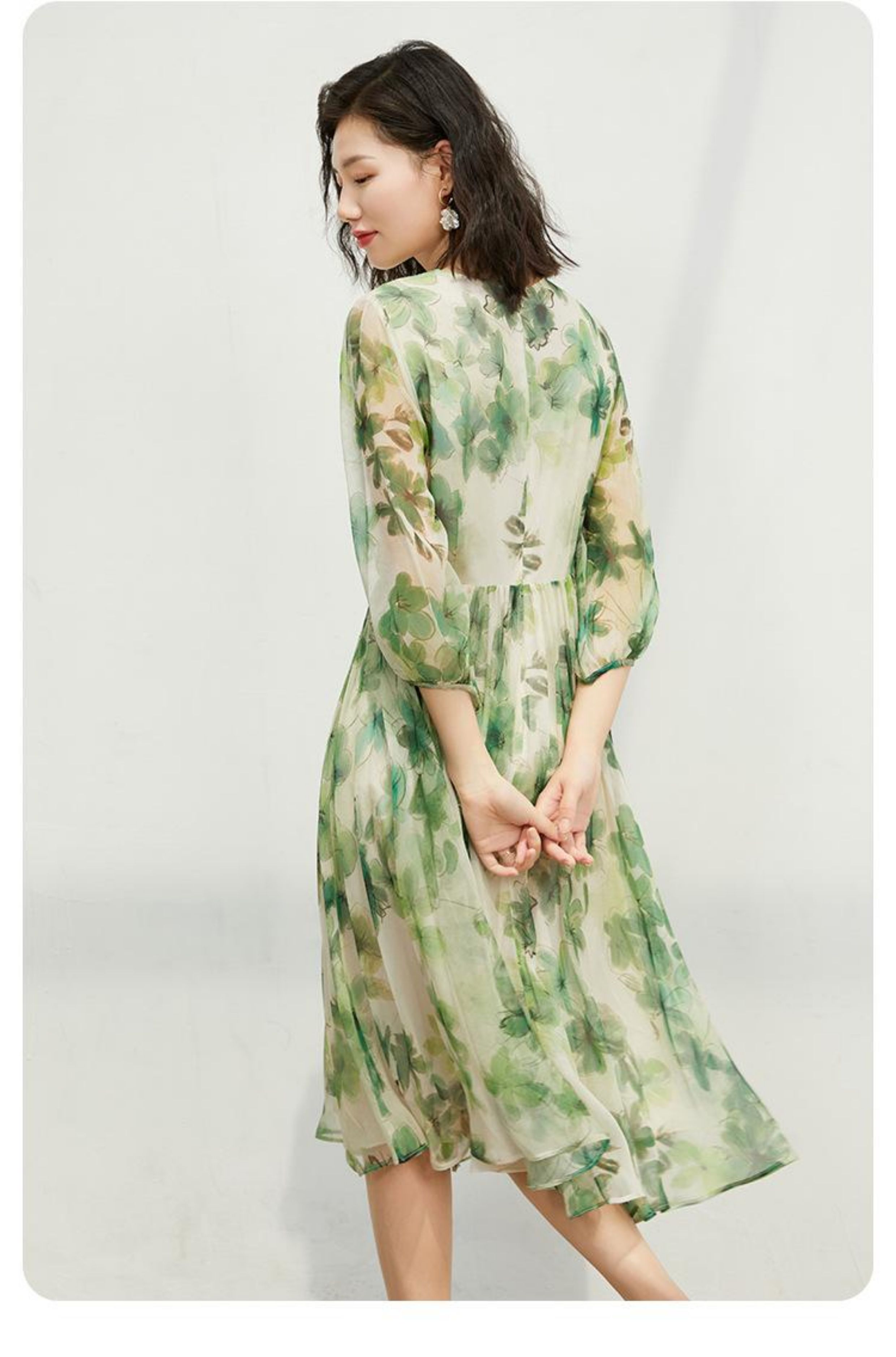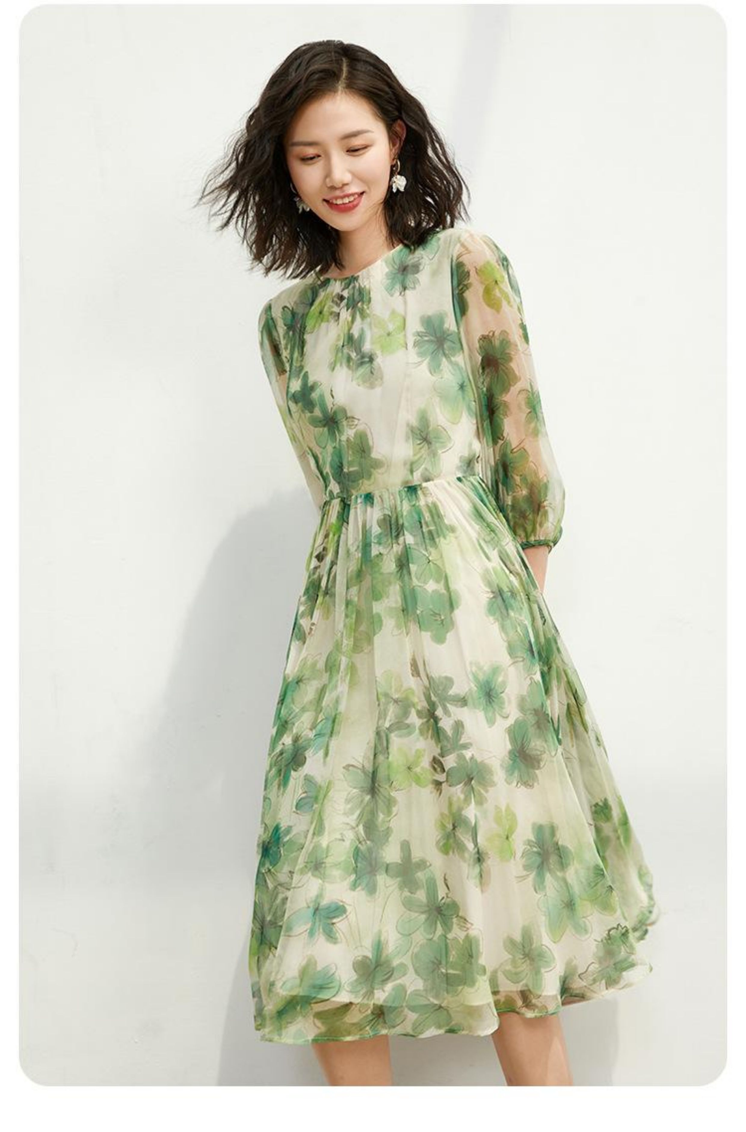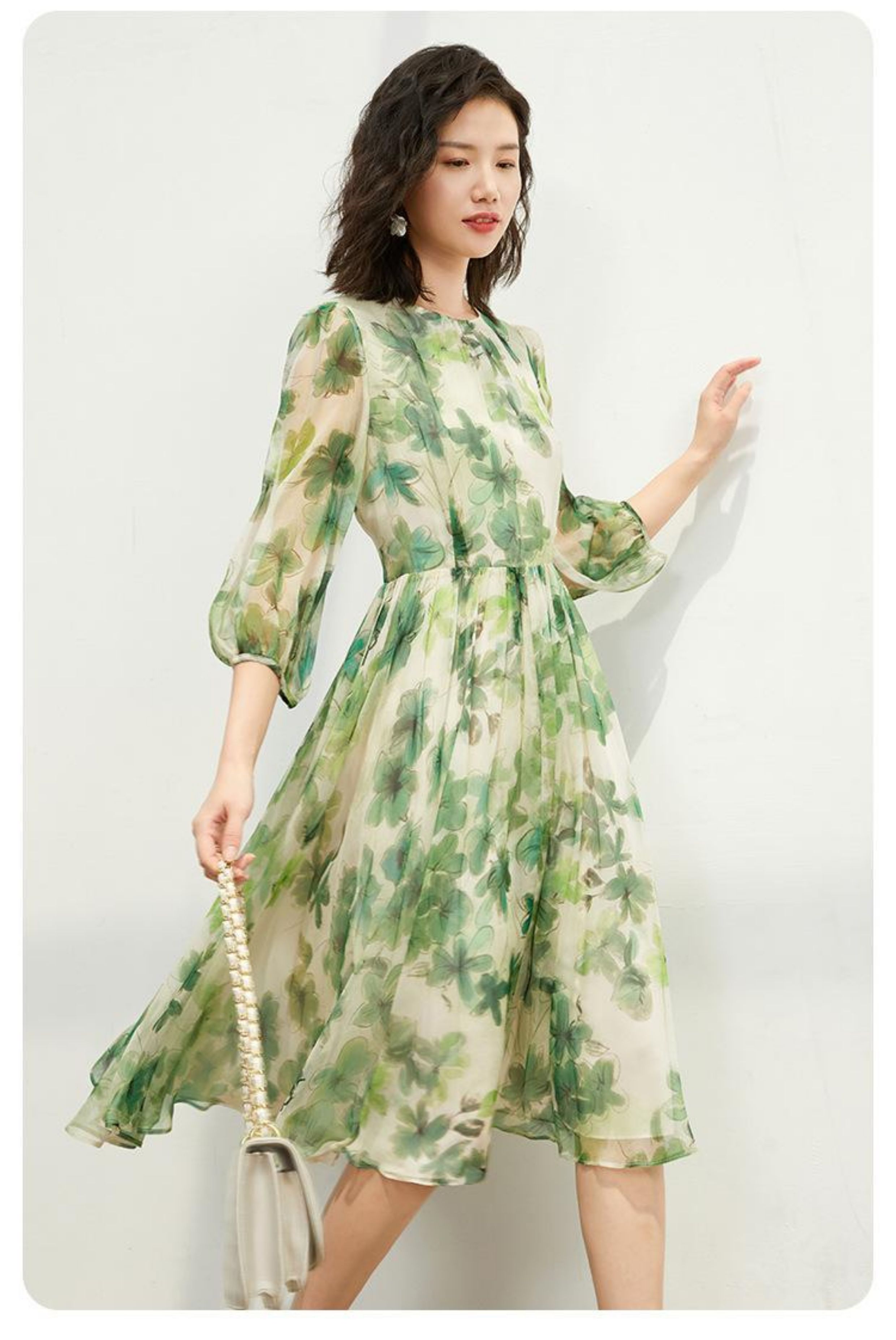 【自】全新升级【铂金会员468/天猫629/差价161】(14310) 洛诗琳新款真丝连衣裙长袖桑蚕丝中长款温柔风高腰a字长裙