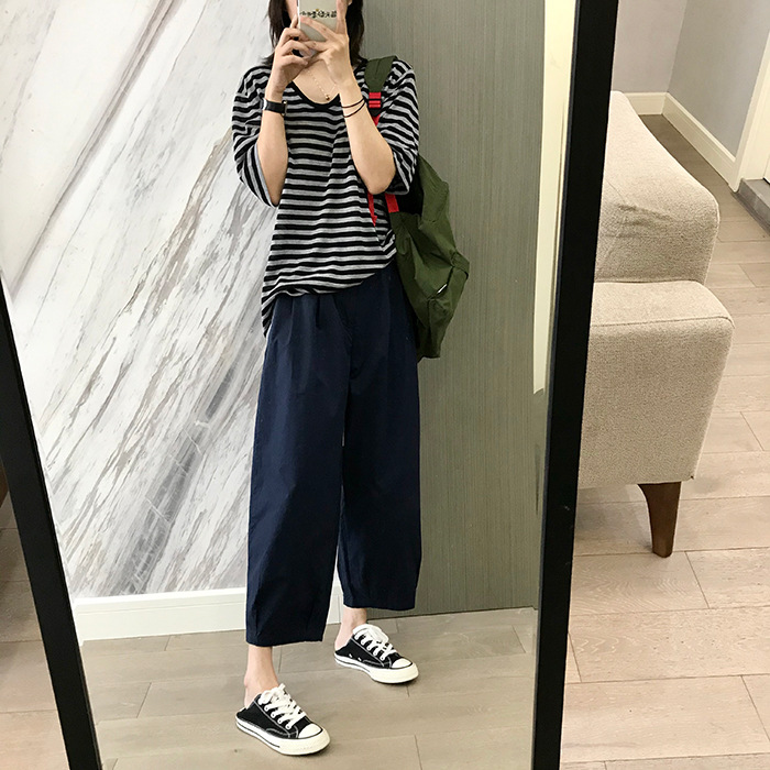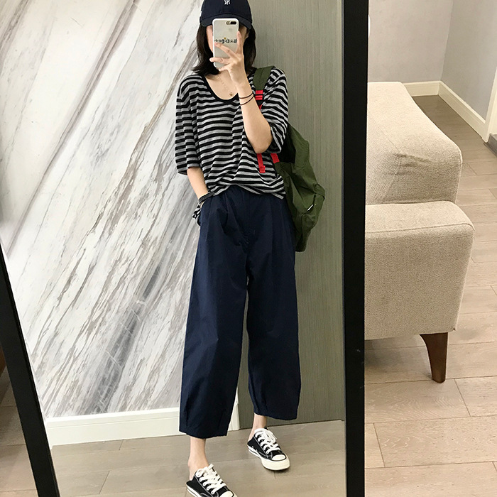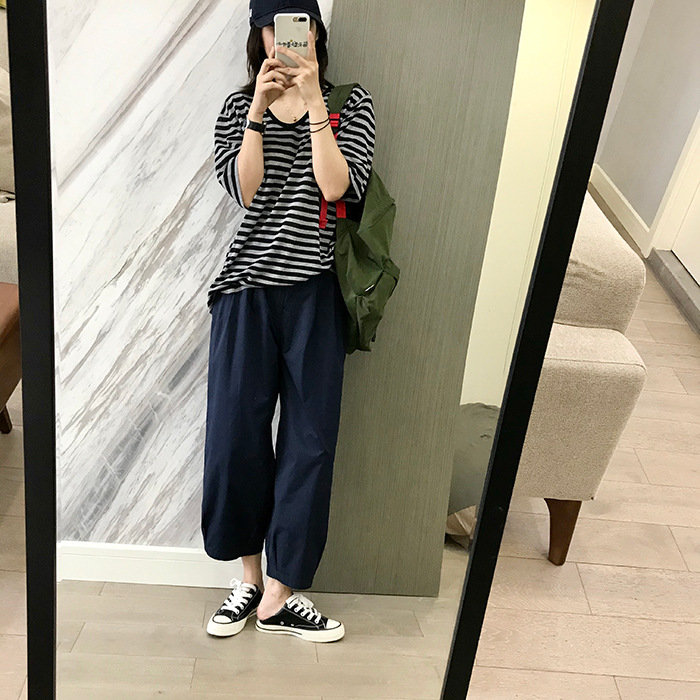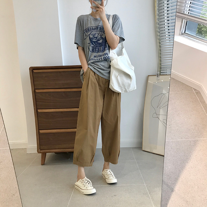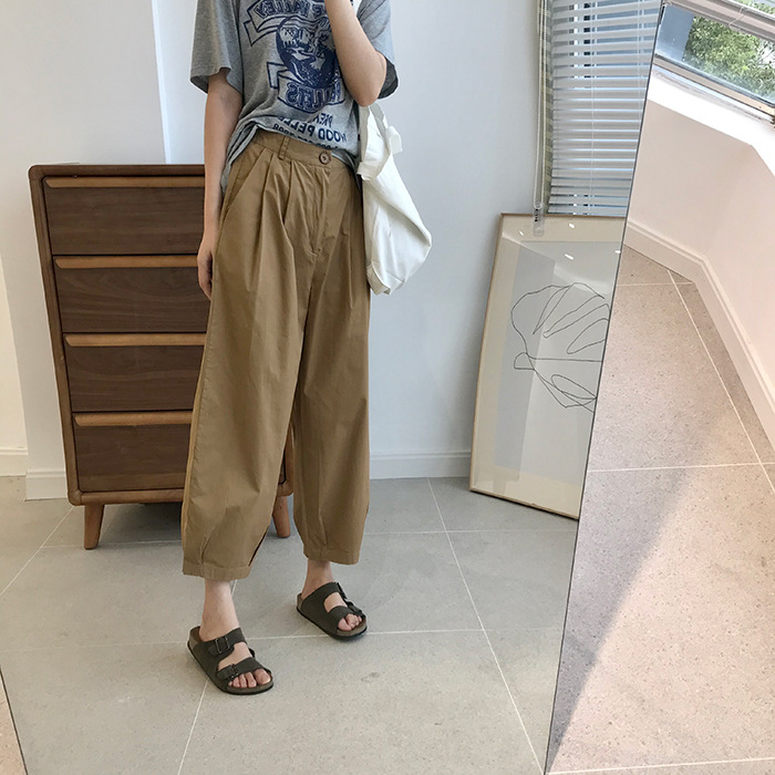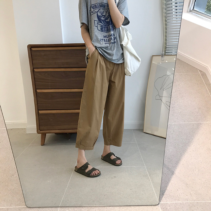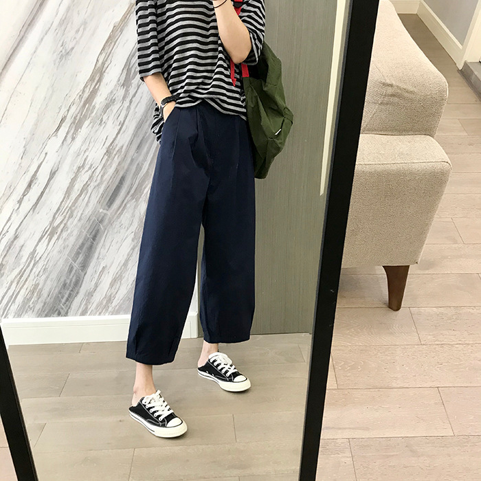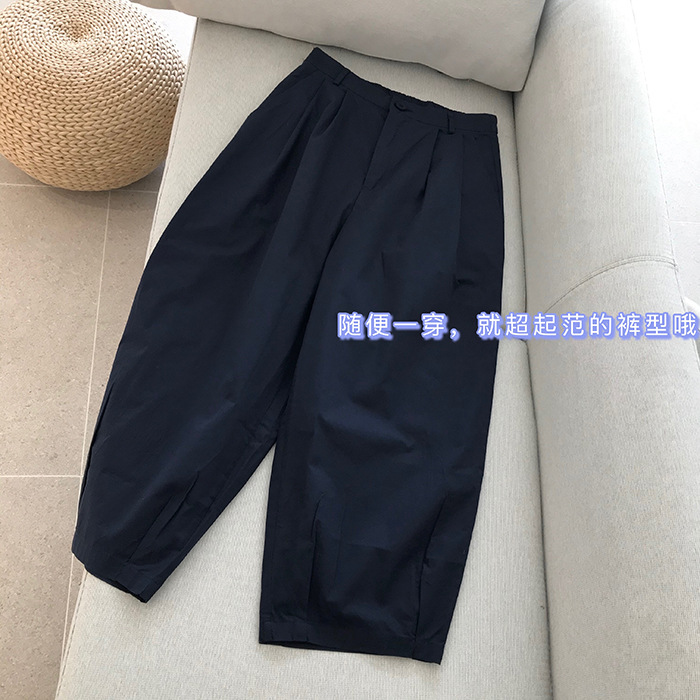 丁摩 夏季薄款哈伦休闲裤女宽松新款直筒裤子日系九分香蕉裤女裤潮5ZF-9379