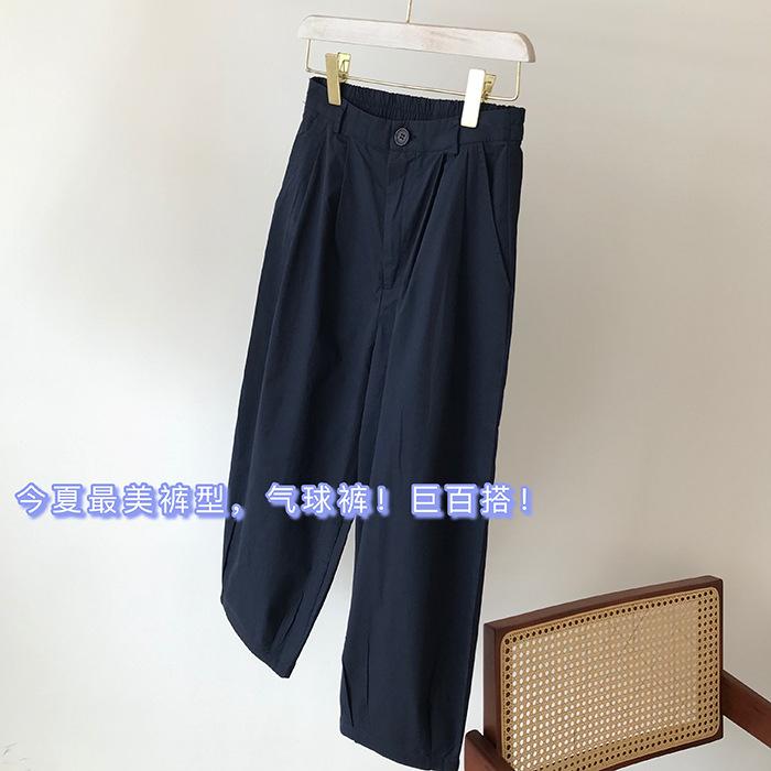 夏季薄款纯棉哈伦休闲裤女宽松新款直筒裤子日系九分香蕉裤女裤潮