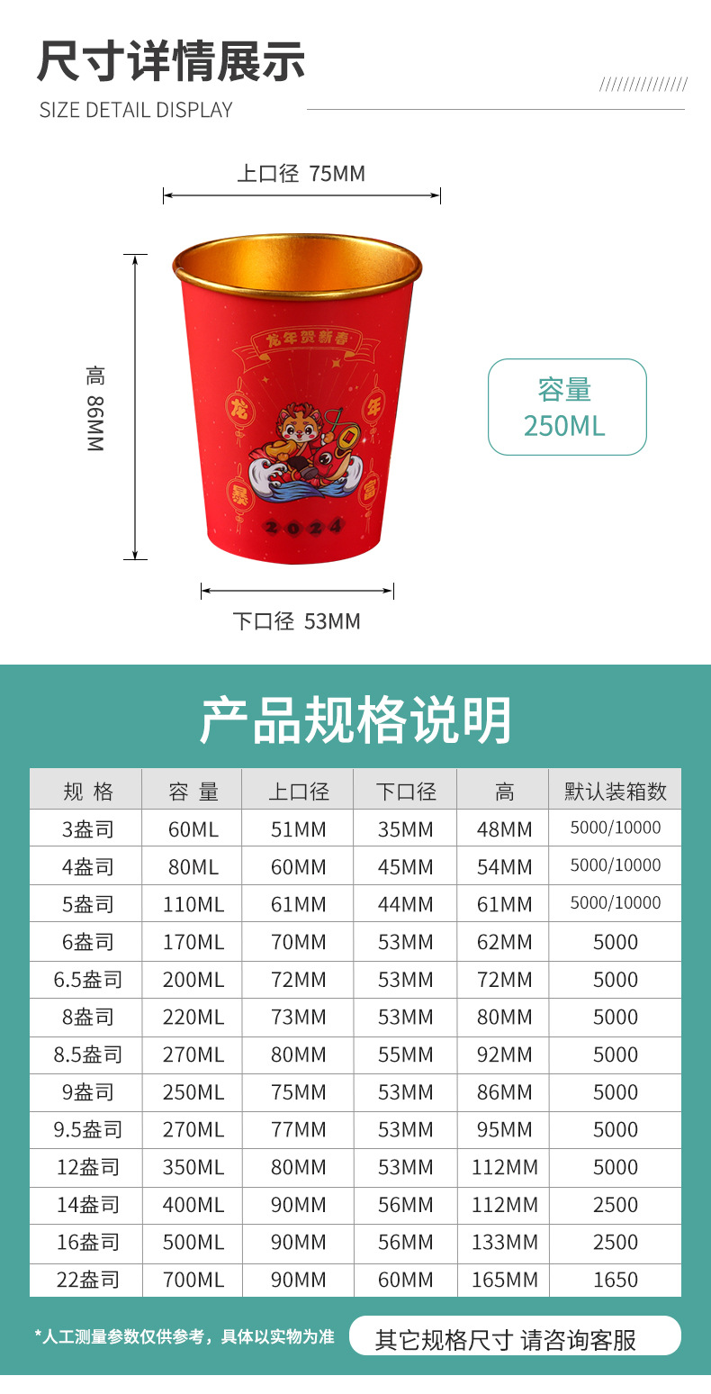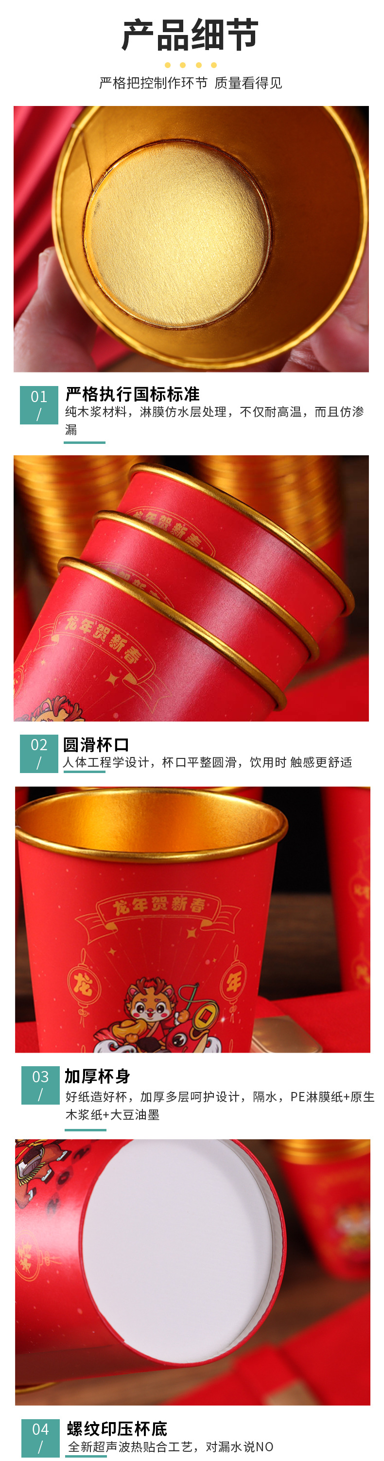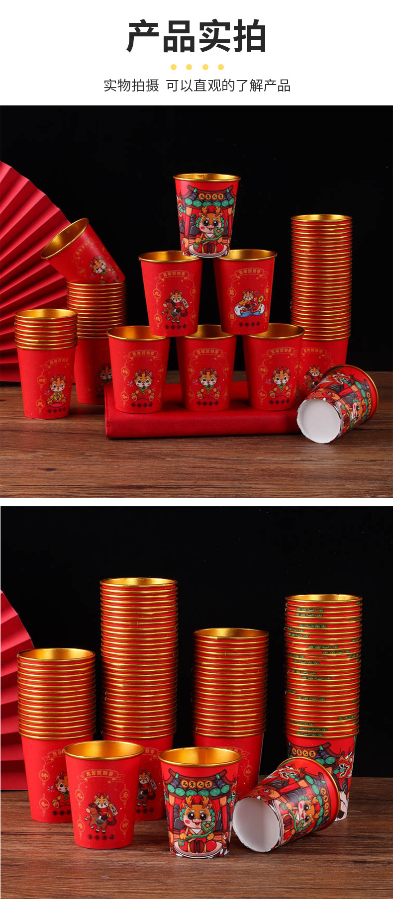 2024龙年新春一次性纸杯批发加厚纸杯家用结婚新年用品纸杯子茶杯