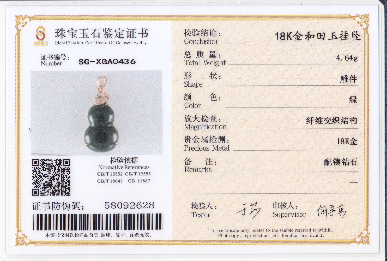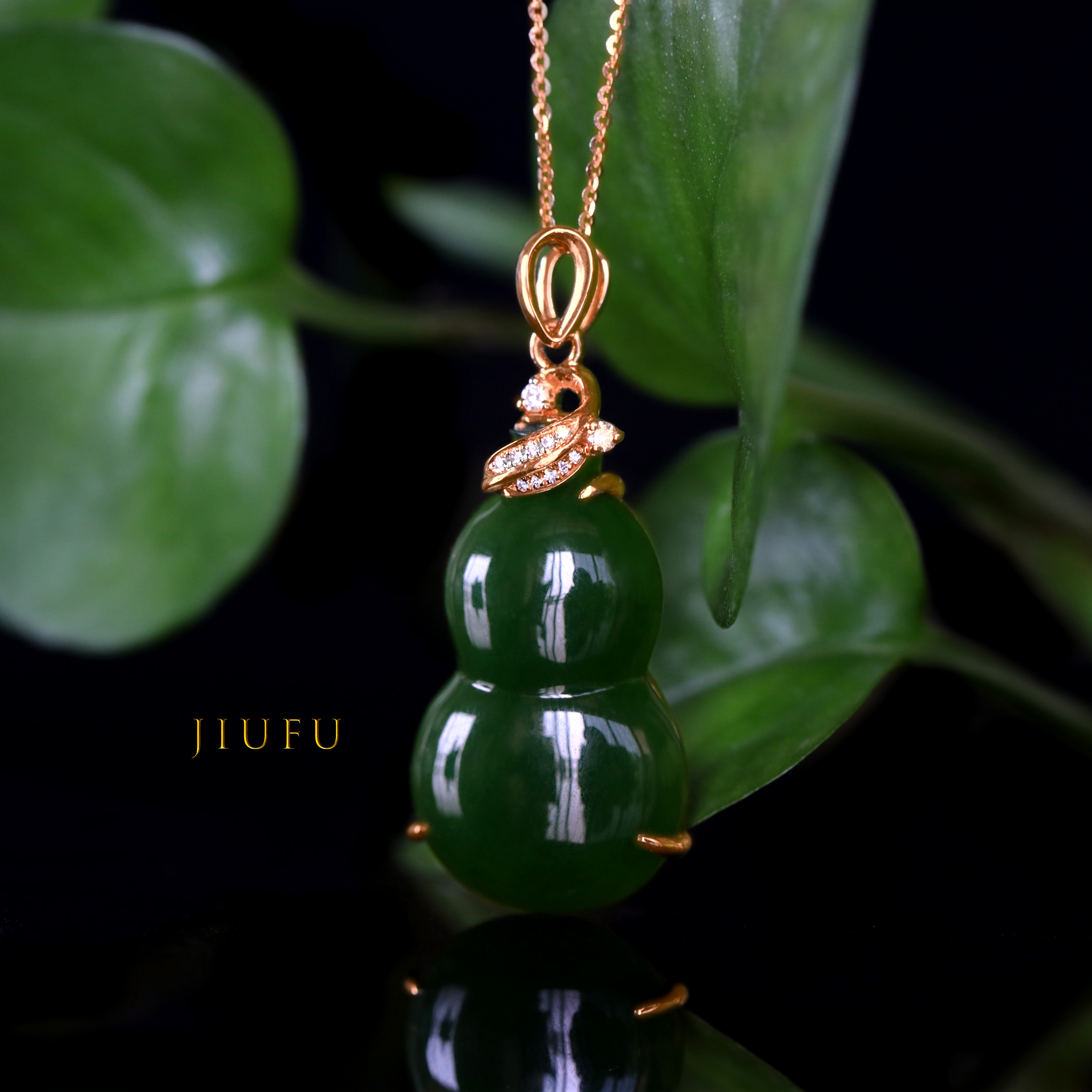 玉石尺寸:单面葫芦15*25mm/菠菜绿 配镶:钻石