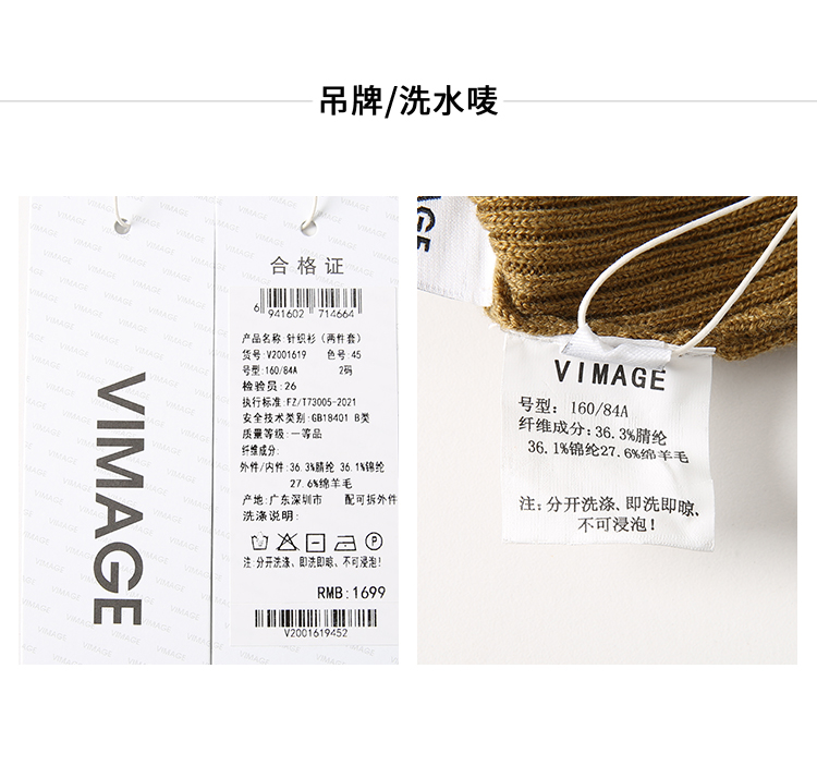 VIMAGE纬漫纪冬季新款时尚纯色两件套针织衫上衣V2001619