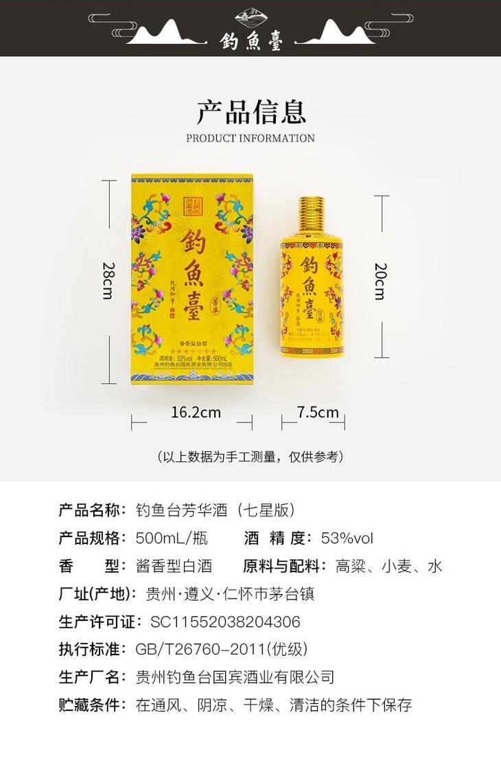 【推荐】钓鱼台芳华酒(七星版)酱香型53度 整箱500ml*6