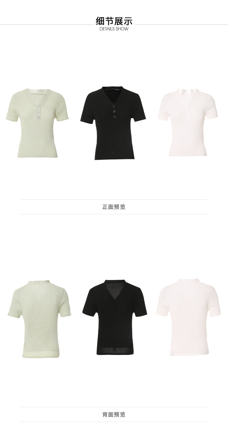 VIMAGE/纬漫纪夏季新款时尚百搭纯色V领套头针织衫女上衣V1701319
