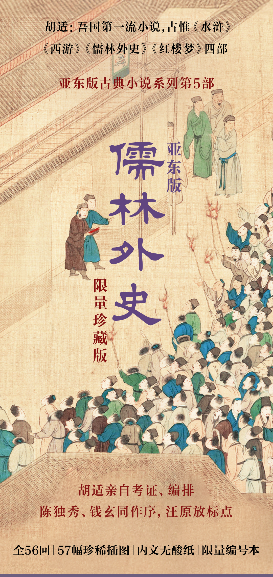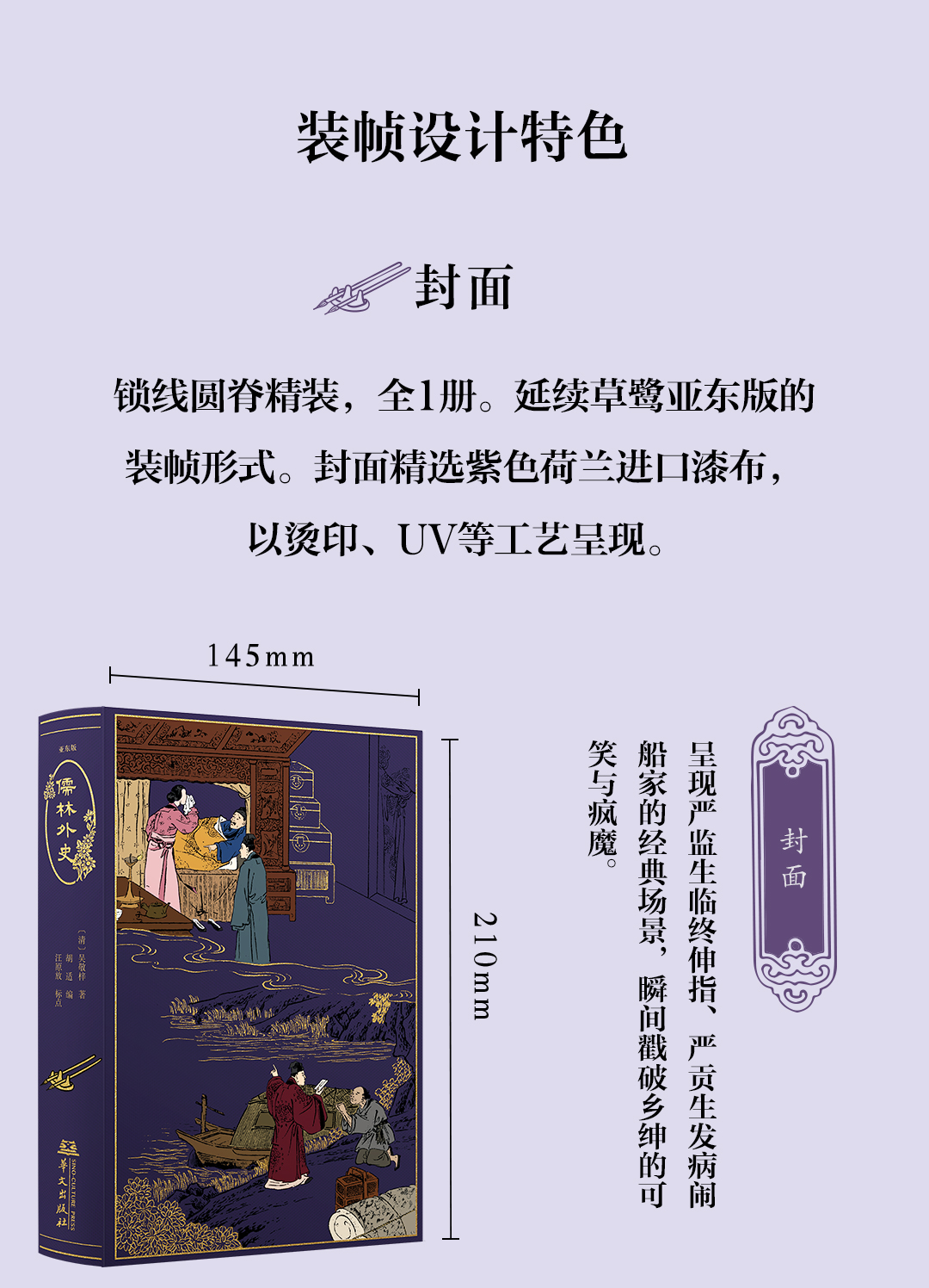 【限量珍藏毛边版】亚东版《儒林外史》,紫色荷兰进口漆布,上书口鎏金+侧书口及下书口毛边 商品图1