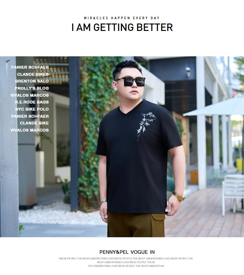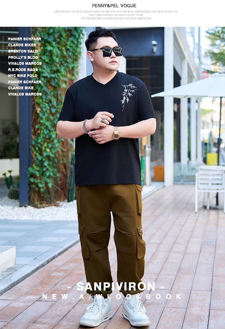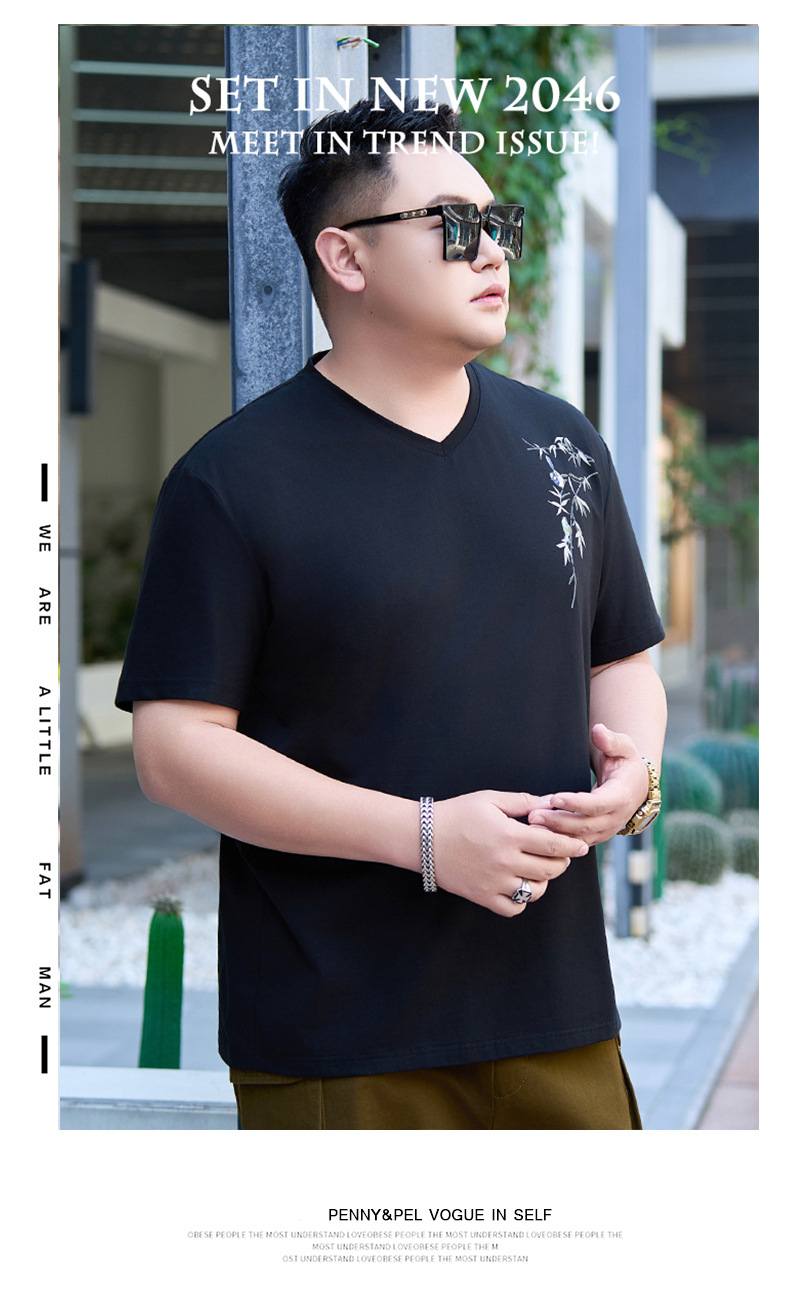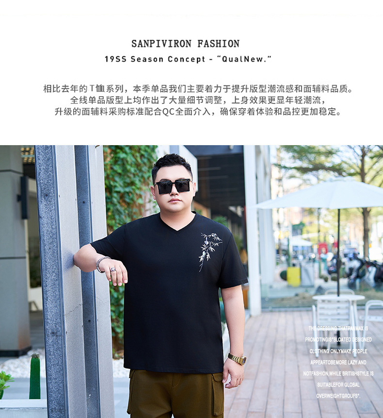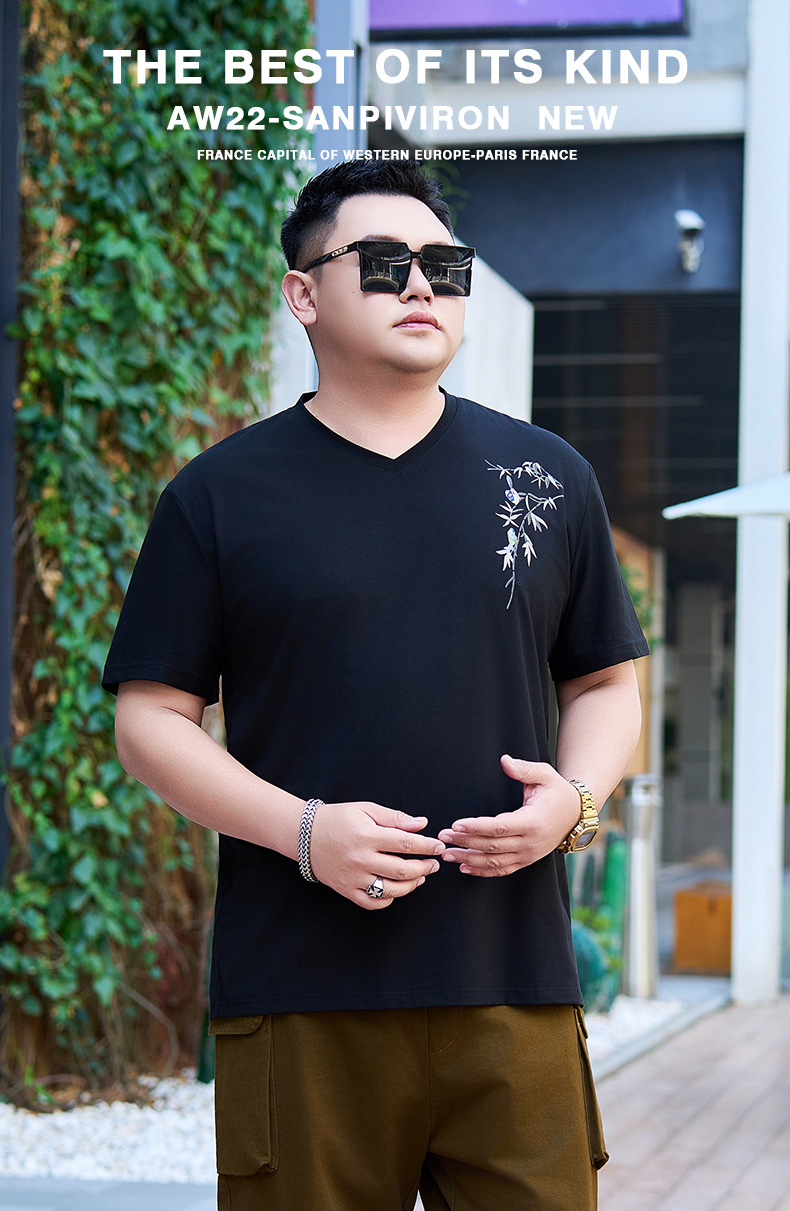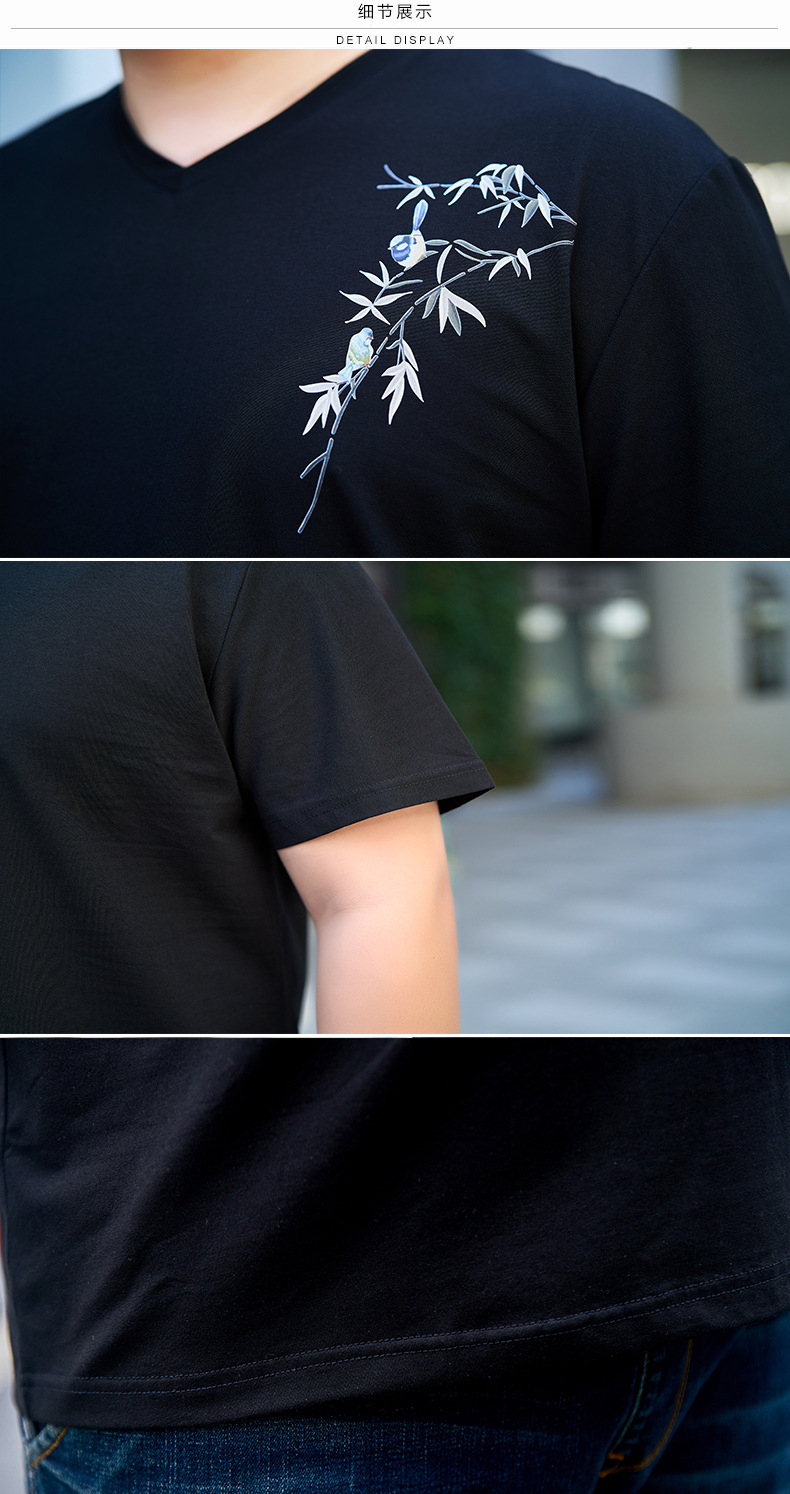 【DYG】大依优型大码男装纯棉V领T恤中国风植物印花短袖T恤男夏季薄款冰感休闲V领t恤男
