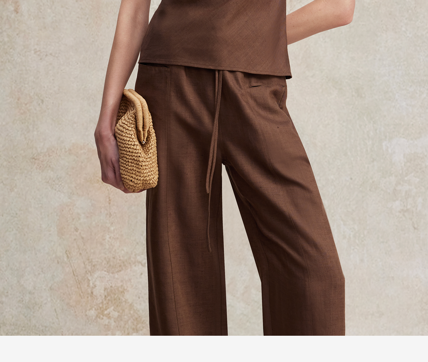 【预售10天内发】C+IMPRESS/西嘉天丝亚麻 南法假日套装无袖马甲上衣+抽绳阔腿裤女CS2502075