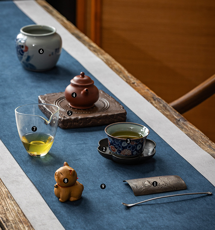 茶香记仿旧古锡浮雕茶则两件套-茶语韵茶匙茶勺茶荷茶道配件茶具