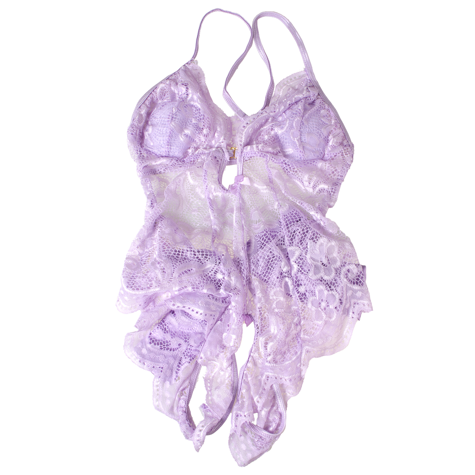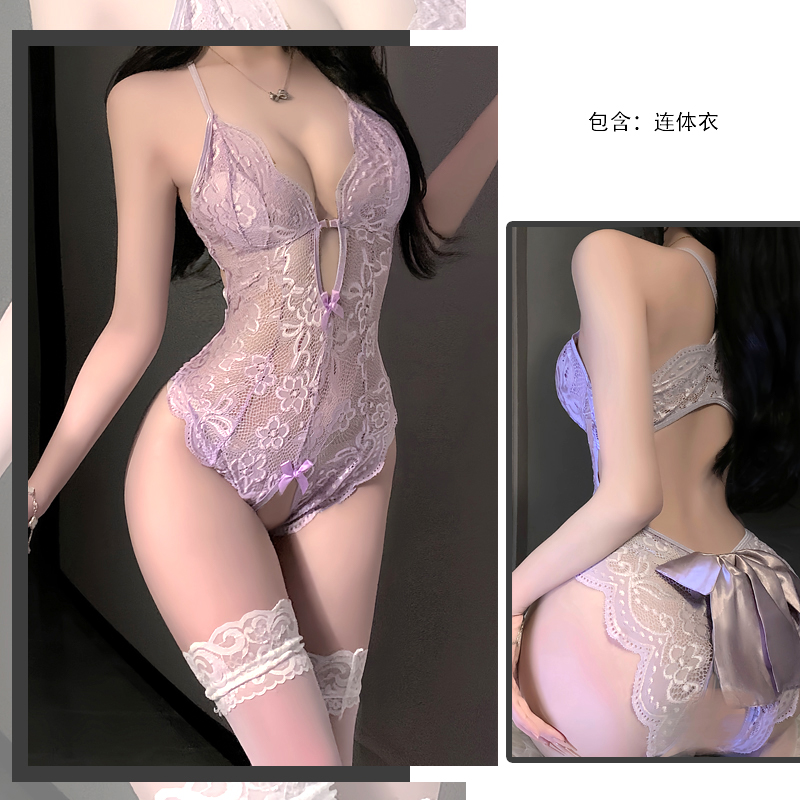 漫渺欲望失控法式蕾丝蝴蝶结性感纯欲露背透视连体情趣内衣女