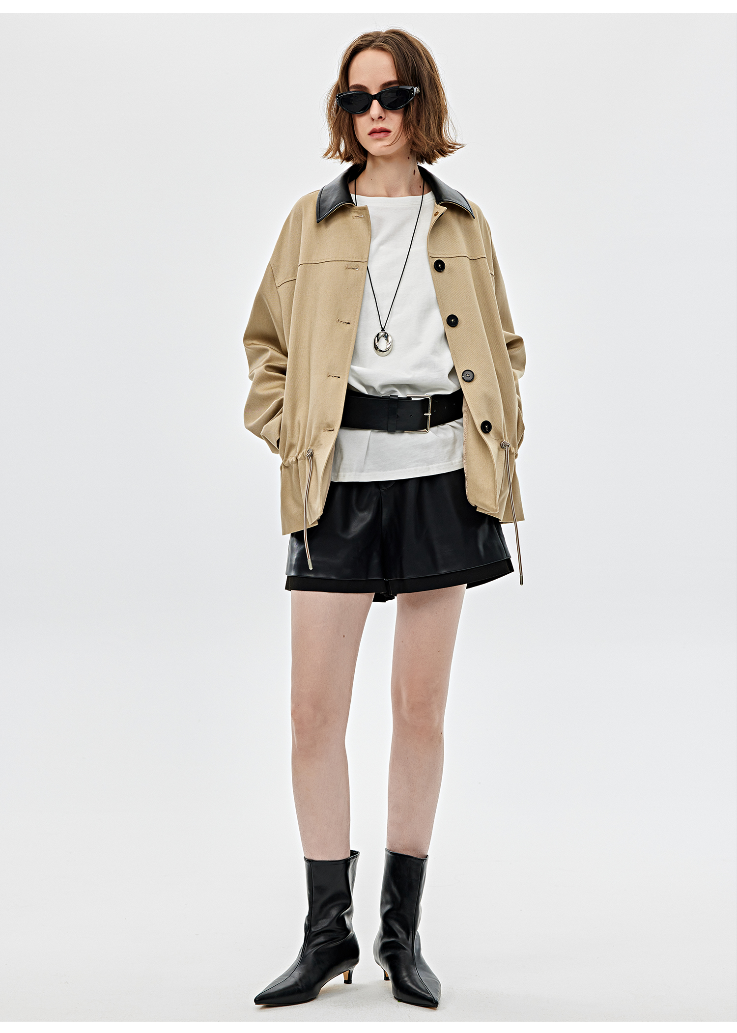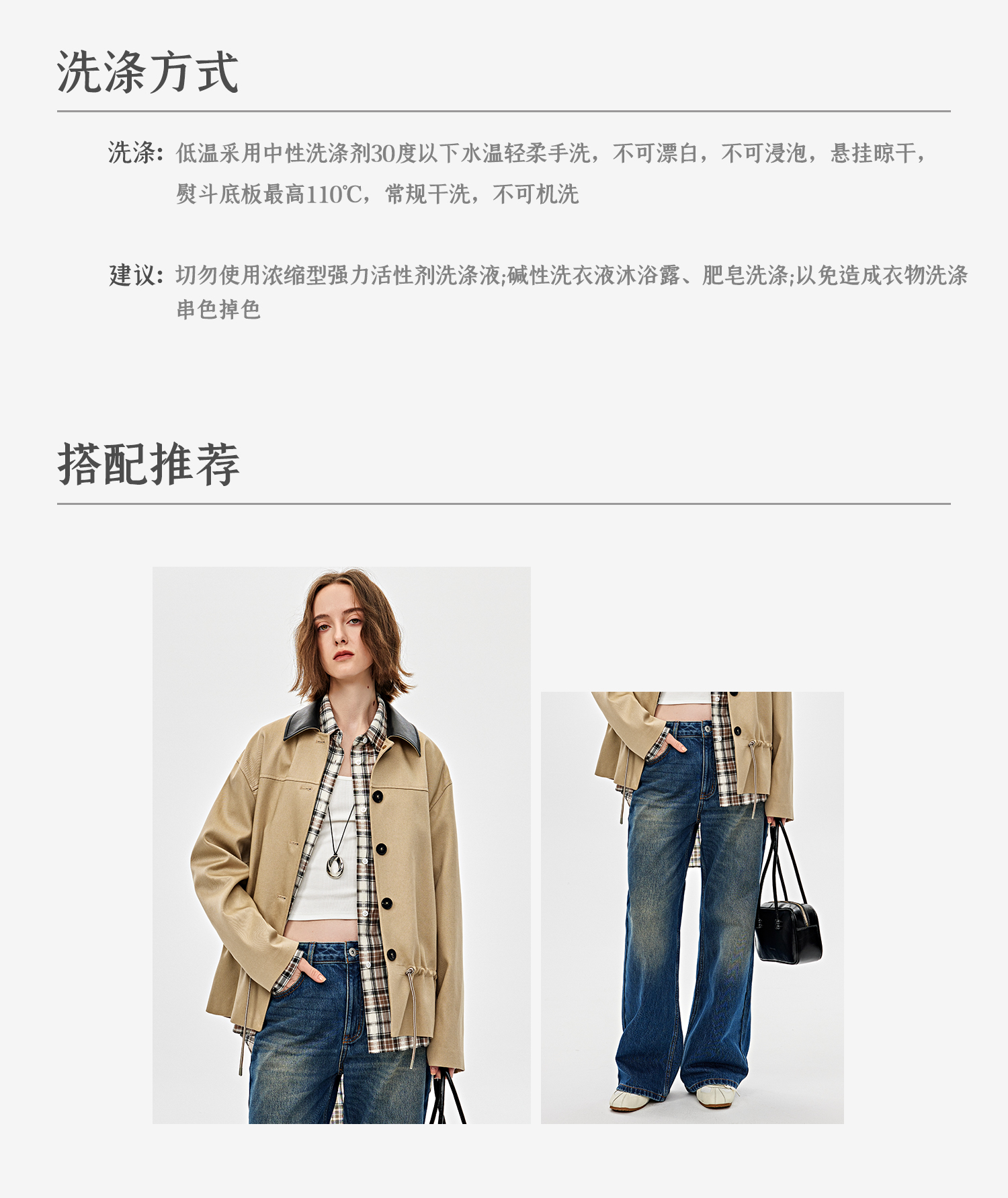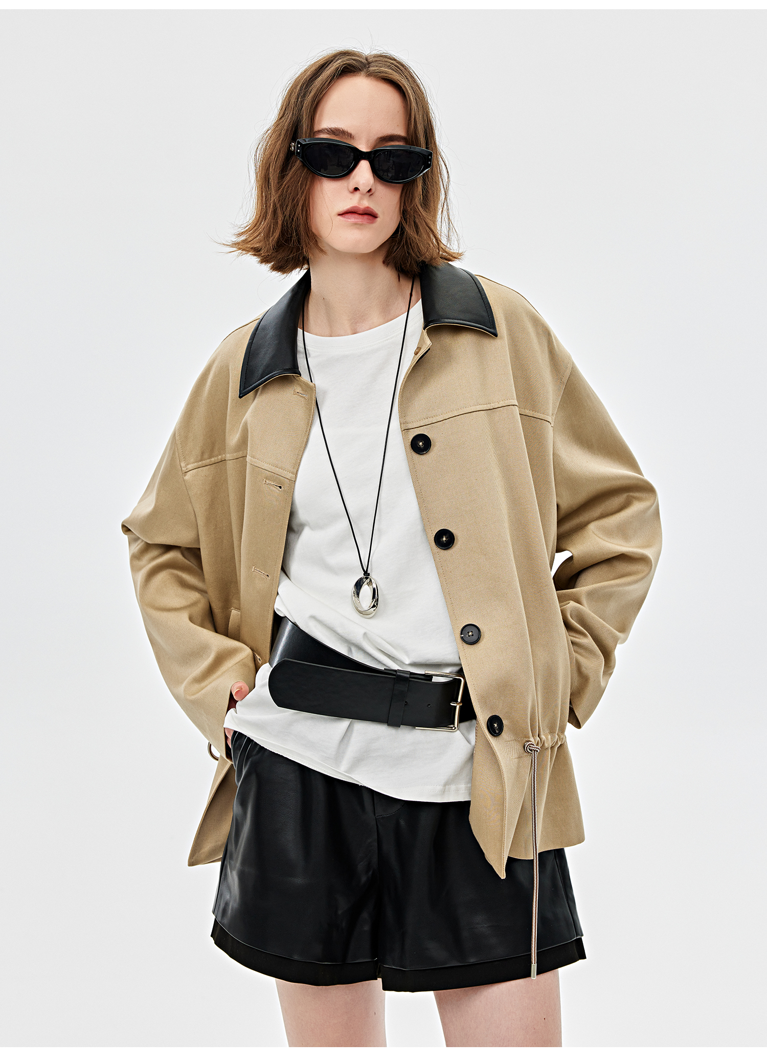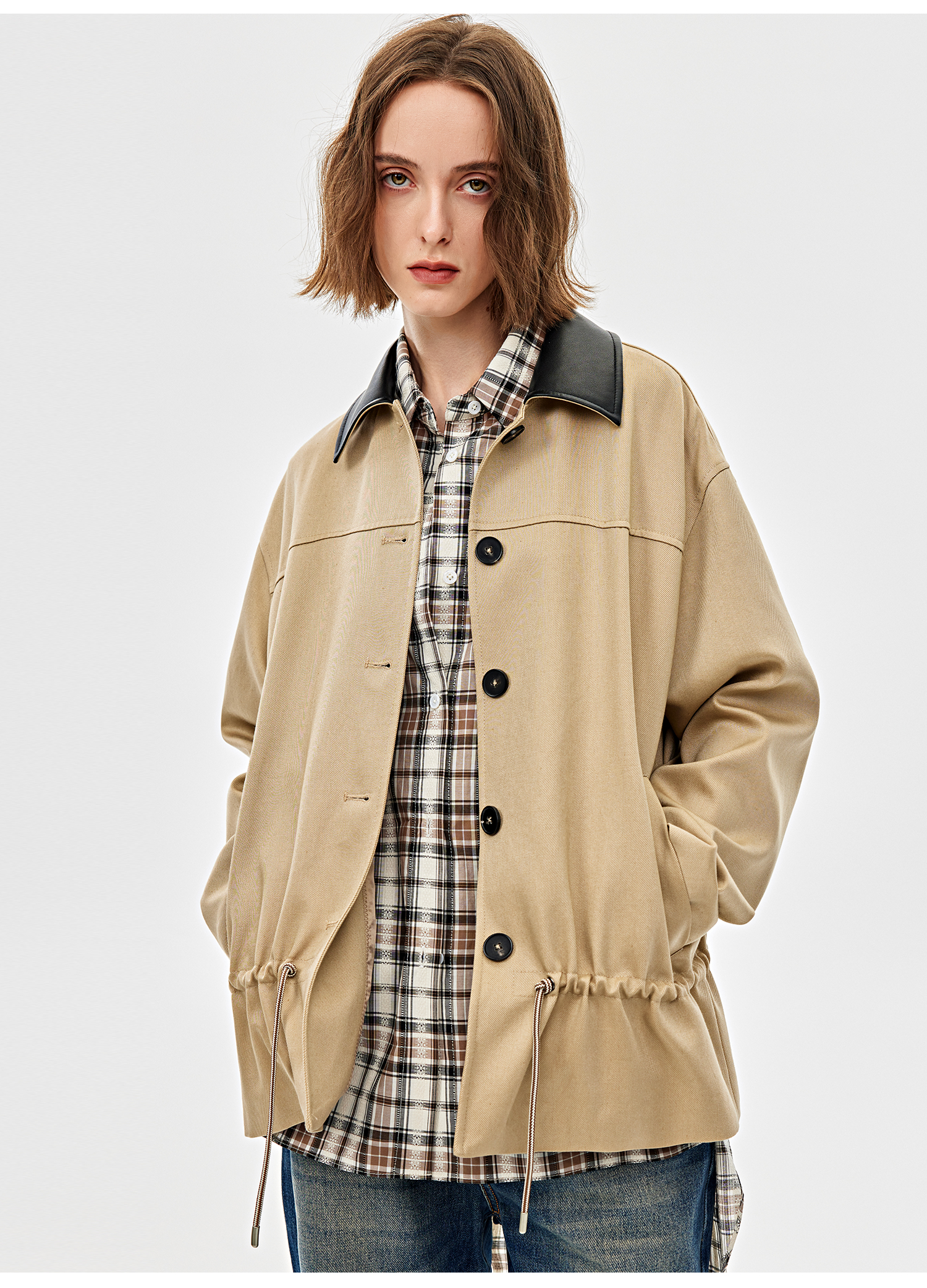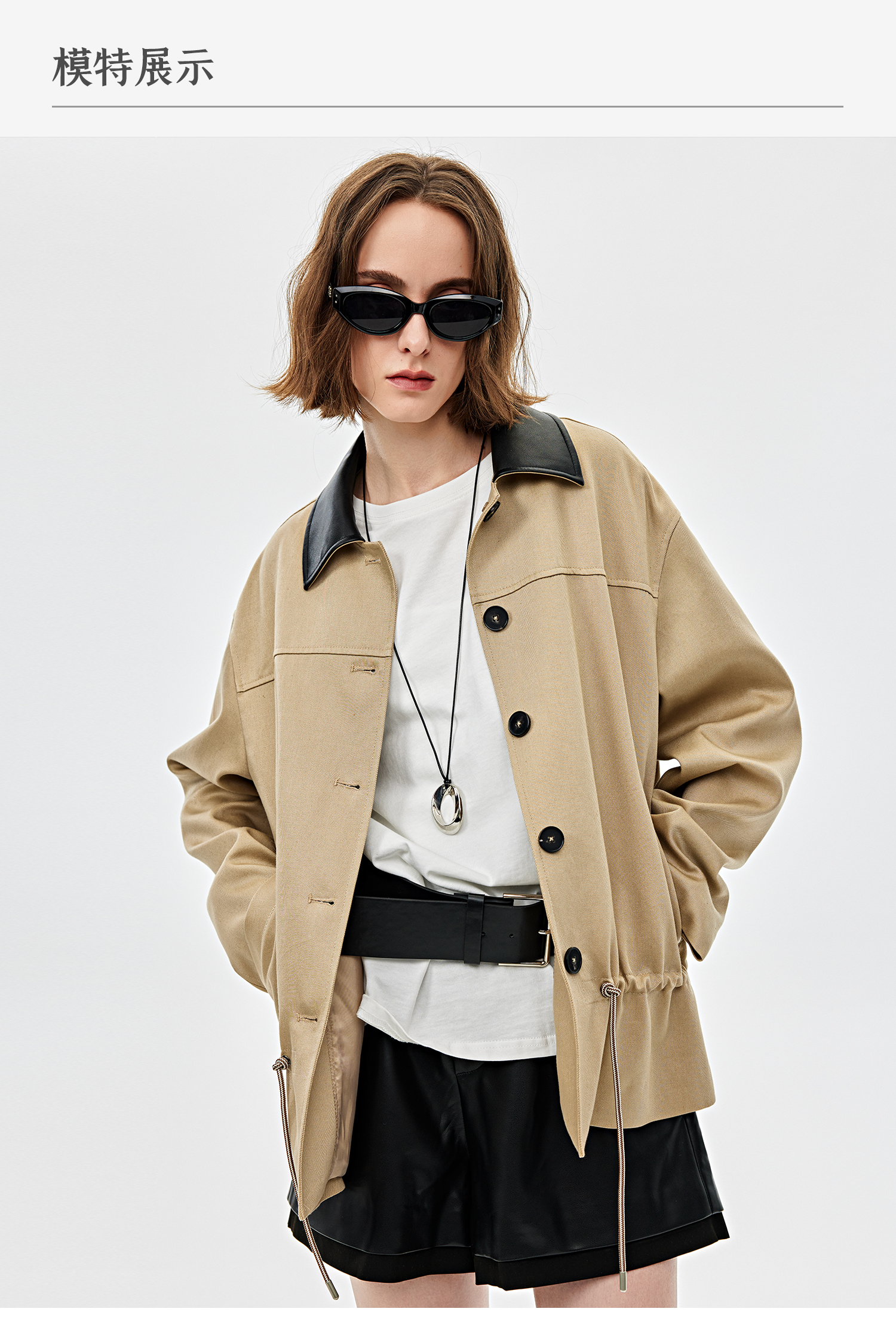 C+IMPRESS西嘉|天丝棉混纺复古巴恩风外套女皮领高端工装短款风衣WT2501007